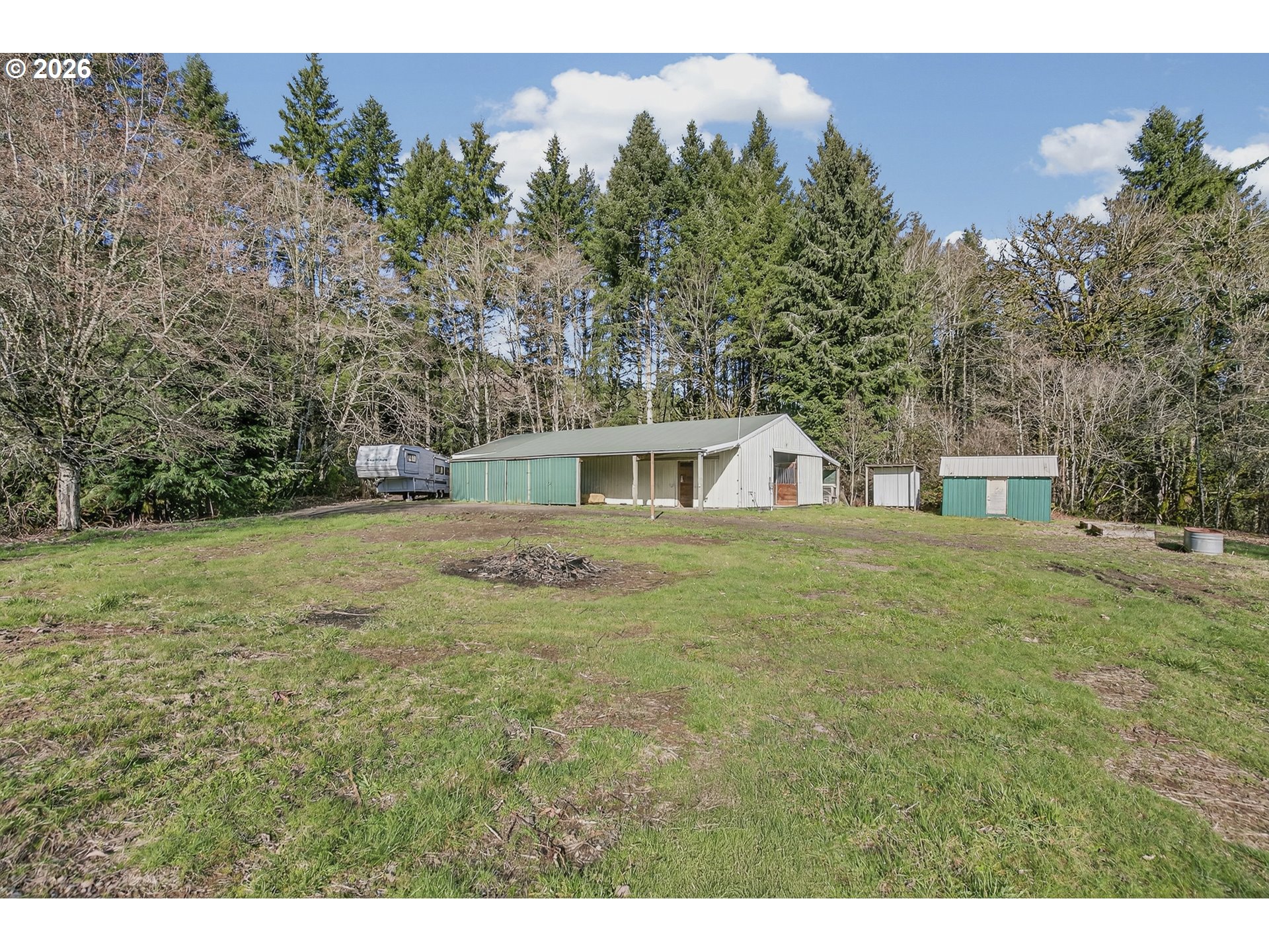 Welcome to your own private retreat, where peaceful surroundings and mountain views set the tone for relaxed, serene living. This refreshed home offers an open-concept layout with laminate flooring, new carpet, fresh interior paint, and a cozy wood-burning fireplace for added warmth and charm. Step outside to an expansive property offering a rare combination of usable space and functional improvements. The substantial 36x60 barn features four matted stalls, a tack room, and an indoor riding arena for all-season use, complemented by multiple storage buildings and covered RV parking with full hookups. A creek-fed pond adds to the peaceful outdoor setting, ideal for gatherings or quiet evenings. An exceptional opportunity to own a versatile property that offers privacy, space, and endless potential!