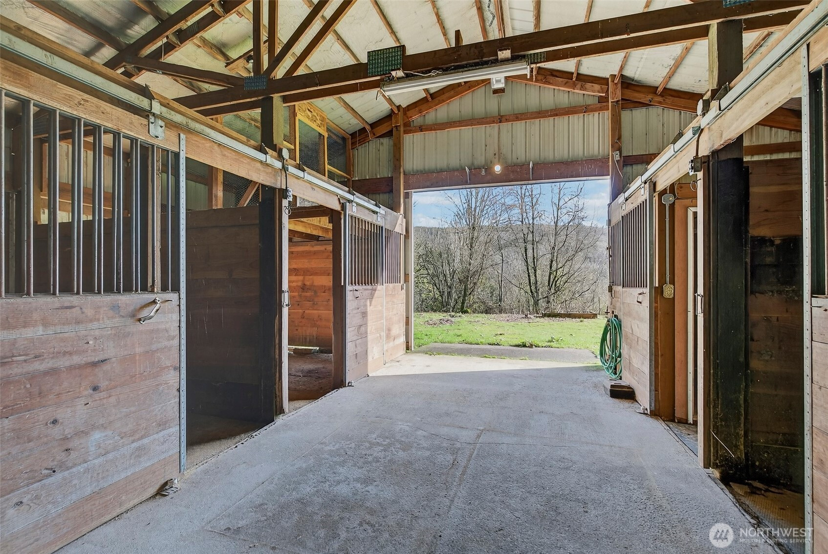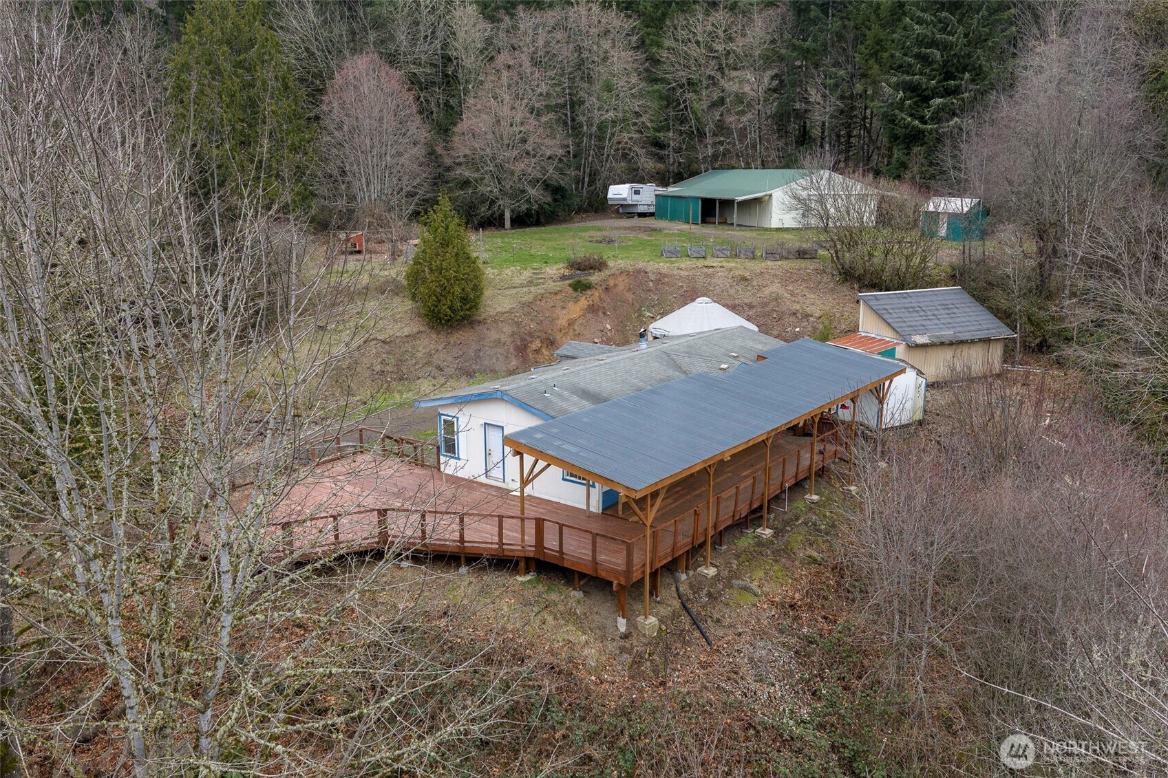 Welcome to your own private retreat, where peaceful surroundings and mountain views set the tone for relaxed living. This refreshed home offers an open-concept layout with laminate flooring, new carpet, fresh interior paint, and a cozy wood-burning fireplace for added warmth and charm. Step outside to an expansive property offering a rare combination of usable space and functional improvements. The substantial 36x60 barn features three matted stalls, a tack room, and an indoor riding arena for all-season use, complemented by multiple storage buildings and RV parking with hookups. A creek-fed pond adds to the peaceful outdoor setting, ideal for gatherings or quiet evenings. An exceptional opportunity to own a versatile property that offers privacy, space, and endless potential!