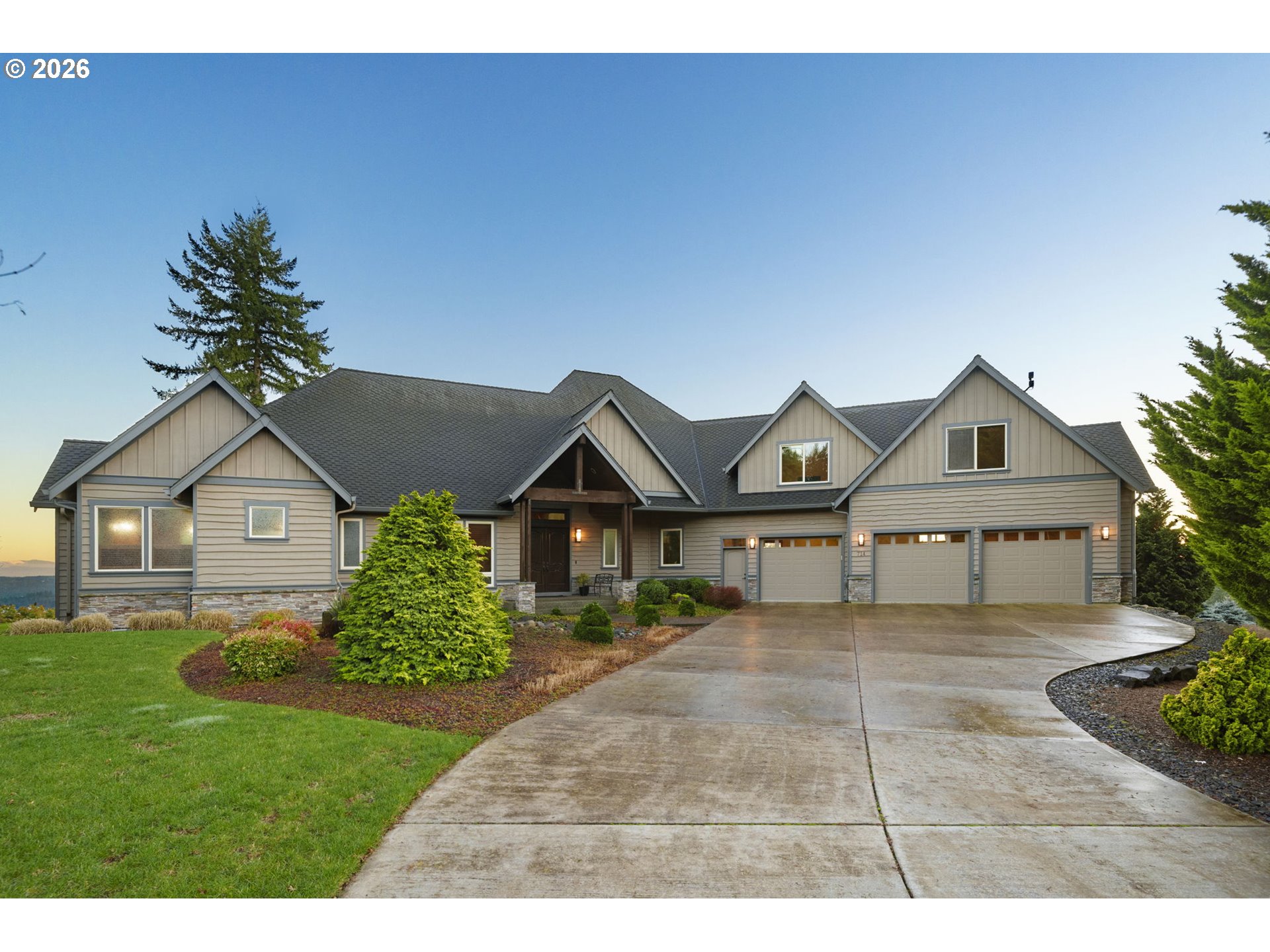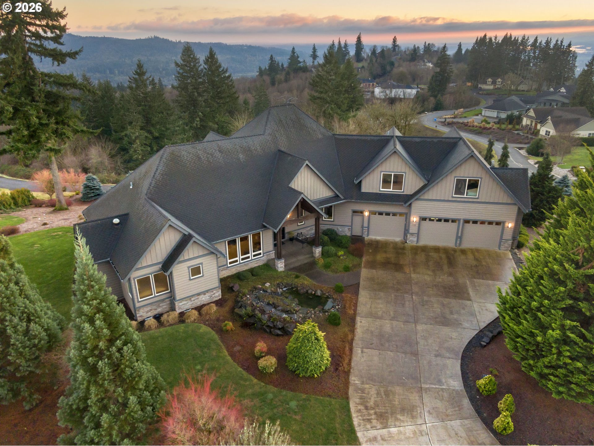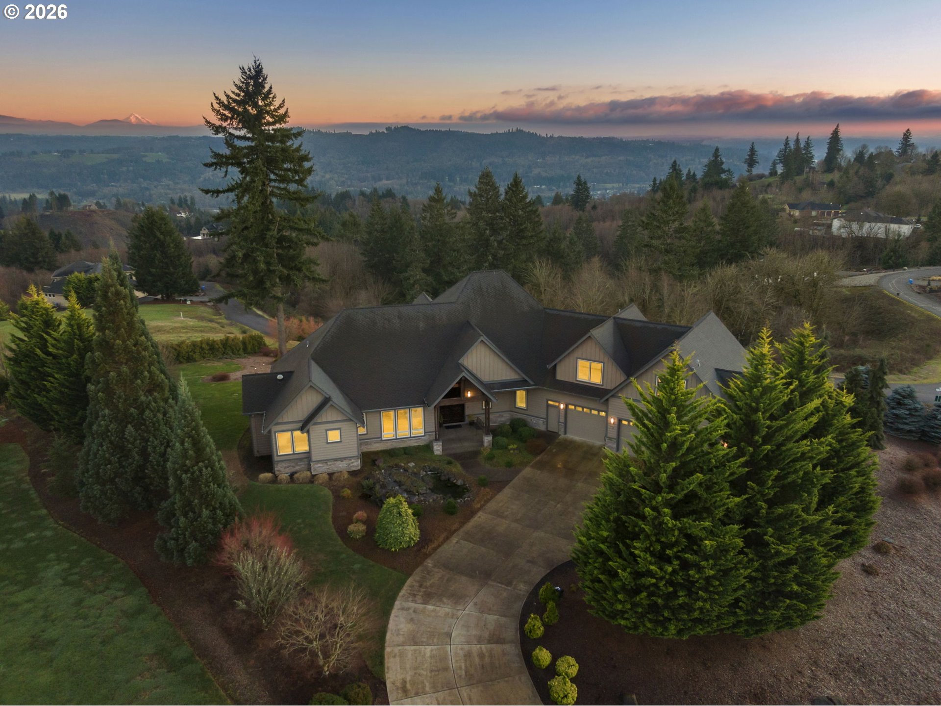 (503) 893-8874Enjoy sweeping views of Mt. Hood and surrounding pine forests from this custom home on 9.06 acres in a private gated community. Architect-designed, the home features distinctive 7/8" wavy cedar siding, soaring 24' vaulted ceilings, and cathedral windows that bring in abundant natural light. The main-level primary suite offers dual walk-in closets, a fireside sitting area, heated floors, and a spa-like bath with a river rock walk-in shower. Fireplaces in the bedrooms provide added warmth and comfort. A main-floor office can also serve as a guest room or fourth bedroom. Brazilian cherry floors and custom millwork add warmth throughout. The chef’s kitchen includes dual ovens, a professional-grade range, and access to three decks, including one enclosed with glass sliders and a motorized screen for year-round use. Additional highlights include a private guest wing with its own living room, a 3-car garage with shop space, a whole-house generator, a private pool, and a peaceful outdoor water feature. The adjacent 5.02-acre lot is also available.