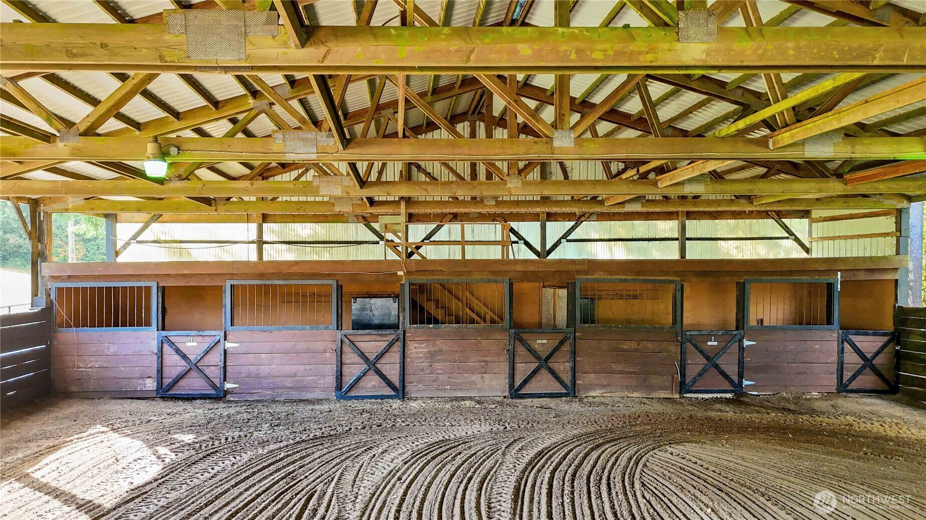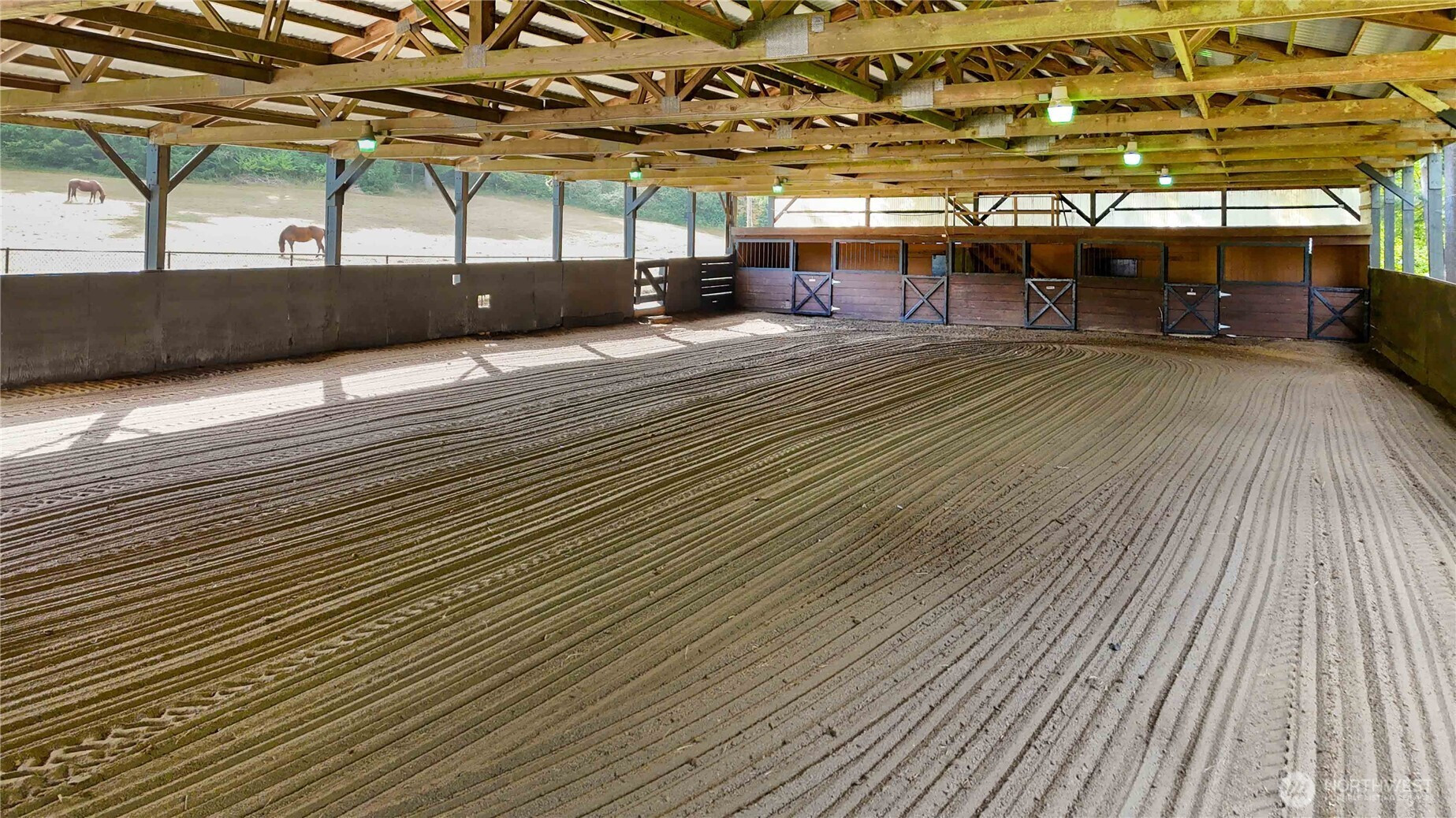 EQUESTRIAN STABLE,WEDDING VENUE, OR CAR STORAGE CONVERSION…convert to suit your vision! Charming country living on 5acres w/stunning views from every window. 4bed 2.5bath home features a spacious primary w/remodeled bath, family & living rooms, plus recreation room w/sauna & pool table. Newer Trane heat pump, 5 yr old metal roof, powered entry gate, & large patio. Property includes pasture land, full equestrian setup w/140x60 arena & 120x60 riding area, 5 stalls, tack & feeding areas. Arena could be converted to car storage or wedding venue w/barn-style backdrop. 40x48 shop w/12-and 9-ft doors, cedar-lined tool room, large storage loft & 220 power. Ideal for toys, hobbies, or serious workshop use. Endless possibilities!