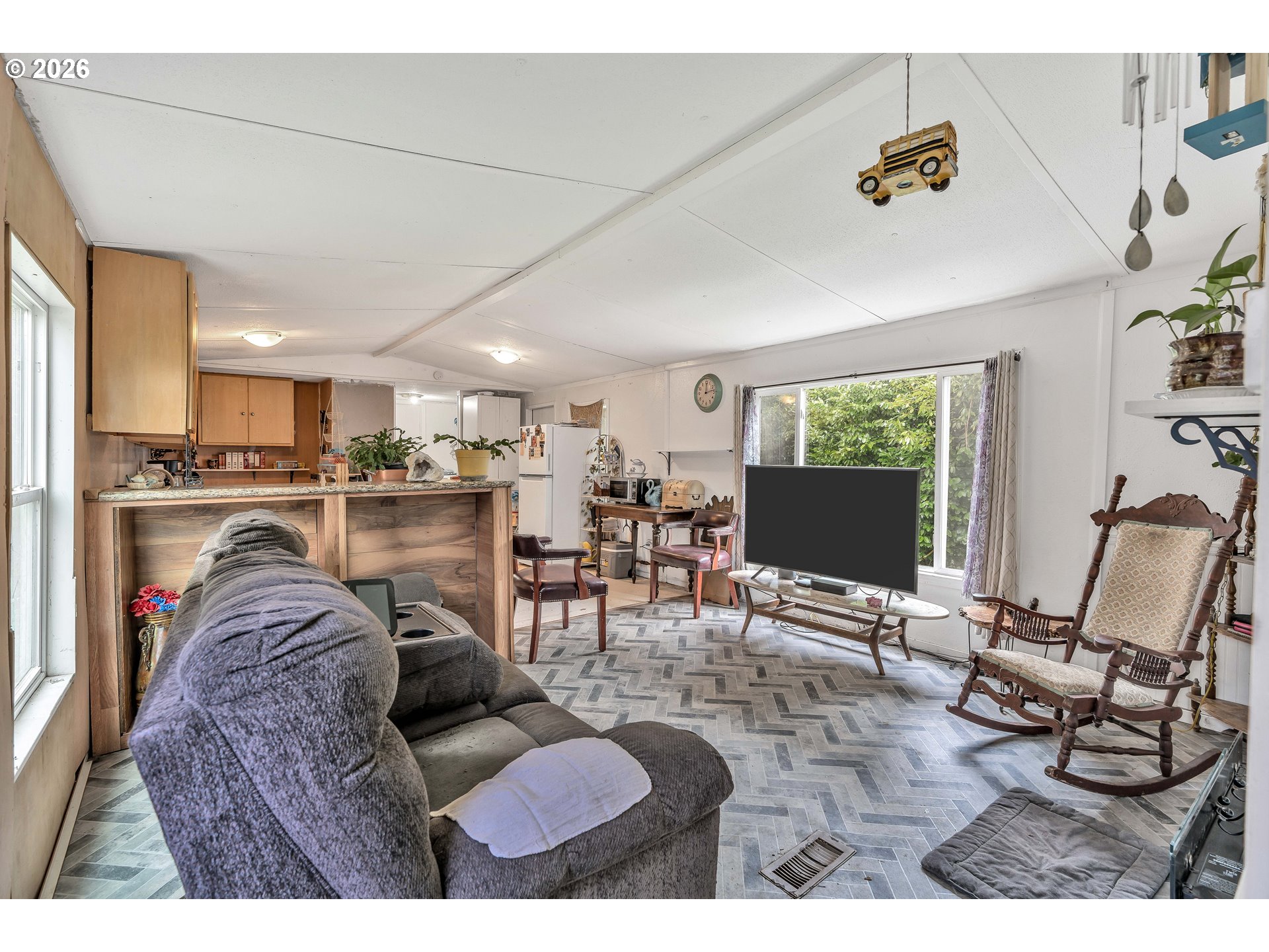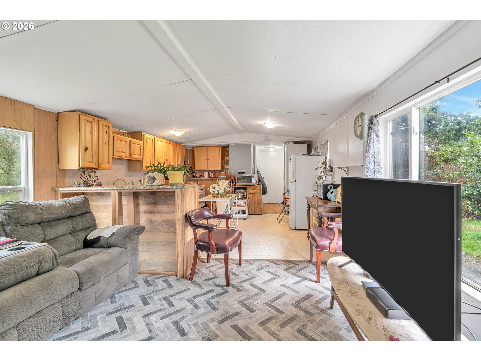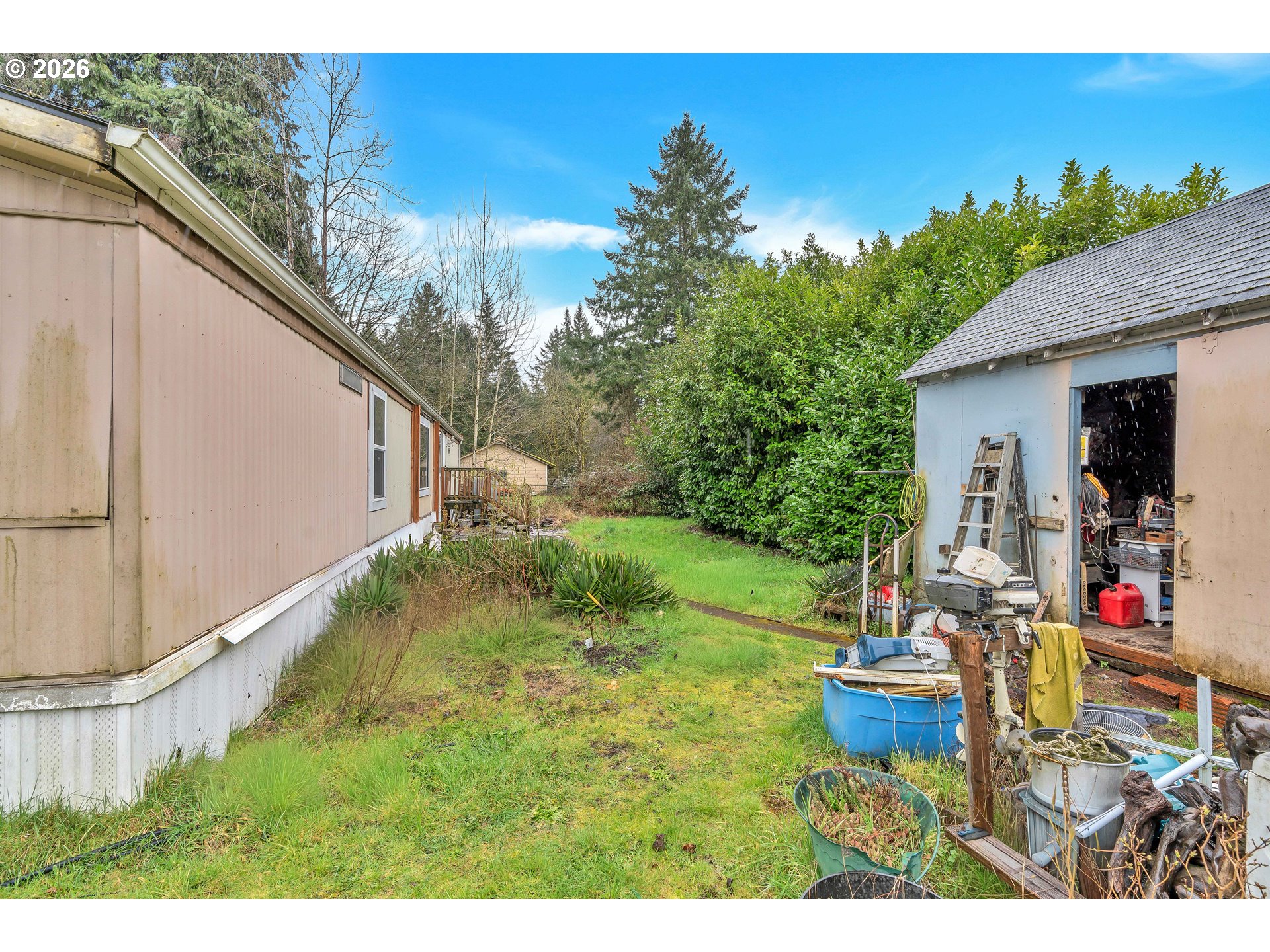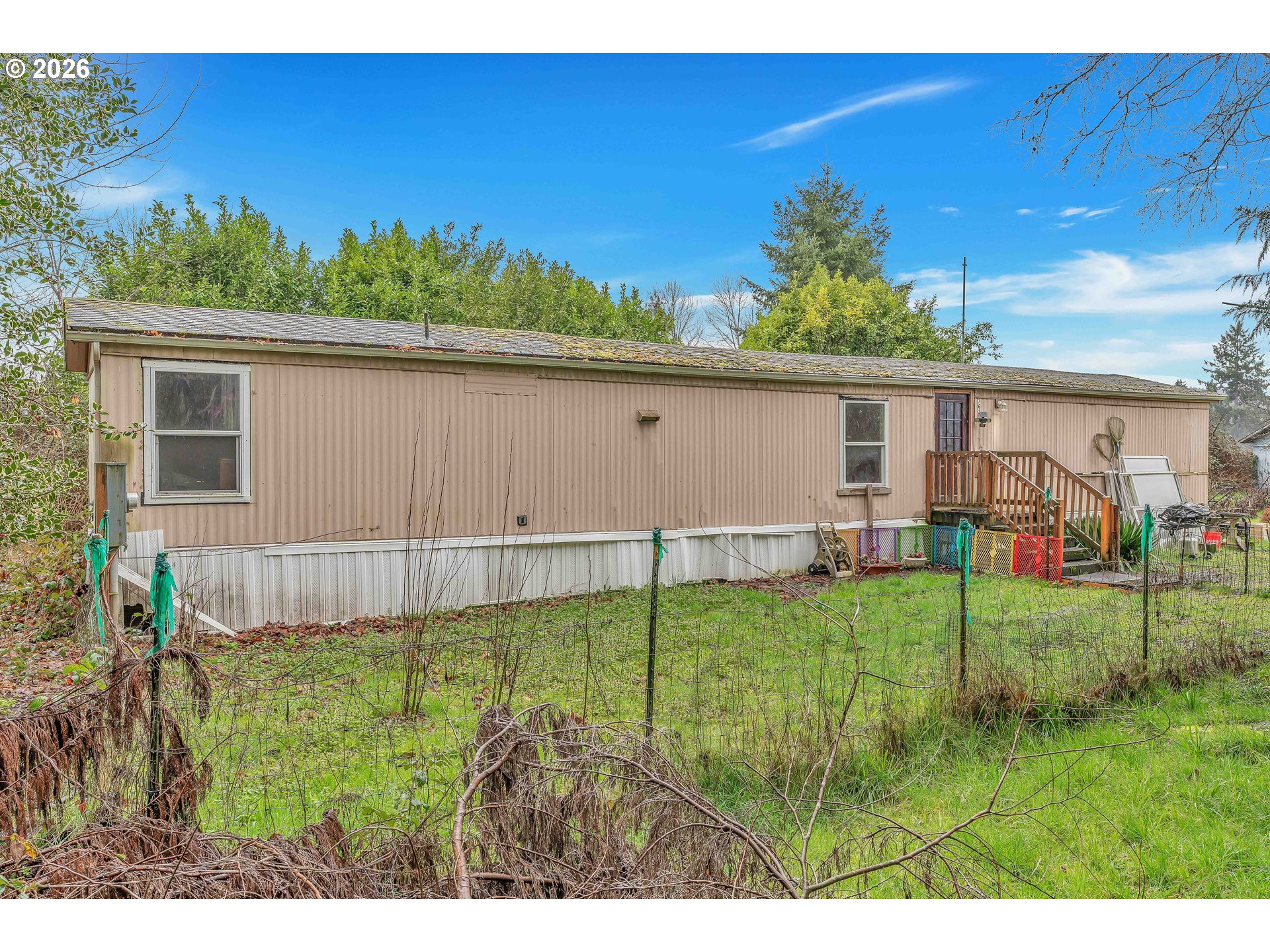 Escape to the country with this charming 3-bedroom, 2-bath manufactured home on owned land! Nestled on a 27,007 sq ft lot, this property offers a peaceful retreat with mature trees and a spacious, level yard perfect for outdoor living. Inside, the kitchen shines with hickory and pine cabinetry, a Bausch stainless steel dishwasher, and a new sink and faucet. Enjoy the comfort of double-paned white vinyl windows throughout.The backyard features a well-insulated building that could be converted into a tiny home and a large pump house with abundant storage. The property is equipped with a well producing 8 GPM and a new septic system installed in 2019, along with new downspouts. Conveniently located close to town and local fishing spots, this home is a rare blend of country tranquility and practical living.