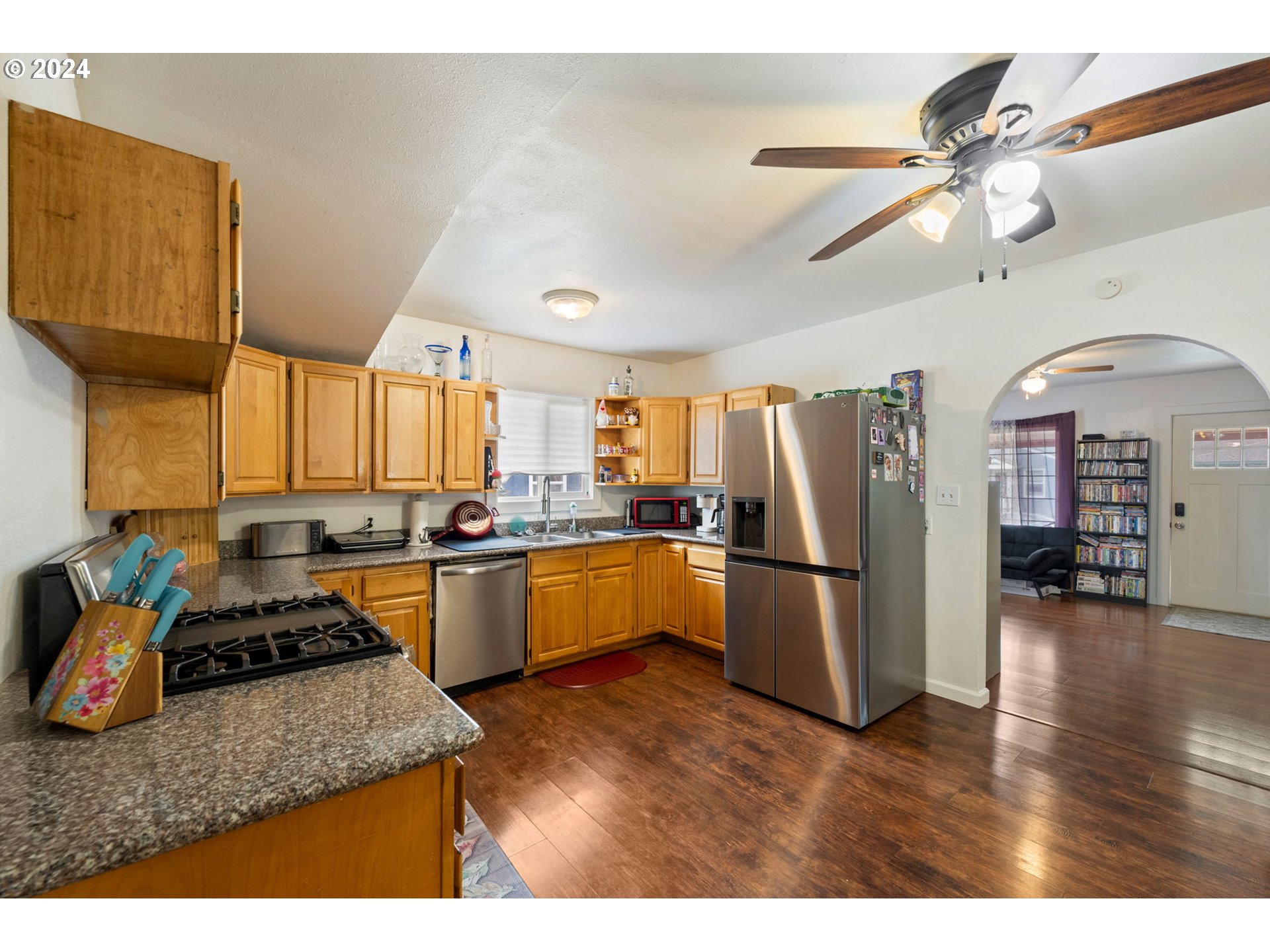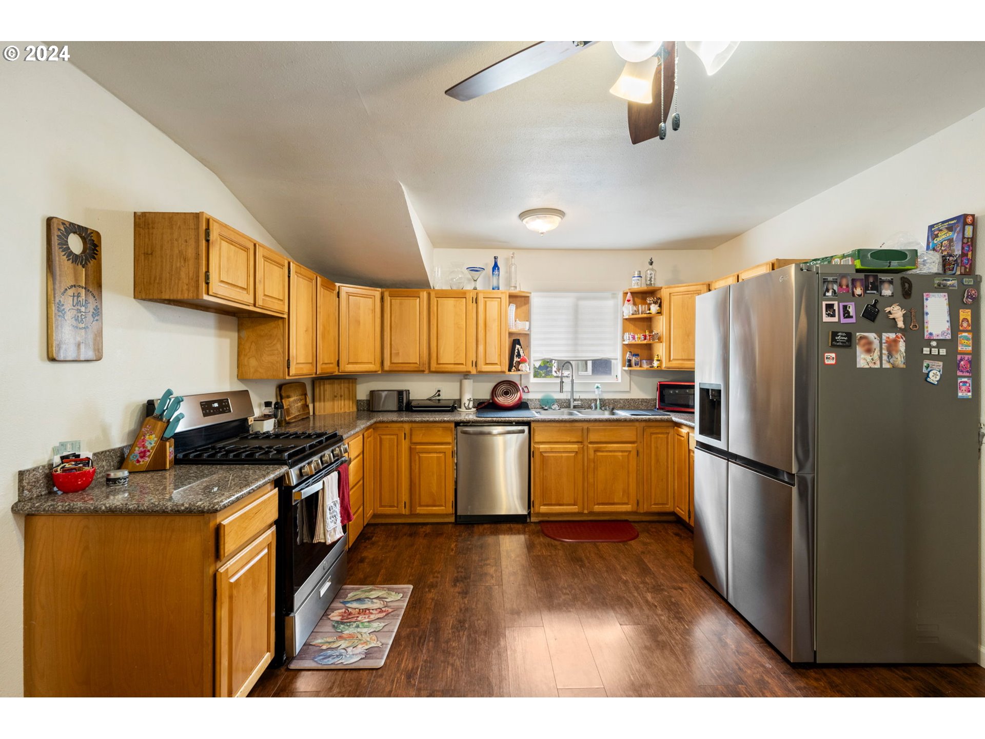 Spacious home within walking distance to the new grade school. Large driveway with a tall RV cover and detached garage for additional parking, or stuff storage. Home has 3 Heat/AC ductless units to keep you nice and warm in the winter/cool in the summer Main floor has a Living Room, Family Room with a gas fireplace, Kitchen/dining, utility and 3 bedrooms. The upstairs is the master suite with attached full bath. Both bathrooms have been updated and the kitchen has new appliances that will stay. The back yard has 2 patios for entertaining or backyard fun, one has a nice awning for some relief from the elements.