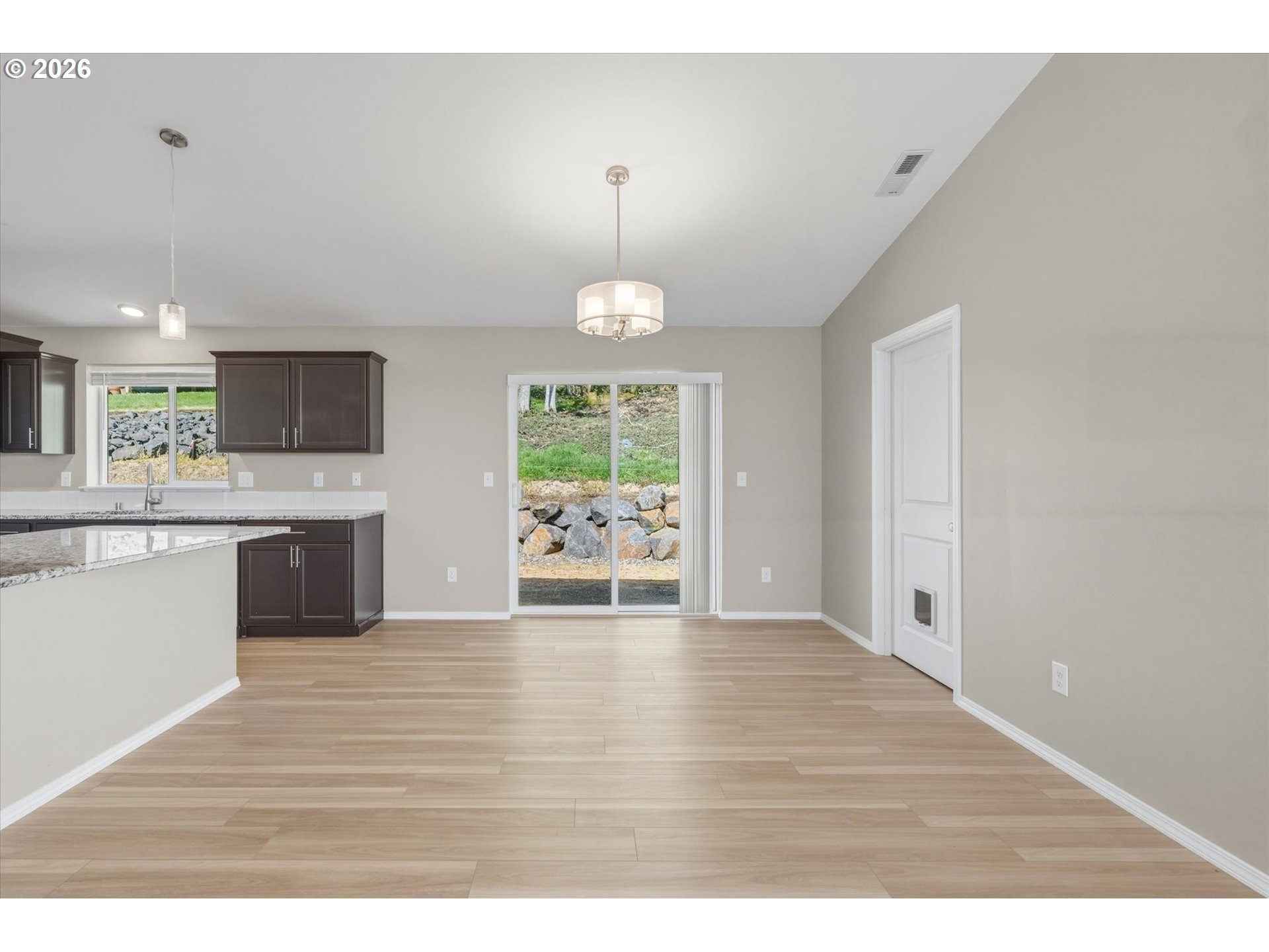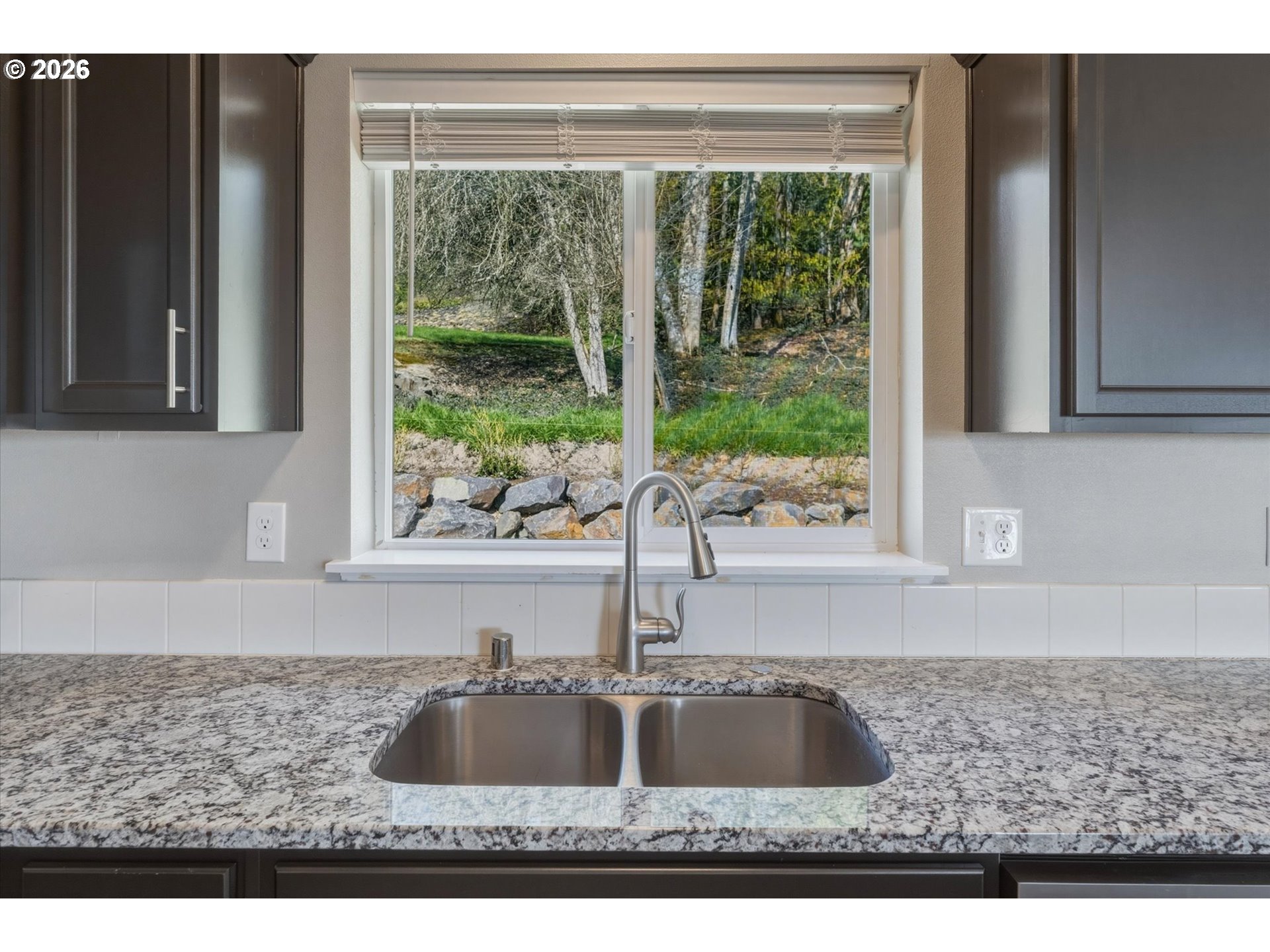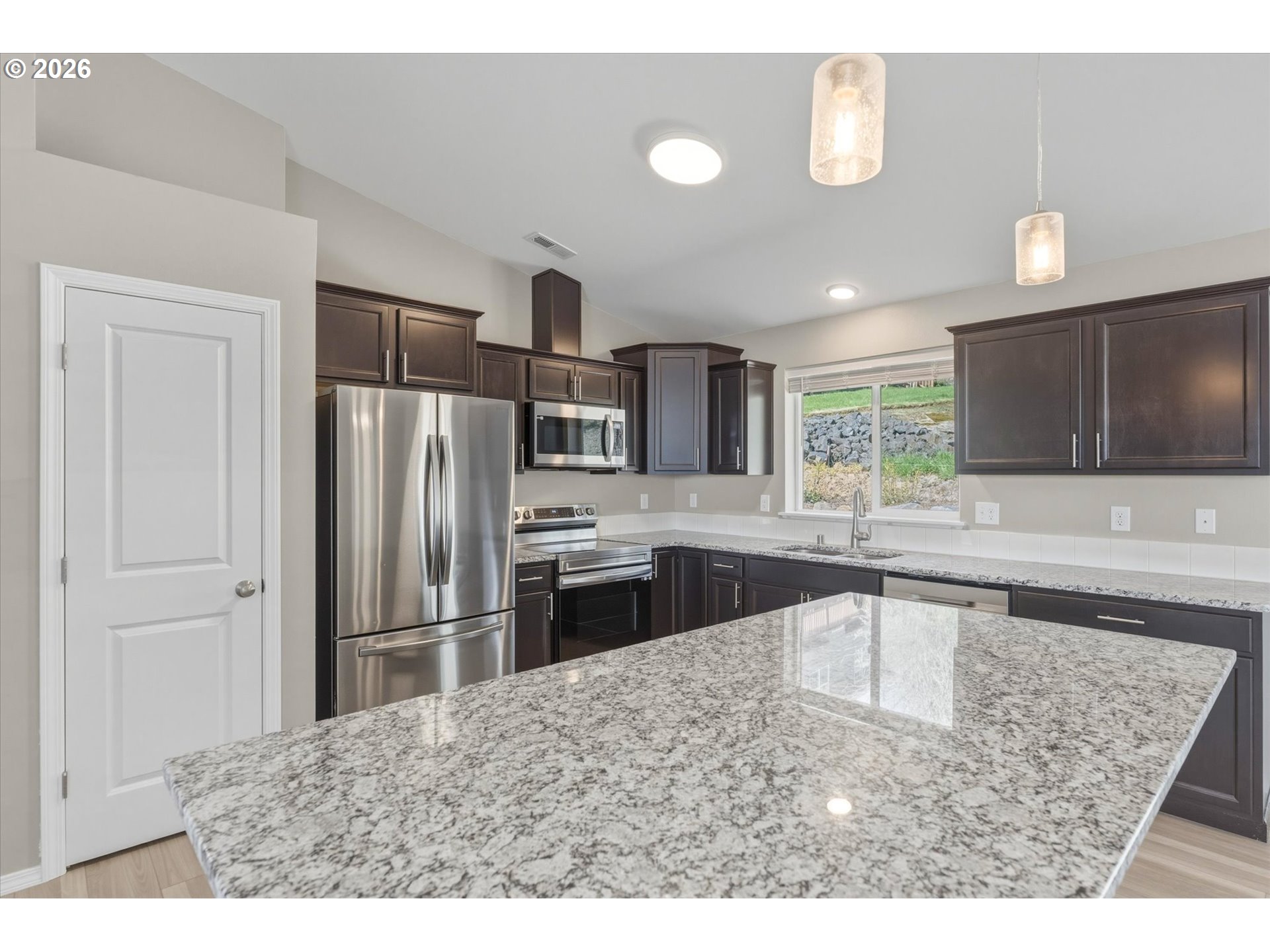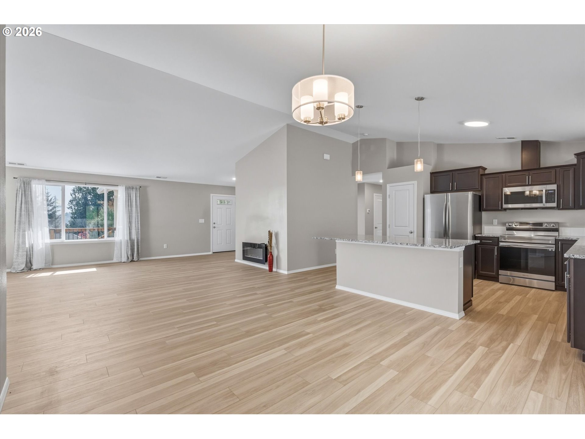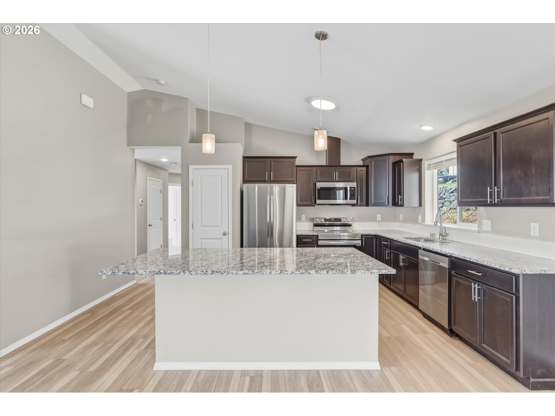 Views to die for from the covered front porch deck, showcasing the Lewis and Clark Bridge, the Columbia River, and the City skyline. Enjoy morning coffee or unwind in the evening with stunning sunsets. This single-level home sits on a corner home site and offers easy entry from the garage. Inside, vaulted ceilings and expansive windows fill the home with natural light and territorial views. The modern kitchen features a large granite island, soft-close cabinets, stainless steel appliances, and luxury vinyl plank flooring throughout. Additional highlights include a forced air heat pump, smart thermostat, and Bluetooth-enabled stove and microwave. The primary bath offers a spacious walk-in shower. Move-in ready with all appliances included. The backside of the home offers added privacy with no homes directly behind. Extensive drainage was added to the home when it was built. Newly planted trees are in place and will continue to mature. A large crawl space provides potential for additional use or storage. PeaceHealth St. John Medical Center is just 10 minutes away, with grocery stores and shopping close by for convenience.