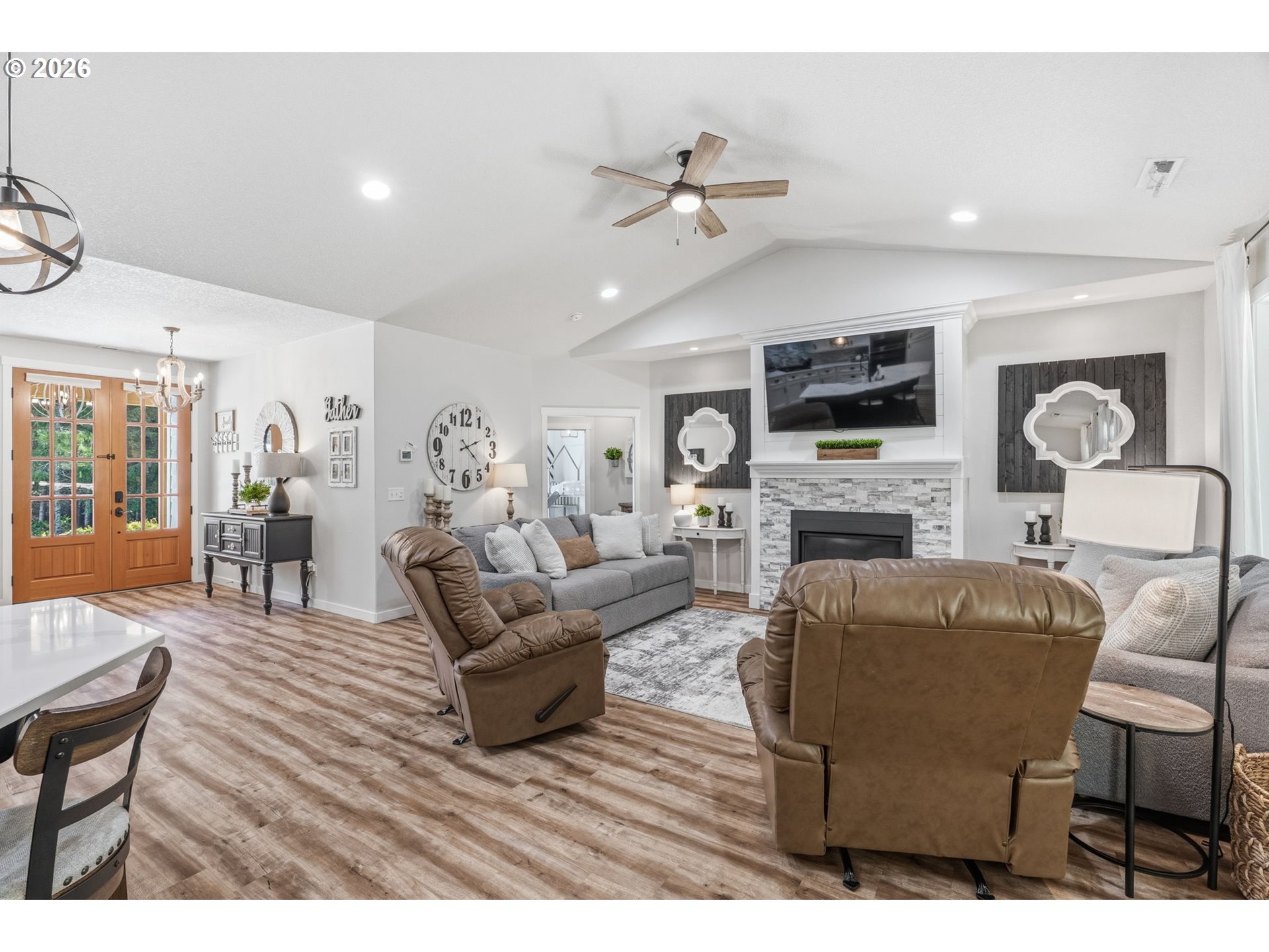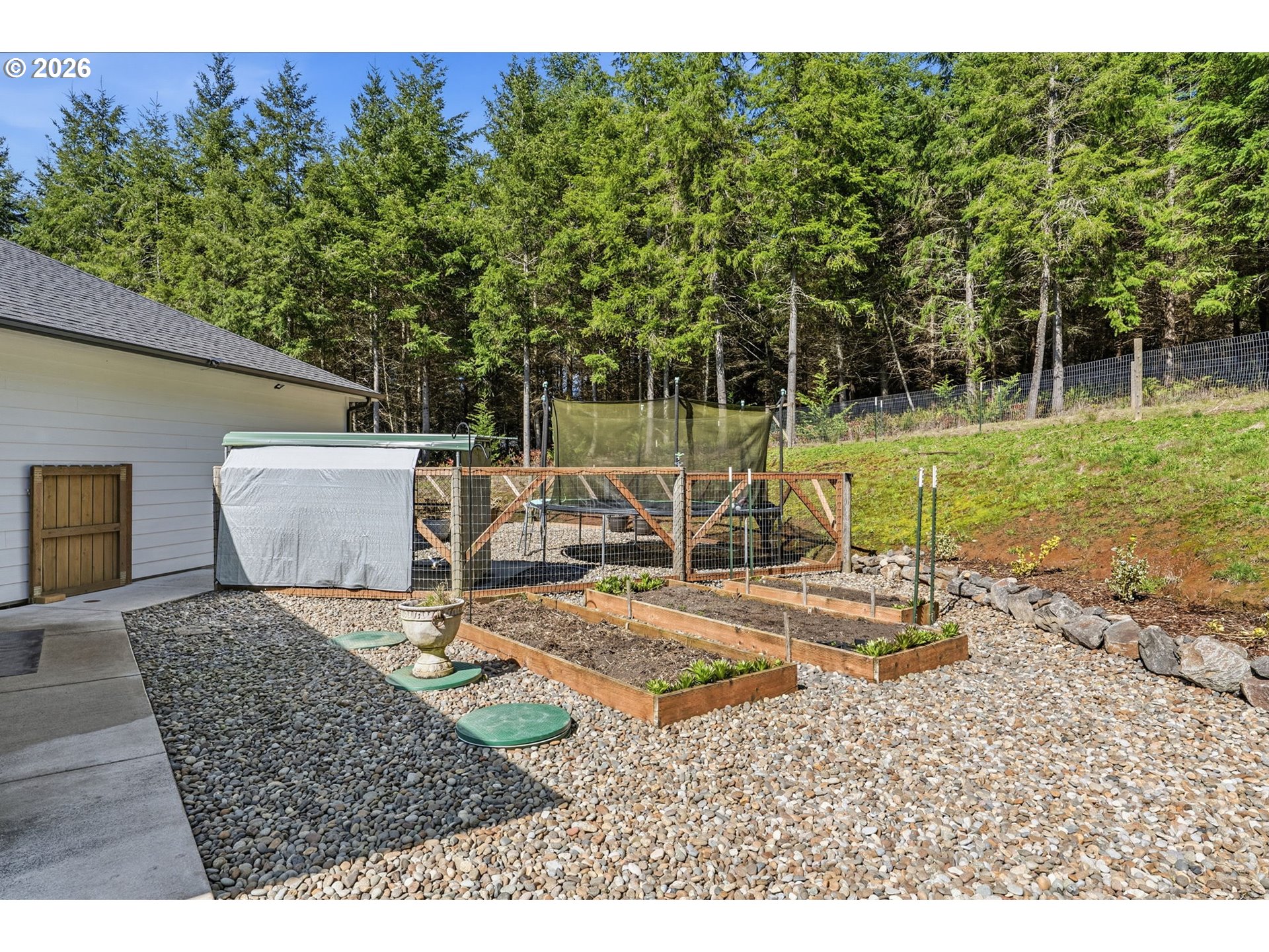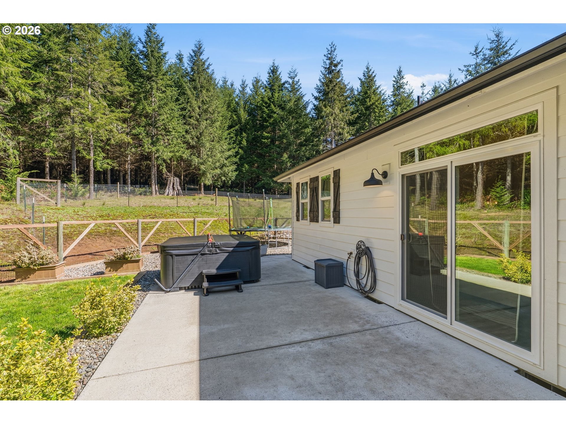 Welcome to this stunning 4-bedroom, 3.5-bathroom home in Castle Rock, WA, offering approximately 2,286 square feet of immaculate living space on 5 private acres. Built in 2019, this residence boasts beautiful open concept living space ideal for modern living, two primary bedrooms, split dual-vanity in the primary ensuite and enormous closet! Hardiplank siding, a composition roof, and luxurious LVP flooring throughout. Enjoy the gourmet kitchen with quartz counters, a farmhouse sink, and a propane cook stove, along with a formal dining area and an inviting breakfast nook. Relax on the expansive 14x30 covered cement patio, soak in the hot tub or cozy up around the firepit, this property is perfect for outdoor gatherings and quiet country living. The property is well-equipped for pets with three fenced yard sections and includes a chicken coop (chickens can stay). With walking and ATV trails on the property and community trails nearby, this home offers a lifestyle of convenience and natural beauty. Conveniently located within a gated community just a short drive from I-5, with low association dues covering neighborhood amenities and snow removal, this meticulously cared-for home is a rare find in Castle Rock, WA. Don’t miss the opportunity to make it yours!