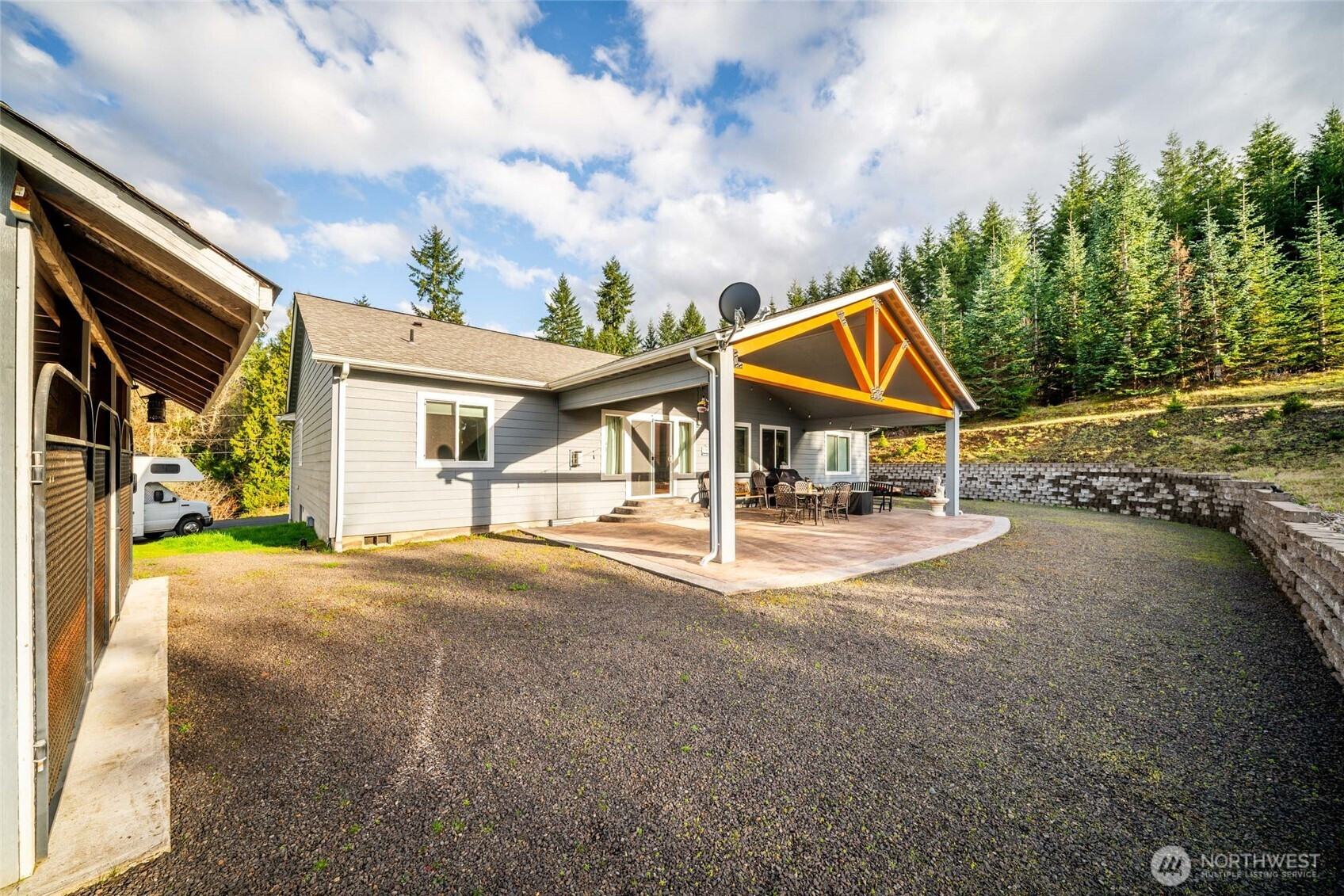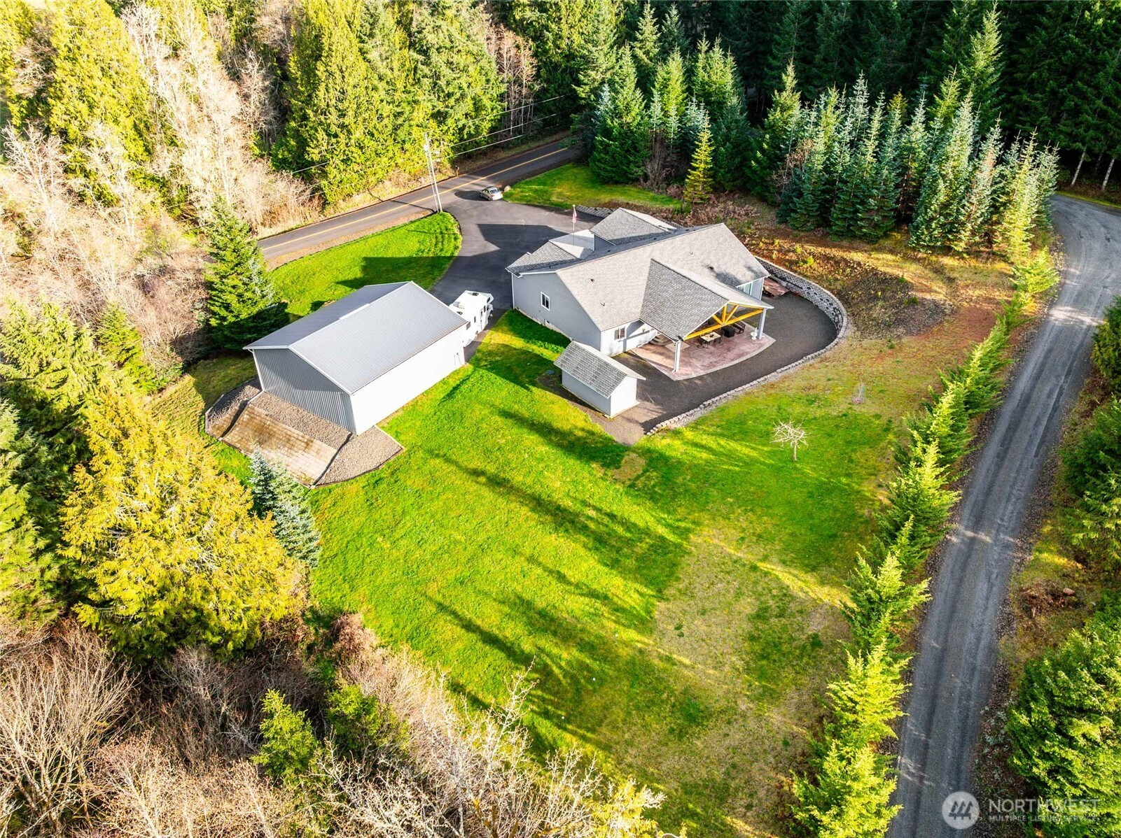If you’ve been looking for a property that actually handles your lifestyle without the "cookie-cutter" feel, this is the one. This 2,343 sqft one story home sits on a private 2.54-acre lot with its own creek. Inside you'll find features like vaulted ceilings, a massive kitchen island with bar stools, a soaking tub to relax in, and a large open floor plan. With 3 bedrooms and a den that could be used as a 4th bedroom if needed, there is plenty of space to stretch out. When it’s time to dial it back, head out to the 40x20 timber-style covered patio—it’s a year-round outdoor living room where you can grill or chill while taking in the beautiful scenery and watching deer wander through the yard. We even have the pups covered with an 18x8.5 powered kennel. Then there's the shop: a massive 36x40 fully insulated beast with 12x12 insulated doors, a 10x36 loft, 220 amp service, and electrical RV hookups. You get the peace of the woods and creek on your property without living in the dark ages thanks to high-speed xFinity internet. If you’re tired of boring houses and need a spot that handles your rigs, your hobbies, and your life, come see a listing that’s as authentic as it is functional.