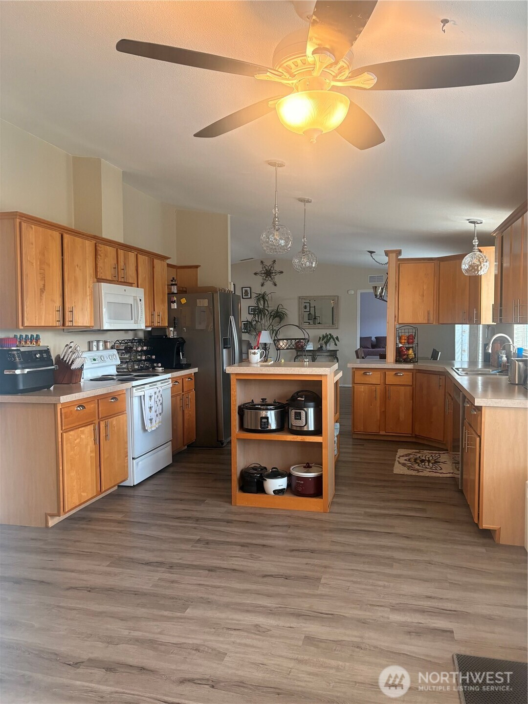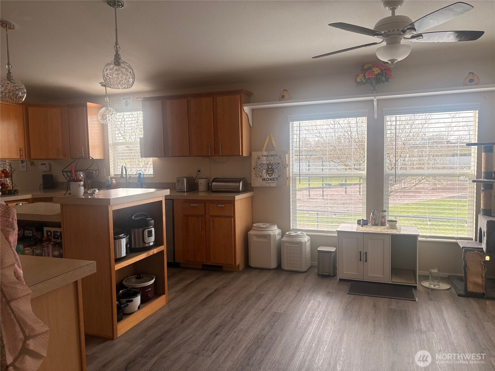 (503) 893-8874Well-maintained 2003 Palm Harbor manufactured home located in an all-ages community. Offering 1566 sq ft, this 3-bedroom, 2-bath home features a desirable split-bedroom floor plan with a primary suite that includes a walk-in closet and relaxing soaker tub. The open-concept layout flows into a spacious kitchen with generous counter space, abundant cabinetry, and a built-in desk, ideal for work or organization. The living area features a cozy wood-burning fireplace, perfect for cooler evenings. Recent updates include a water heater and dishwasher, both less than two years old. Outside, enjoy a fully fenced yard, a two-car covered carport, and a large enclosed exterior storage area offering ample space for tools and hobbies. Community amenities include a clubhouse, two playground areas, and RV parking. A great blend of space, functionality, and comfort, ready to welcome you home.