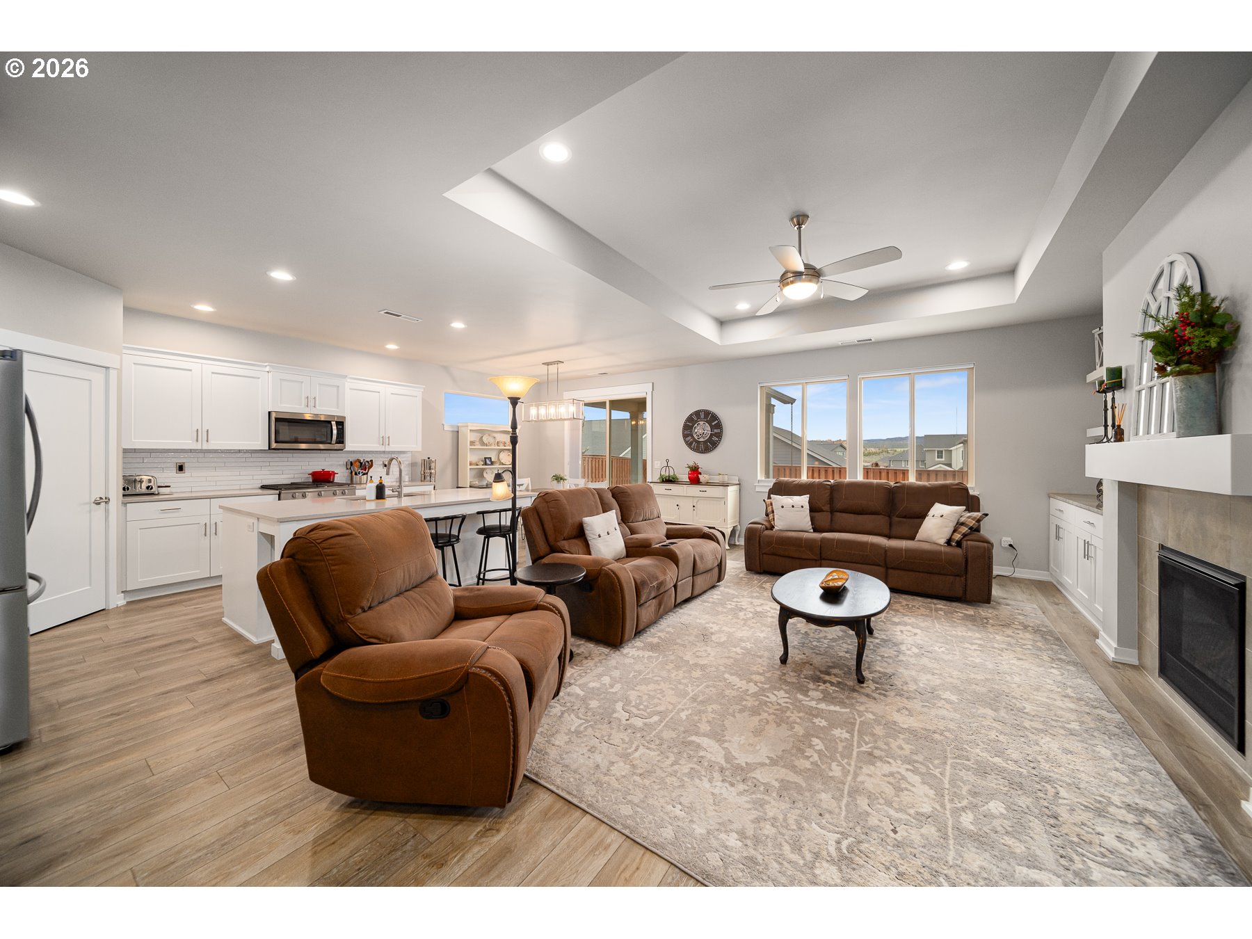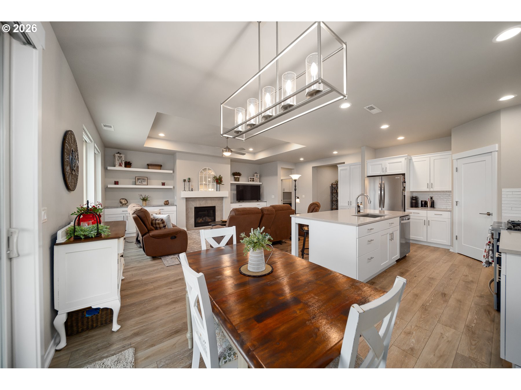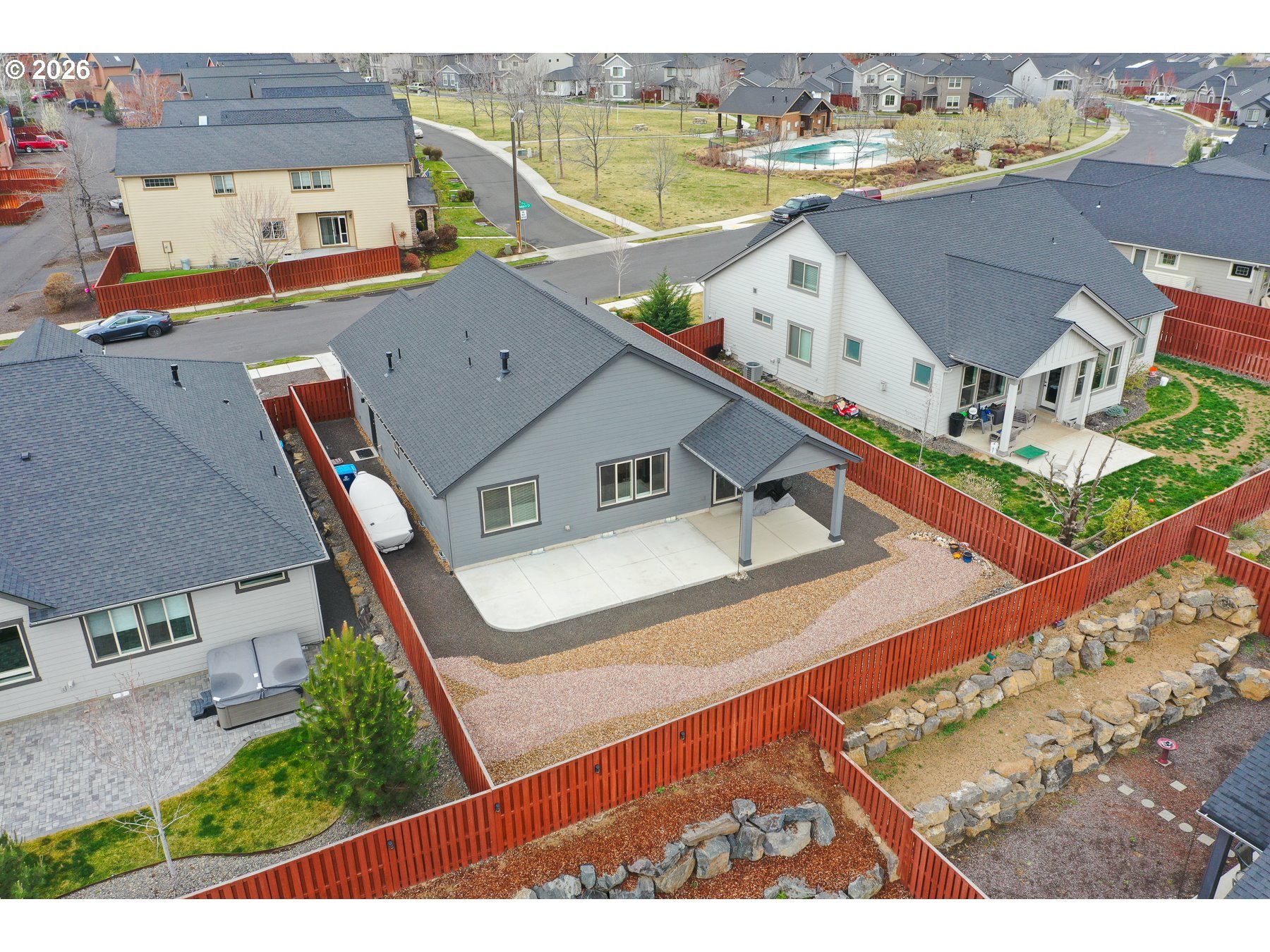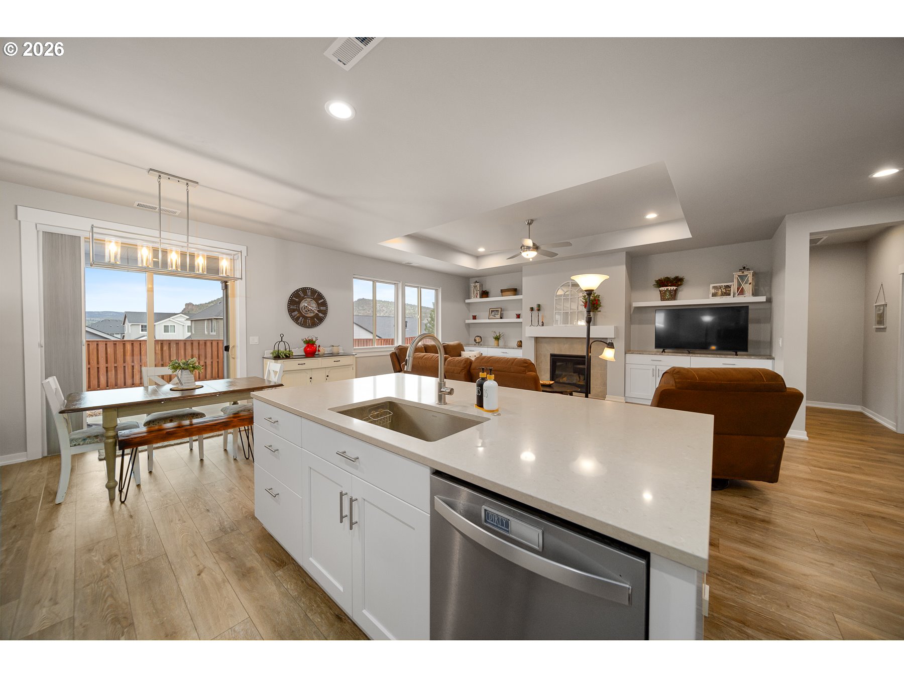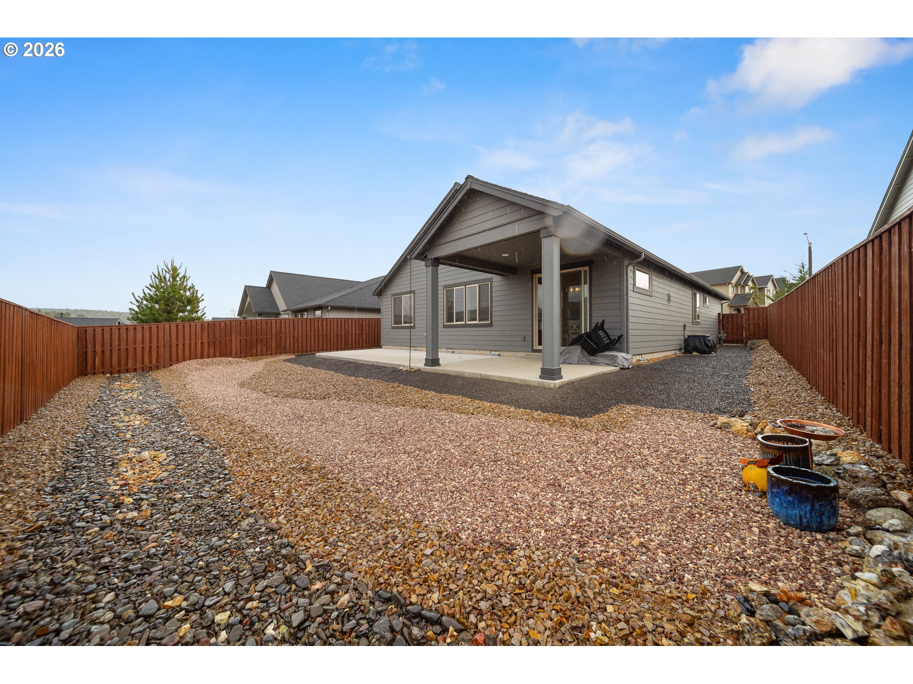 Welcome to this beautifully designed 3-bedroom, 2-bath home in Prineville, Oregon--Central Oregon living made easy. Featuring a split floor plan for private primary suite separation, this home offers comfort & functionality with an open layout, tall coffered ceilings, & abundant natural light. The kitchen shines with quartz countertops, ample cabinetry, & flows seamlessly into the living space with custom built-ins--perfect for entertaining. Step outside to an extended back patio, partially covered, & enjoy the xeriscaped backyard for low-maintenance living, room for smaller boat through side gate. Located directly across from the community pool & parks & just one home from an extensive walking trail system, this home offers both convenience & lifestyle. With front landscaping maintained by the HOA, you can spend more time enjoying all that Prineville & Central Oregon have to offer.