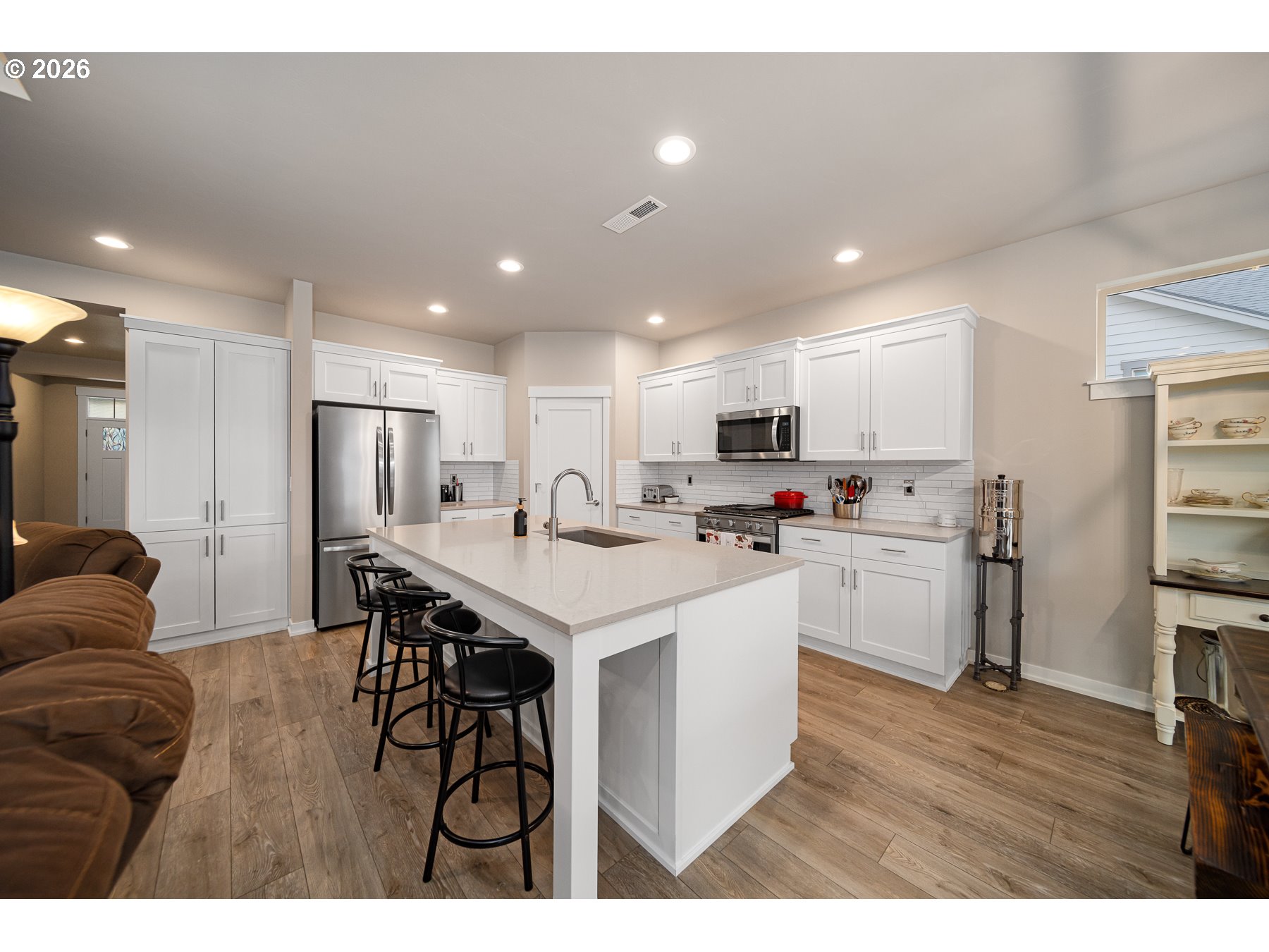 Dishwasher, Disposal, FreeStandingGasRange, Island, Microwave, Pantry, Quartz, StainlessSteelAppliance
