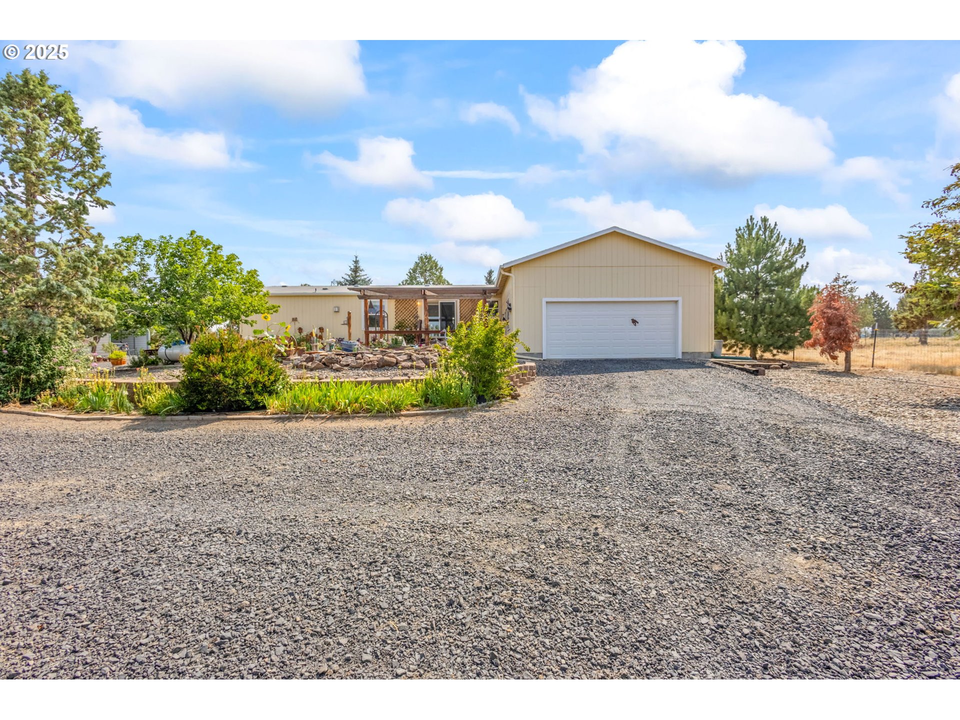 (503) 893-8874Bring the horses, goats and chickens and homestead on this 2 acres. Fenced and cross fenced and located on paved road. 1856 square foot, 4 bedroom, 2 bath home with double attached garage, barn with 3 stalls, workshop, greenhouse and chicken coup. Home has some updating recently with primary bath walk in shower. 14x20 patio with pergola cover and fun water feature with lily pads and fish. 8x10 front deck and concrete sidewalks front and back. Western front on greenhouse and poultry coup. 3 ton hay storage and attached workshop. Nice small horse set up with corral. Very good producing well- log reads 40+ GPM. Extraordinarily landscaped with beautiful trees and flowers. Carport for boat or RV. Gated driveway with lots of turn around space and parking area. School bus stops in front of the property. Home is vacant and ready for new occupants.