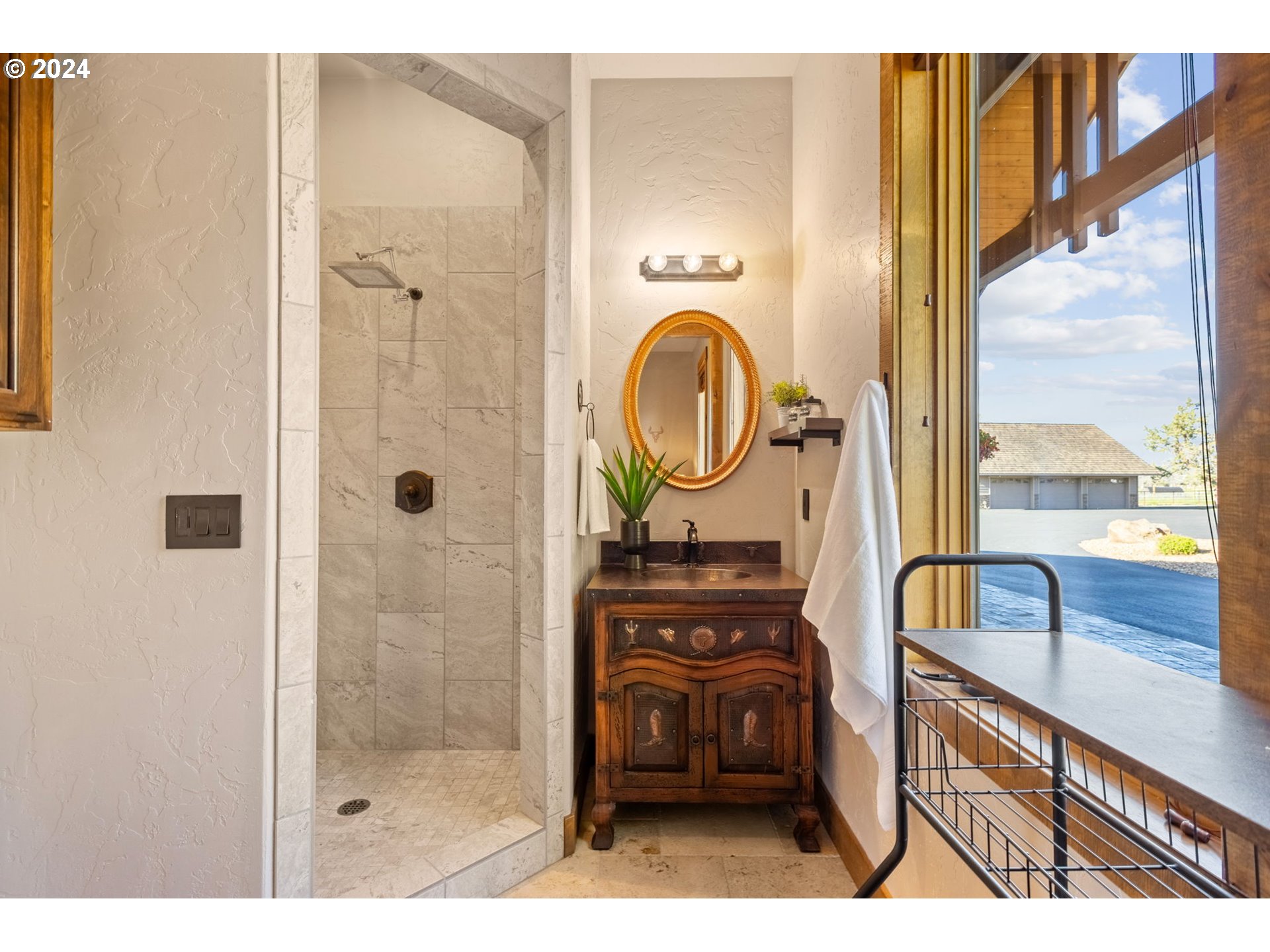(503) 893-88743,714 sqft, 3b/3.5 bth home. Breathtaking views of the Cascades. 102.92 ac. w/ 98 ac., flood irrigated, fenced & x-fenced w/ 7 strand fencing. Luxury home w/ rough edge granite, copper fixtures, S.S. fridge w/ 32'' doors, 6 burner cooktop, soft close drawers, ceiling height cabinets, stone backsplash, 5x9 island, antler chandelier, 8 ft doors & hand troweled walls. Butlers pantry has addl' fridge, sink, DW, dbl ovens, & pantry. Fireplace in primary, 2nd BR & LR. Primary has Cascade views w/ slider to the patio, hot tub, & firepit. Primary bth has copper sinks, copper soaking tub w/ antler chandelier & tile walk in shower. Bdrms 2&3 have ensuite bthrms w/ tile floors, walk in tile showers, copper fixtures & granite counters. Two - 3 car garages. Studio w/ bth & granite counters. 10 stall barn w/ runs, arena, 2 frost free faucets in barn. 2 machine sheds- 20x60 & 54x20. 1156 sqft farmhand hm. 4 irr ponds, shop w/ 2 14' roll up doors, loft storage & bathroom. Plus so much more!