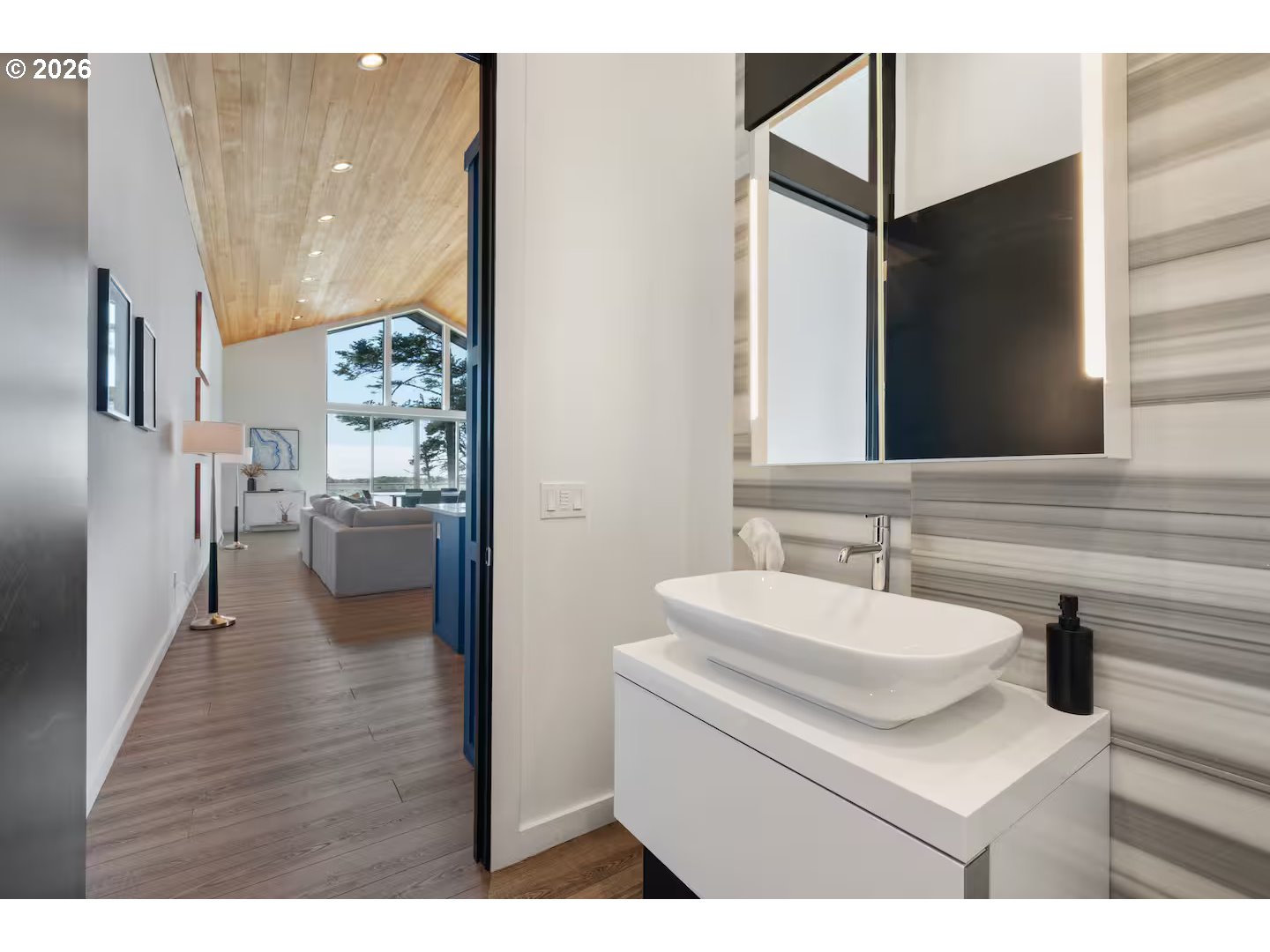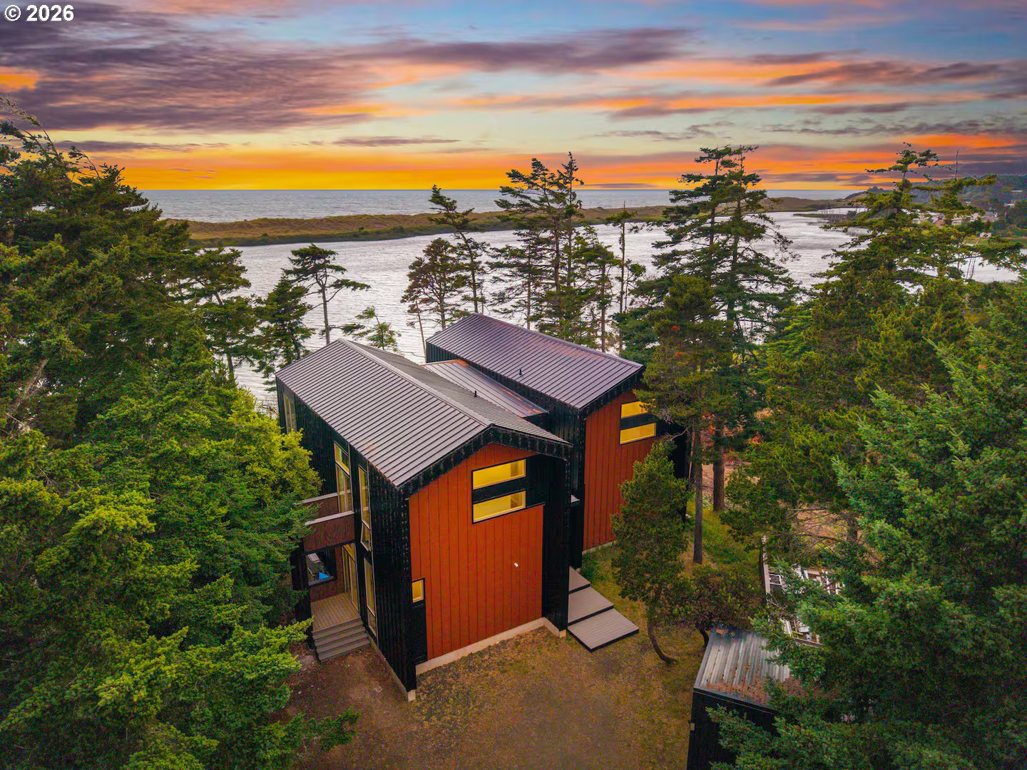 (503) 893-8874Prized Lake Front, Ocean View Residence with truly Magnificent Views! Located at the end of a cul-de-sac with no public beach access. The 12th Street boat ramp is a 4-minute walk and a 10-minute walk will put you at Tseriadun, known locally as Agate Beach, or… grab your flotation device of choice and paddle to the beach from your front yard without touching pavement!Purposefully constructed with the utmost flex space and multidimensional living quarters in mind. Possibilities include renting a portion of the house for either short- or long-term rentals while maintaining privacy between spaces. Three of the bedrooms are ensuite with outdoor living spaces and the two primary bedrooms are replete with opulent baths.The indoor living spaces with floor to ceiling glass are perfect for sunsets to stormy weather, blurring the indoor/outdoor separation while retaining a comfortable yet modern feel…