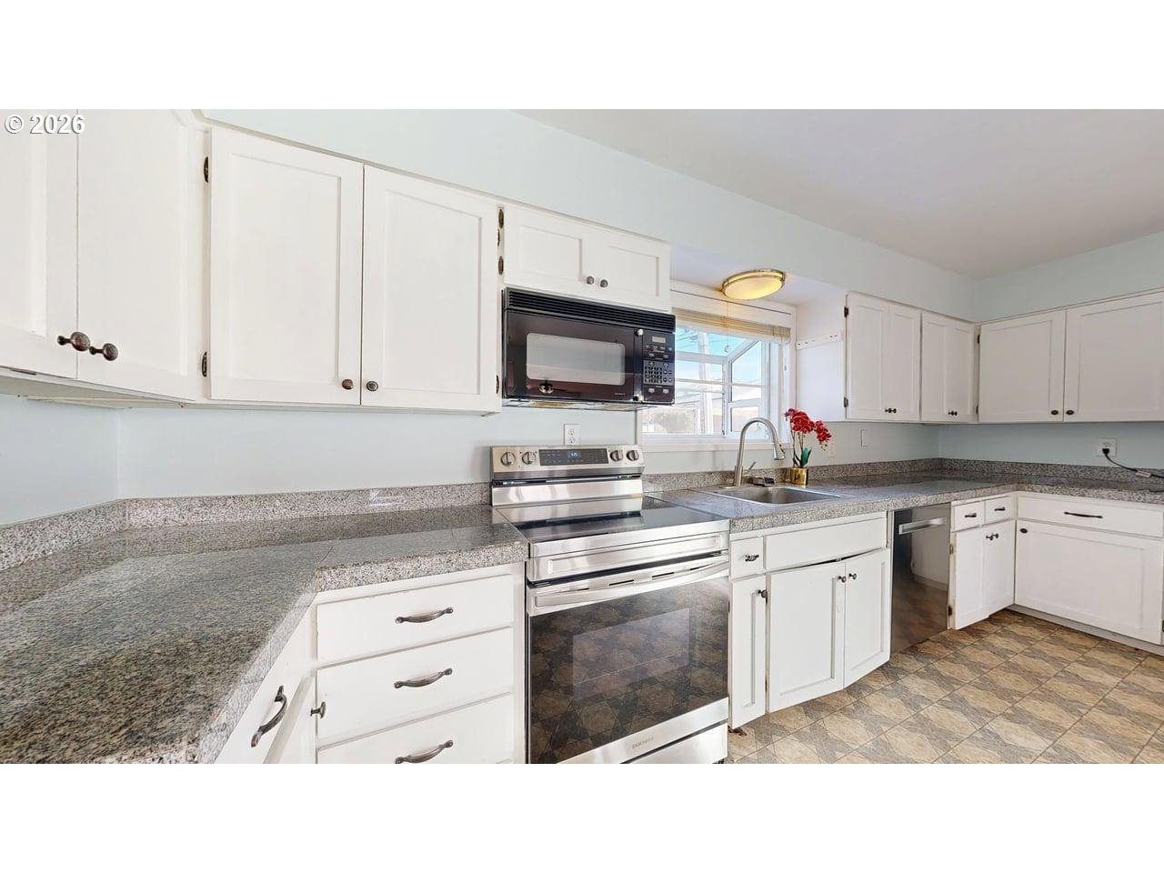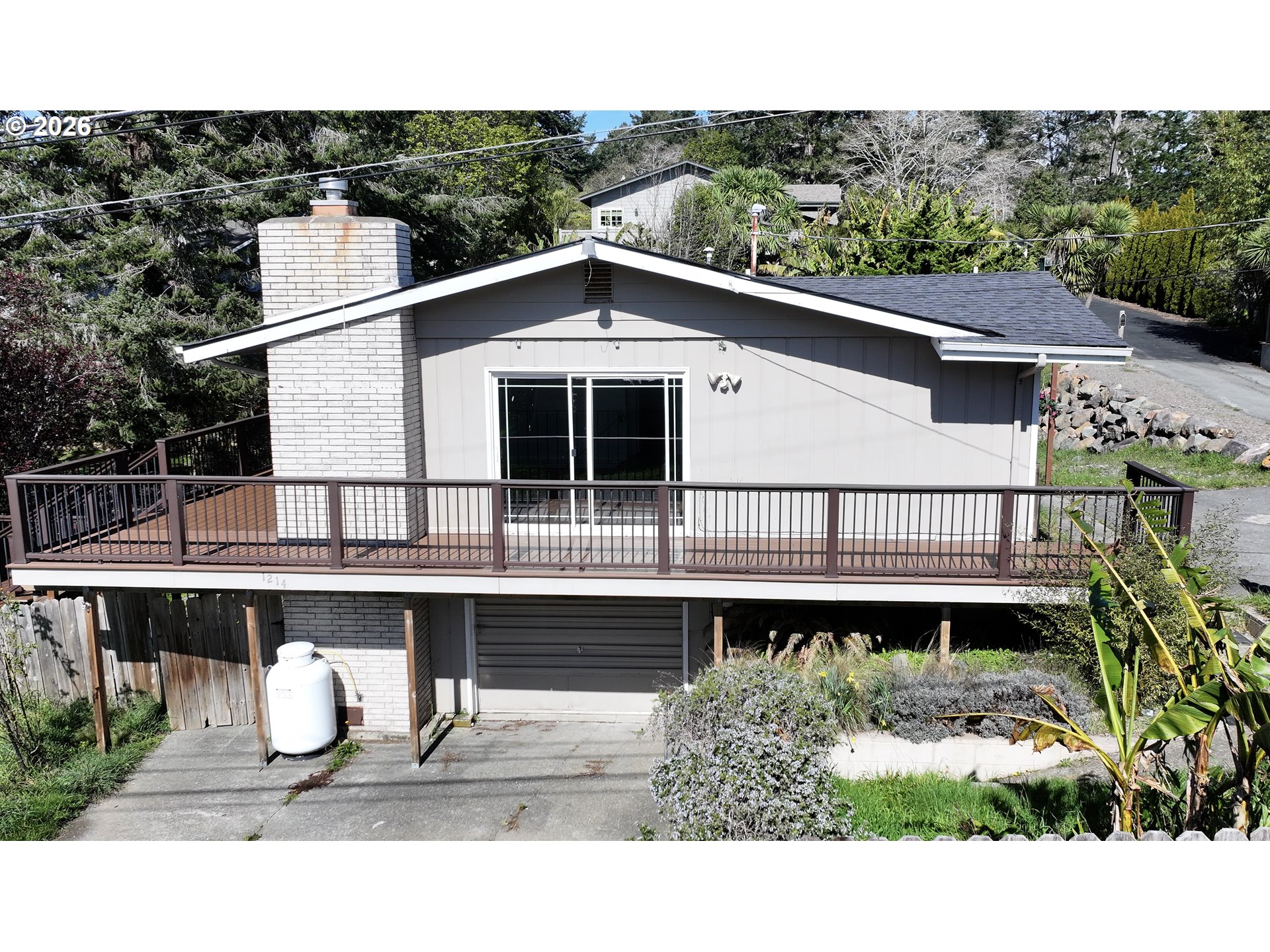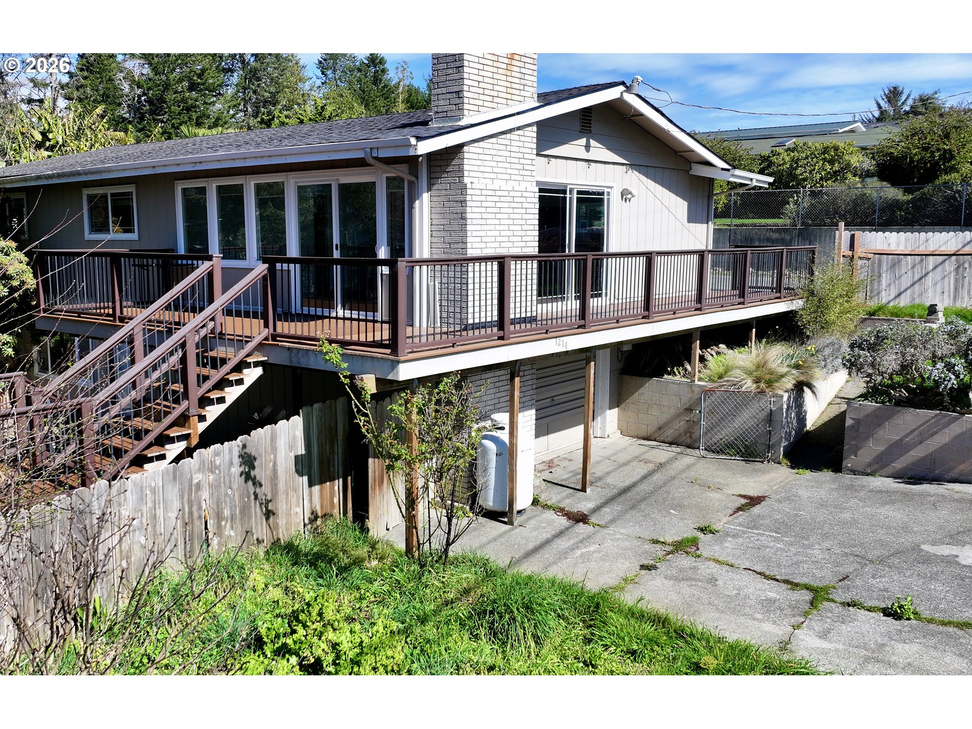 Wake up to ocean views in this flexible 3-bedroom, 2-bath home offering 1,960 square feet of comfortable coastal living, set on a spacious 0.22-acre corner lot. The main floor features an open concept layout that moves effortlessly from the living room to the dining area and into a well-equipped kitchen with stainless steel appliances and granite tile countertops. Two sliding glass doors lead out to a spacious partial wraparound deck, perfect for taking in the views or hosting friends.The lower level is fully finished and ready to fit your lifestyle. Set it up as a large family room or create a private primary suite. It includes its own kitchen, a walk-in closet, full bathroom, and direct access to the attached one-car garage. Interior stairs connect both levels, while a separate entrance makes dual living a real option.The utility room is located in the garage and includes a washer and dryer for added convenience.A spacious fenced backyard offers privacy along with plenty of room for gardening and relaxing.Just minutes from local amenities, including Harris Beach, local parks, tennis courts, the skate park, public pool, schools, and downtown Brookings.New roof installed July 2025. This home offers a lot of potential with a flexible layout that fits a range of needs.Ask to see the 3D tour for a closer look.