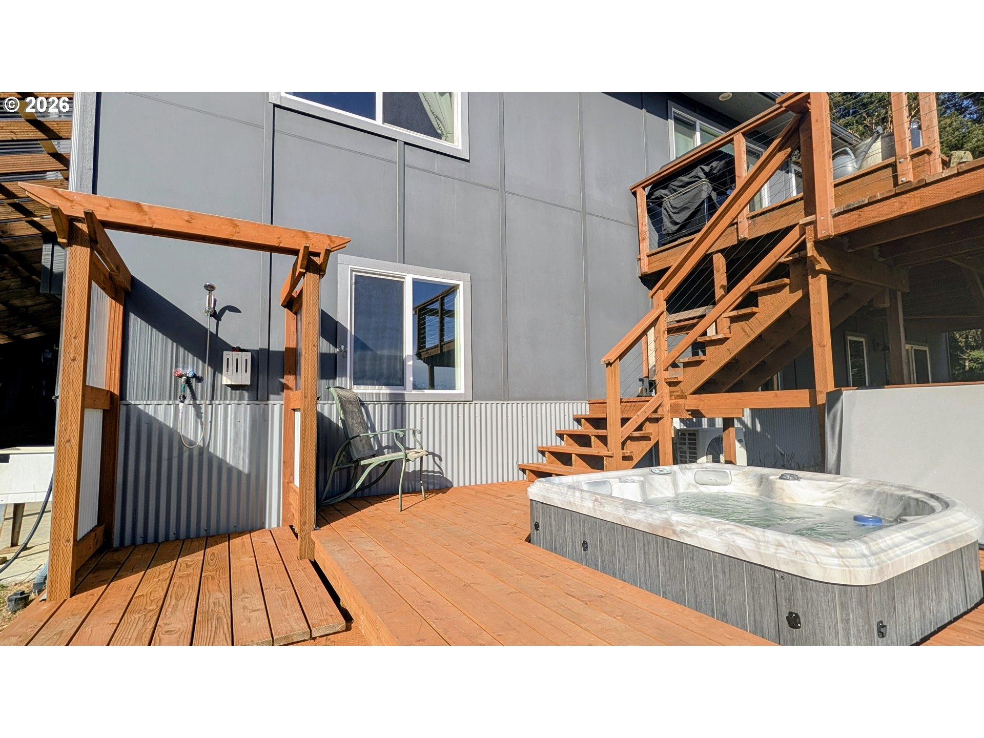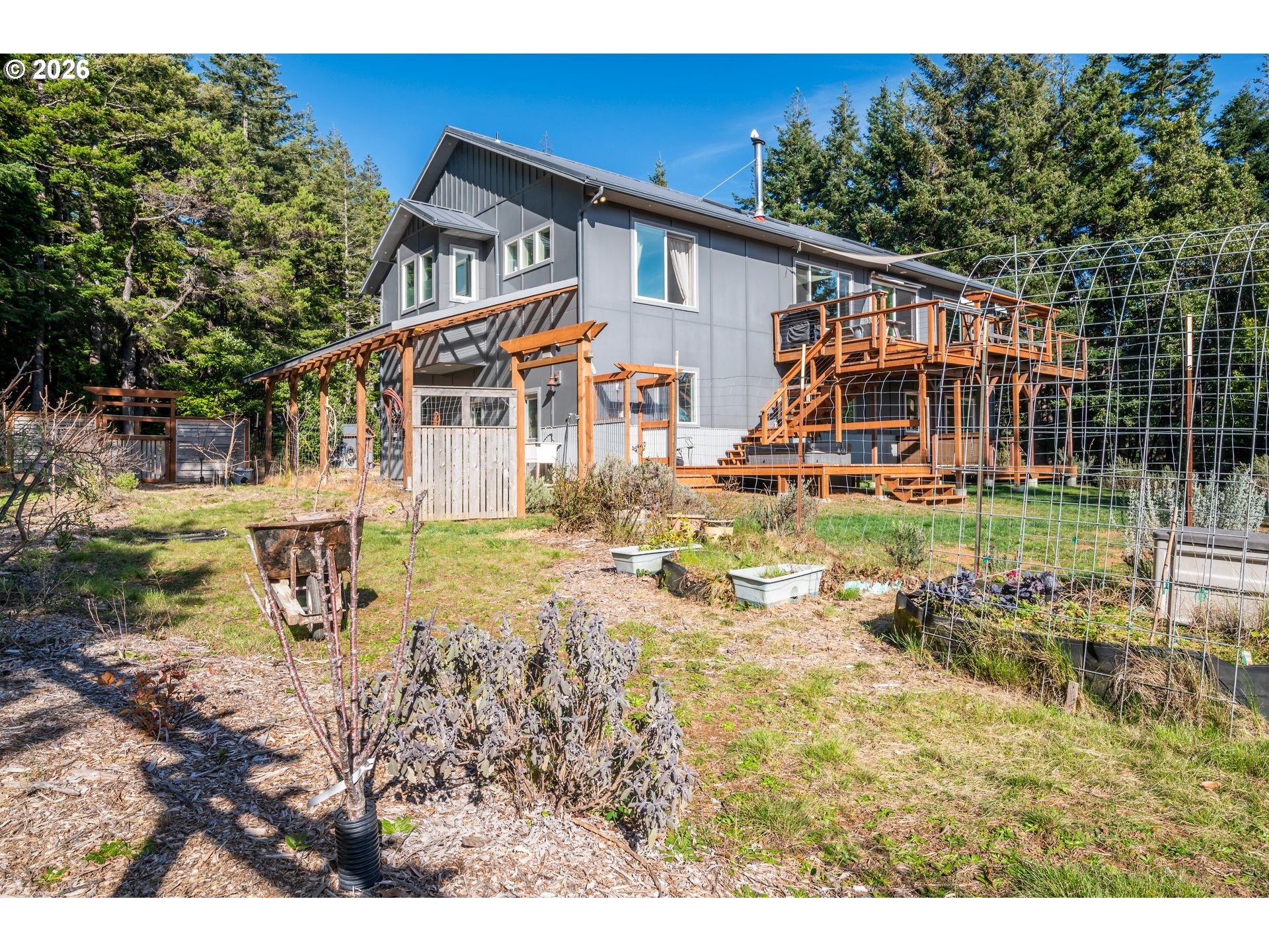 (503) 893-8874Custom-built 2022 this coastal retreat captures sweeping views of Redfish Rocks, Humbug Mountain, the Pacific, and the surrounding emerald forest. Thoughtfully designed with reverse living to highlight the scenery, this 2,700+ sq ft home blends craftsmanship, comfort, and natural beauty.The lower level welcomes guests with a spacious entry, office, and a private guest suite featuring a separate entrance, kitchenette, and full bath — perfect for visitors, a caregiver's quarters or as a successful rental. The 923 sq ft oversized double garage offers abundant storage and two well lit workshop areas (355 sq ft) for hobbies or gear. Up the stairs made from locally milled Oregon myrtlewood you will find , vaulted ceilings, skylights, and expansive windows filling the open floor plan living area with natural light and views of the sunset from every window. A cozy wood stove and reading nook add warmth, while the well-designed kitchen includes stainless appliances , custom acacia wood counters , a butler’s pantry and convenient laundry. Step out to over 900 sq ft of decking ideal for entertaining or relaxing — complete with an ocean view hot tub, dual outdoor showers, and panoramic views. The primary suite is a serene retreat with a stunning glass-enclosed soaking tub and a custom-tiled, step-in double shower, dual sinks, and a flexible bonus room perfect for yoga, meditation, or a second office. Two additional bedrooms and a full bath complete the upper level. Situated on 2.22 private acres, with towering trees , a fenced garden, fruit trees, covered carport, an easy driveway turnaround , RV parking and peaceful, private surroundings, this home is built to endure with durable fiber-cement siding, a standing seam metal roof, on-demand hot water, and luxury vinyl plank and tile flooring. Minutes from town, yet offering a world apart — this is coastal living at its finest. Check out the video!