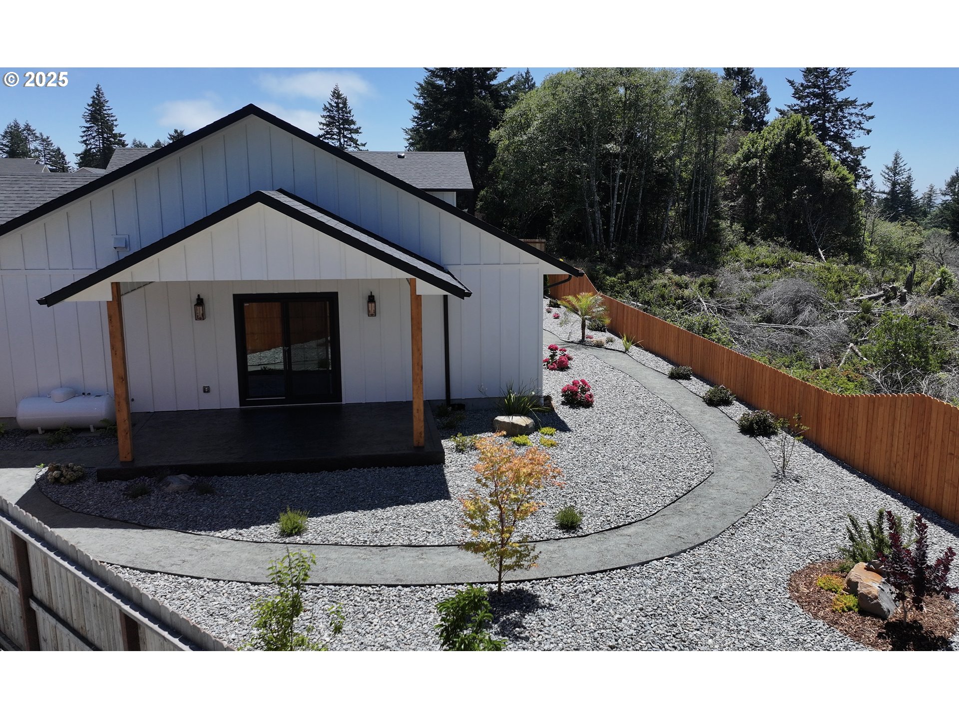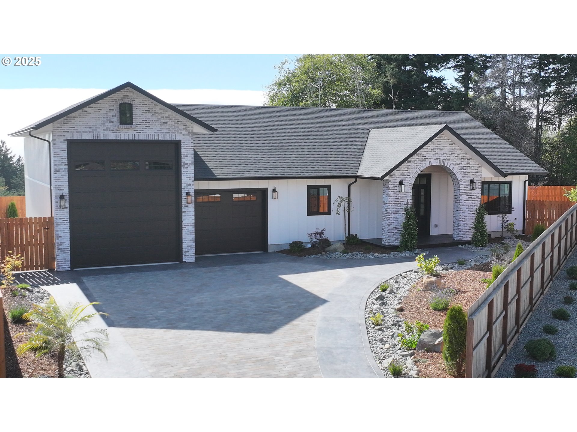 (503) 893-8874Oceanview New Construction Home – 100% Completed and Move-In Ready. This single-level 3-bedroom, 2-bath home offers just under 1,600 sq ft of beautifully designed living space in the sought-after Seacrest Estates. With just a single step to enter, this home offers both comfort and accessibility. From the moment you arrive, the impressive paver and stamped concrete entrance sets the tone, leading to a rare 40-foot-deep RV garage, ideal for storing an RV, boat, or both. 14- and 12-ft doors; the RV side is 15 ft 2 in. x 40 ft deep. The fully landscaped yard is equally striking, with ocean views from every bedroom and the backyard. Inside, the open-concept floor plan is filled with natural light and designed for easy living and entertaining. The spacious living area features a beautiful fireplace and luxury vinyl plank flooring throughout. The chef’s kitchen boasts quartz countertops, a smart refrigerator, a gas range, and a Bosch dishwasher, providing both style and function. The dining area opens to a large covered patio with sweeping ocean views, perfect for year-round enjoyment. The primary suite is a true retreat with vaulted ceilings, a walk-in shower, and an oversized walk-in closet. Two additional bedrooms are positioned for privacy and comfort, each offering an ocean view. A charming covered front porch, accented with a brick arch detail, adds timeless curb appeal. Located approximately 7 minutes from the famous Harris Beach State Park and just minutes to downtown Brookings, shopping, dining, and entertainment, this home offers the perfect blend of coastal beauty and everyday convenience. Seacrest Estates is a desirable newer neighborhood with custom homes and a welcoming community atmosphere. This is a rare opportunity to own a brand-new, move-in-ready oceanview home in one of Brookings’ most sought-after locations. Ask to see the Matterport Professional 3D tour, which covers the inside and outside of the home, and also ask for the floor plan.