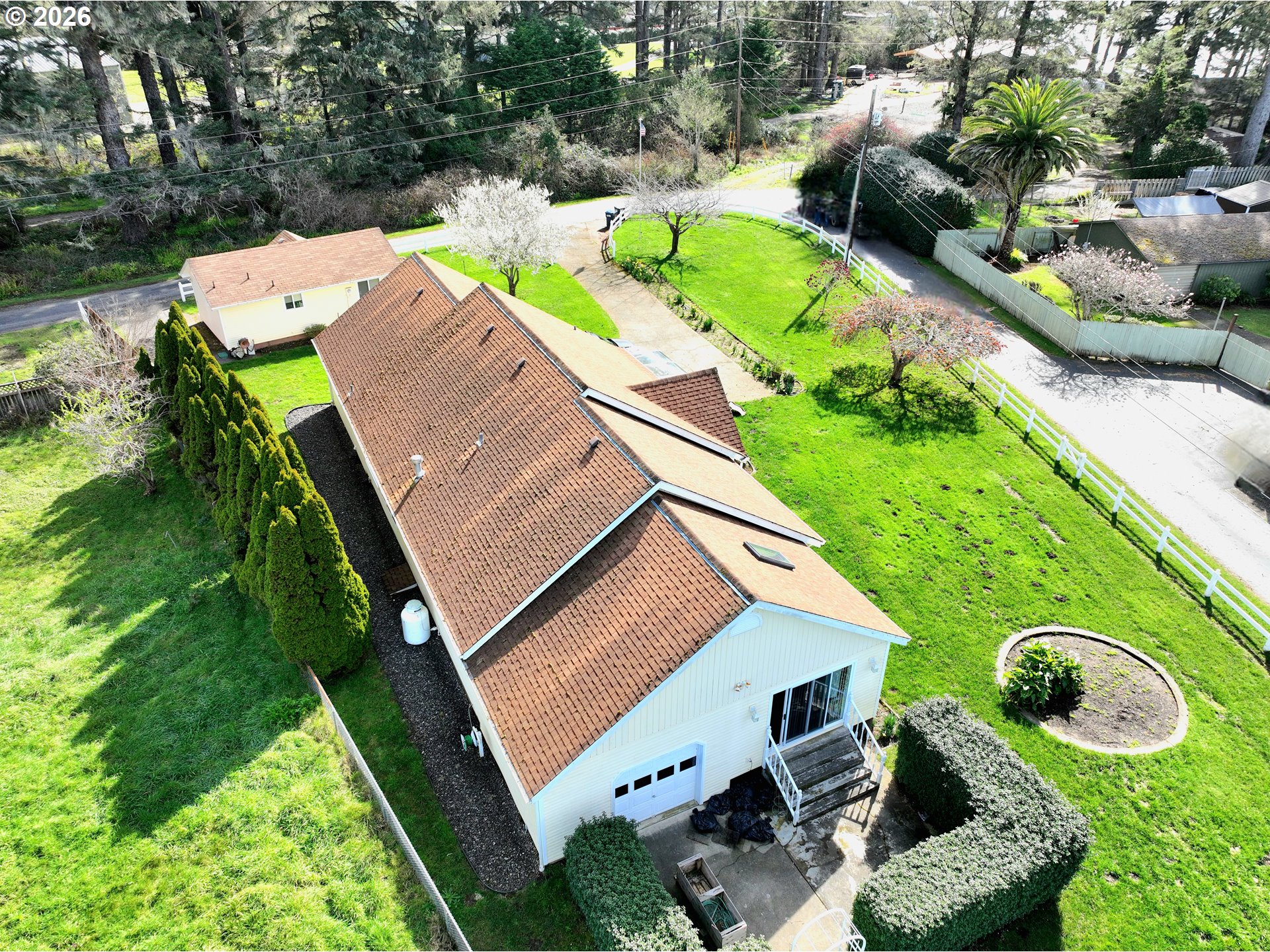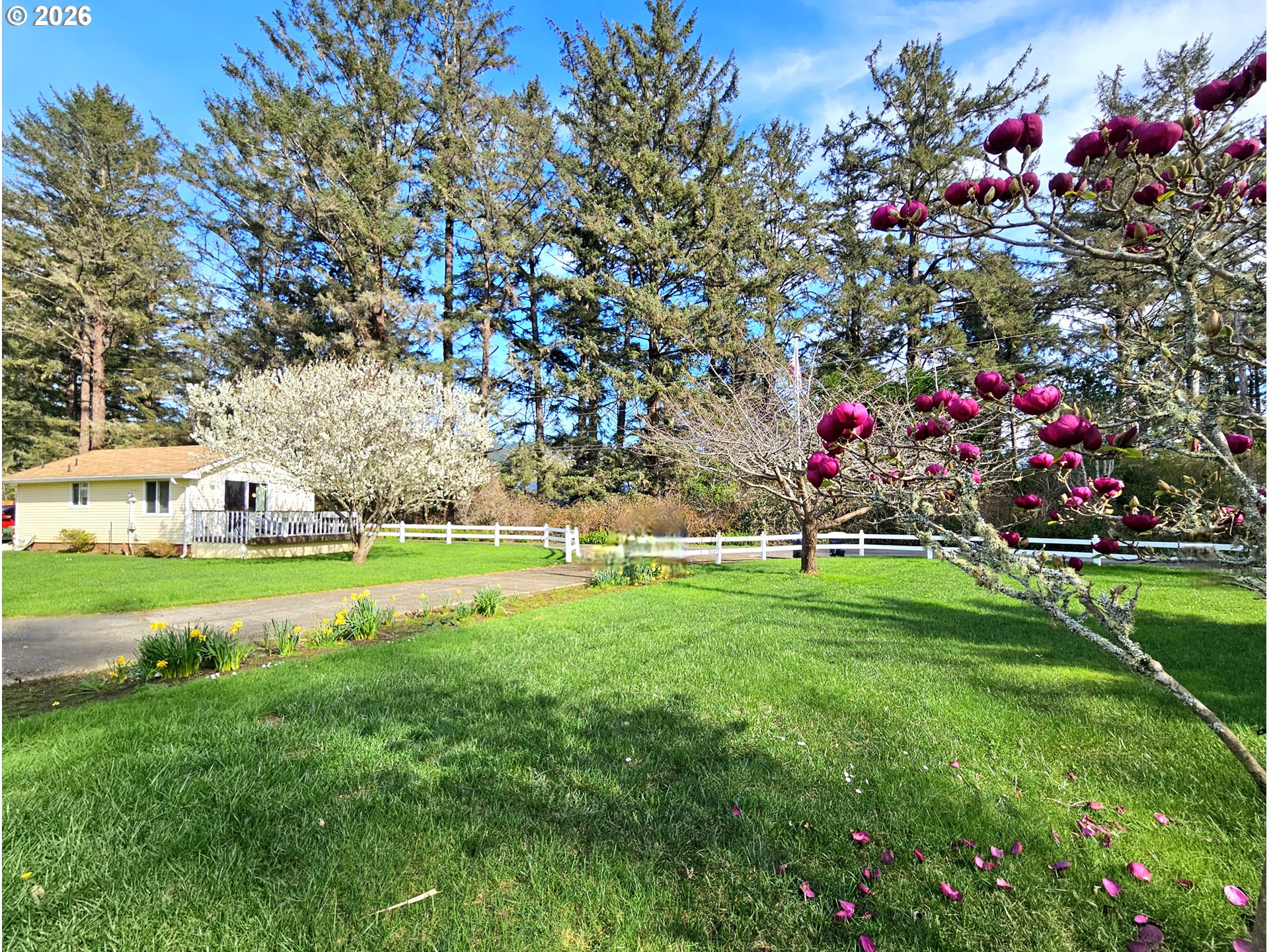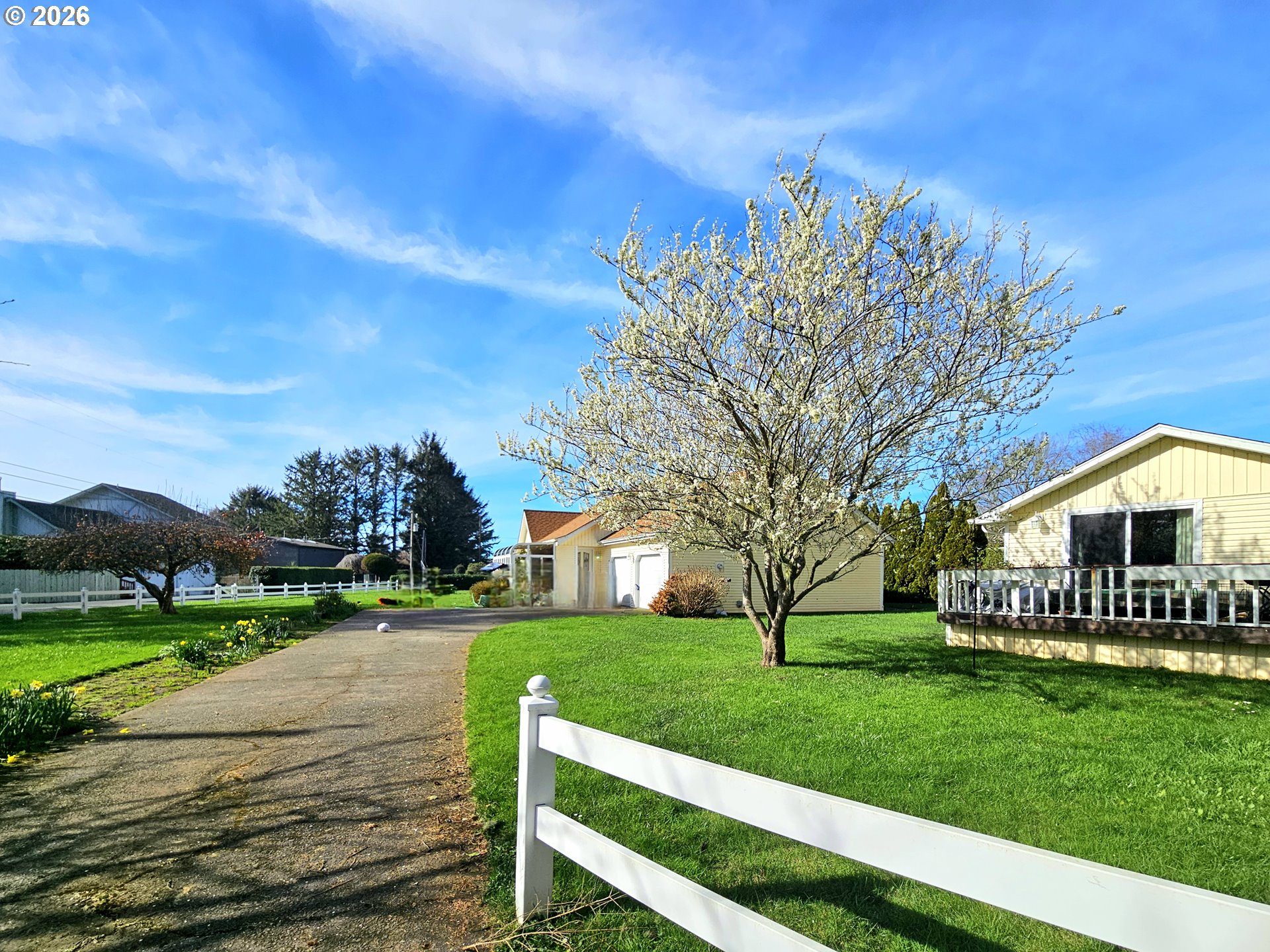Tucked away at the end of a private lane this beautiful property offers space, charm, and coastal living at its finest. Set on nearly half an acre of flat, usable land, the home features 3 bedrooms, 2 bathrooms, a comfortable living room, kitchen, and a dedicated office space and a fantastic sunroom where you can relax and enjoy peaceful ocean views year-round. The property also includes both a double garage and a single garage, offering plenty of room for parking, hobbies, or storage. Adding even more versatility is the adorable 1 bedroom, 1 bathroom guest cottage, perfect for visitors, extended family, or potential rental use. Both the home and the cottage are currently rented. The grounds are truly special, with a lush green lawn, fruit trees, colorful flowers, and a picturesque white rail fence outlining the property. All of this is located in a quiet neighborhood a short distance to the beach, making it an ideal coastal retreat with room to spread out and enjoy the beauty of the surroundings.