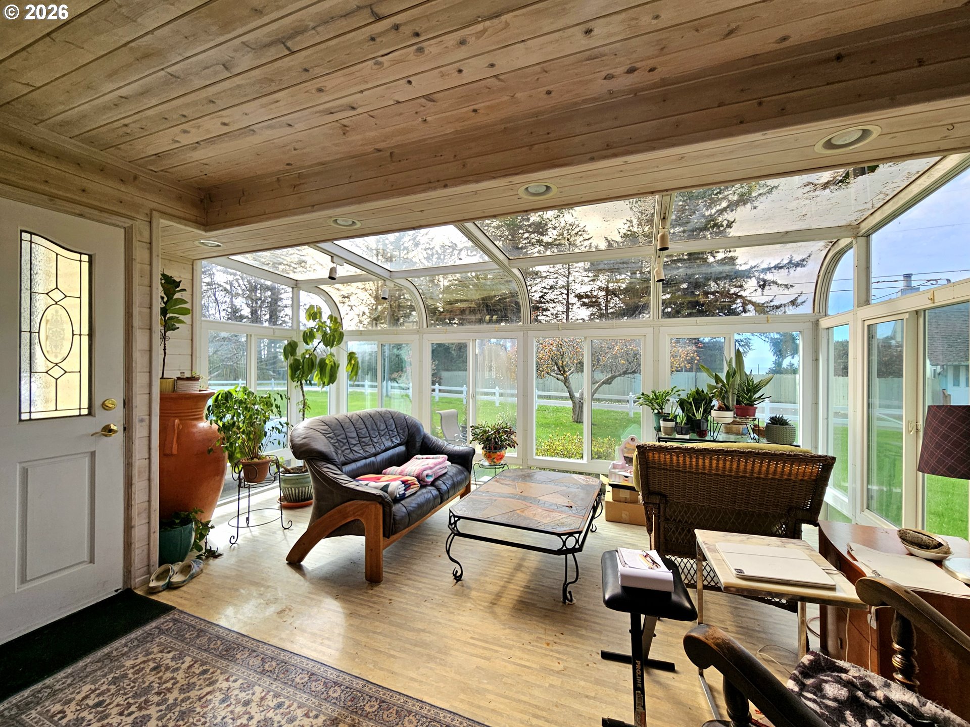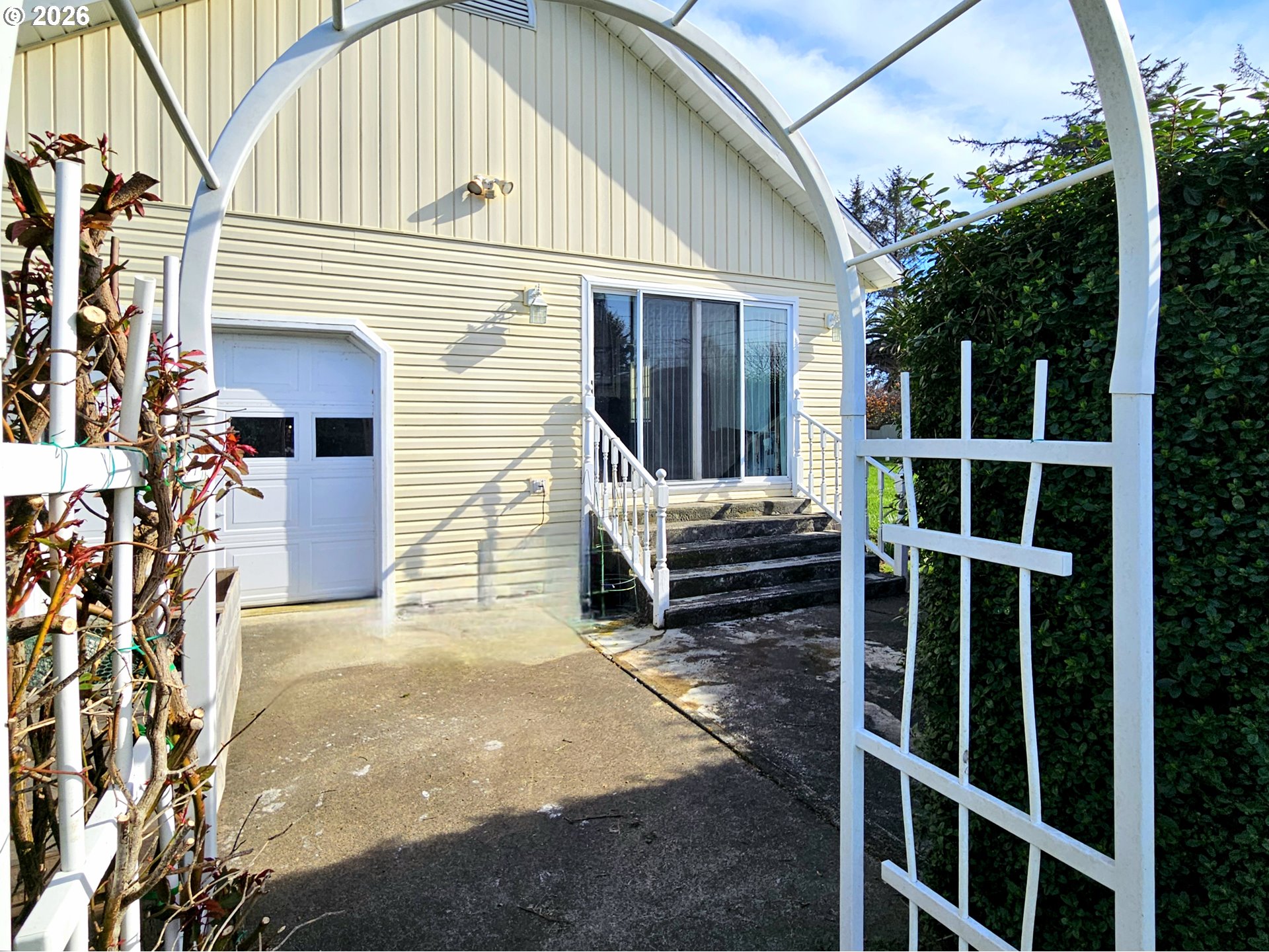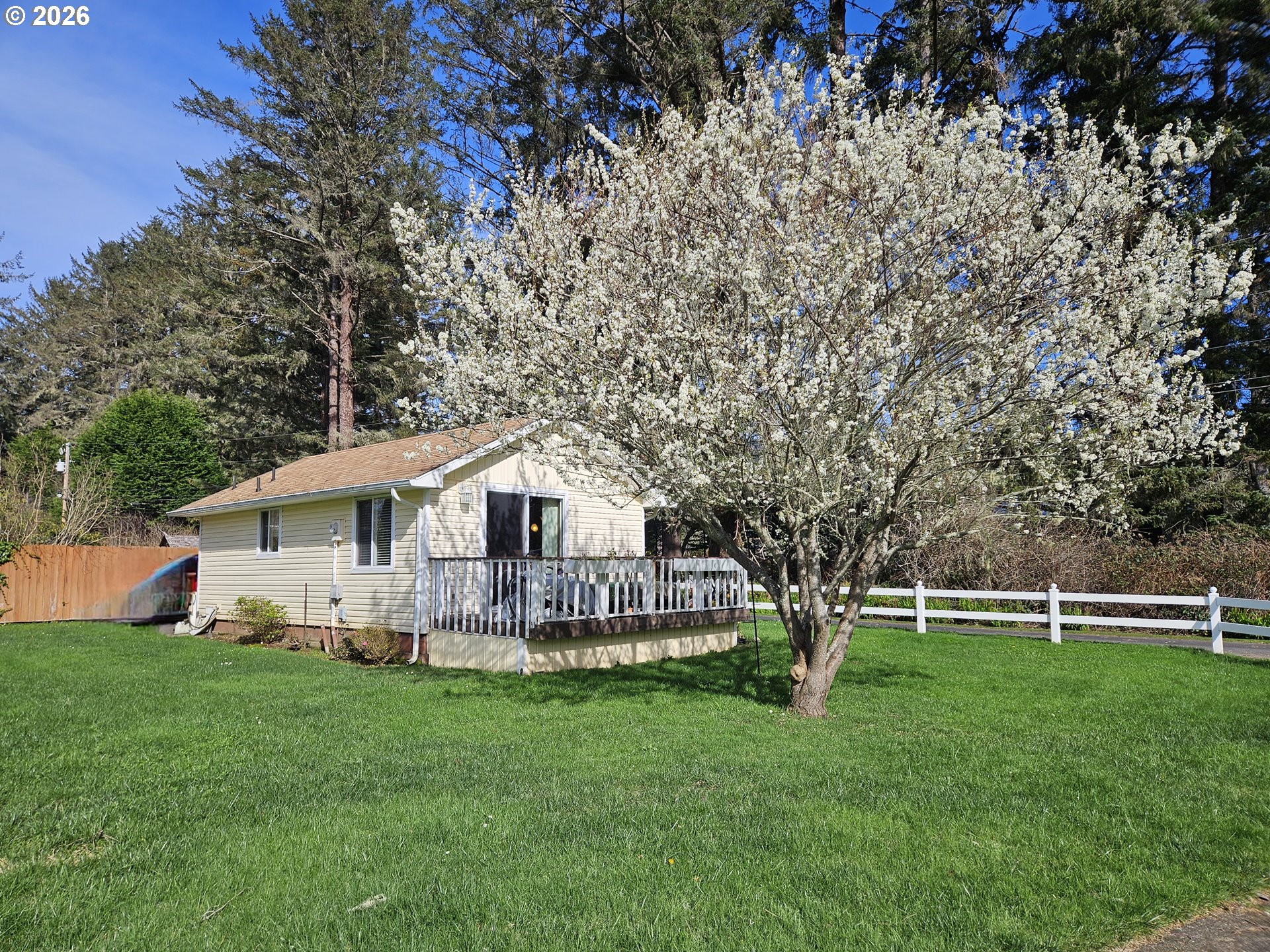 Tucked away at the end of a private lane this beautiful property offers space, charm, and coastal living at its finest. Set on nearly half an acre of flat, usable land, the home features 3 bedrooms, 2 bathrooms, a comfortable living room, kitchen, and a dedicated office space and a fantastic sunroom where you can relax and enjoy peaceful ocean views year-round. The property also includes both a double garage and a single garage, offering plenty of room for parking, hobbies, or storage. Adding even more versatility is the adorable 1 bedroom, 1 bathroom guest cottage, perfect for visitors, extended family, or potential rental use. Both the home and the cottage are currently rented. The grounds are truly special, with a lush green lawn, fruit trees, colorful flowers, and a picturesque white rail fence outlining the property. All of this is located in a quiet neighborhood a short distance to the beach, making it an ideal coastal retreat with room to spread out and enjoy the beauty of the surroundings.