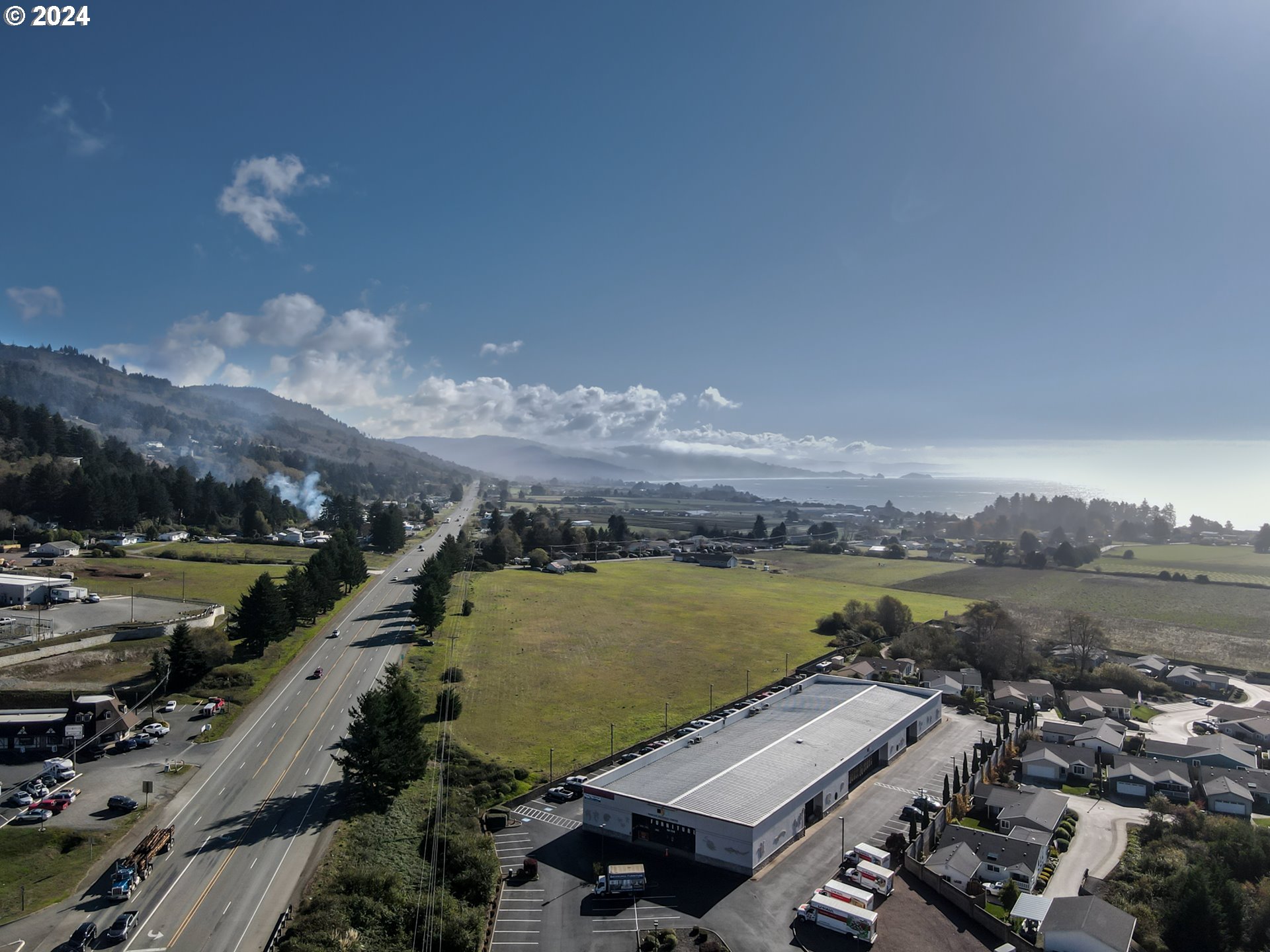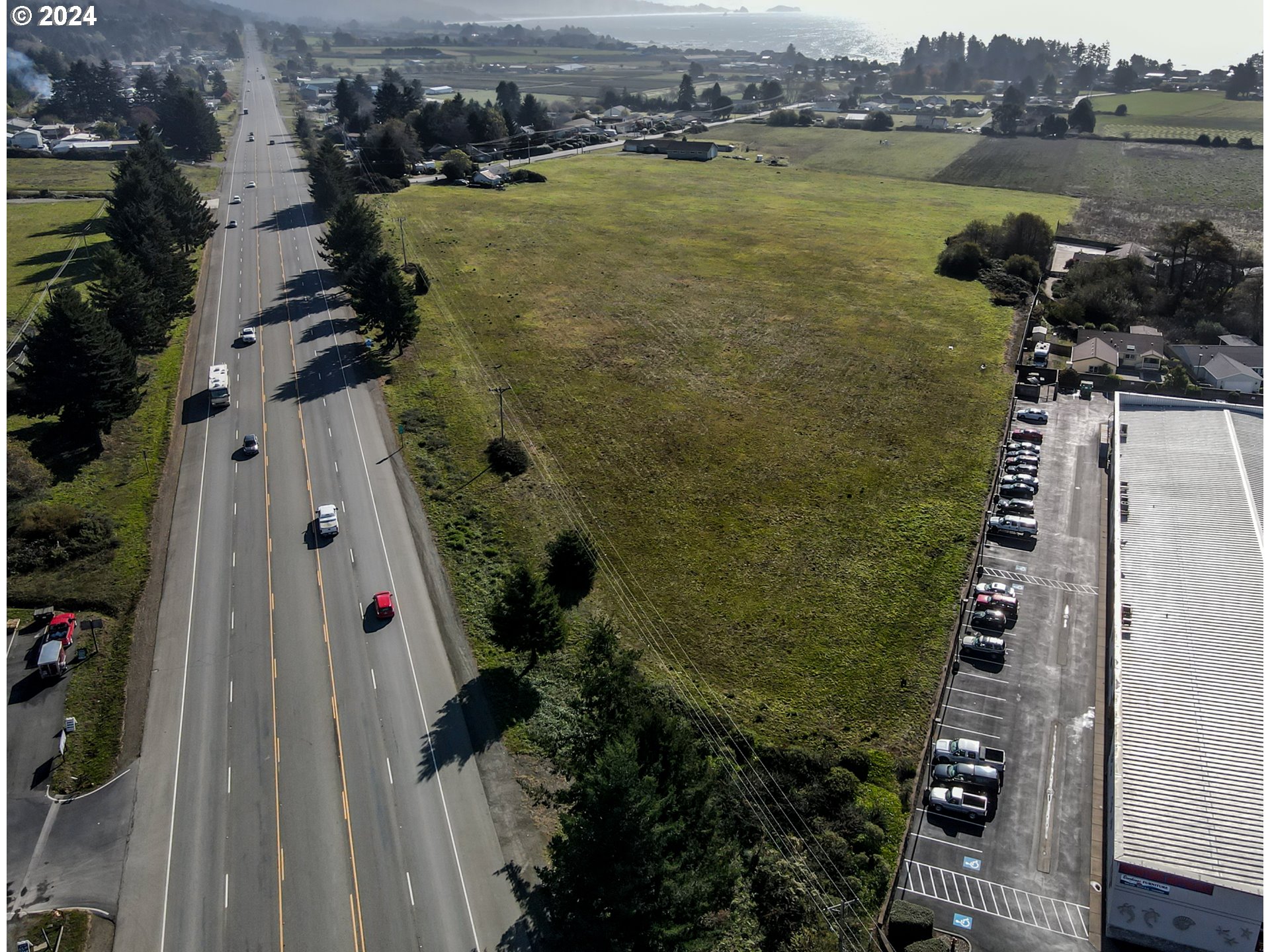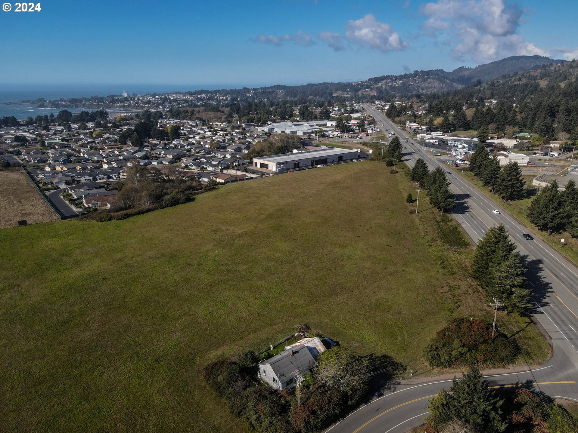 SIGNIFICANT PRICE IMPROVEMENT with 1,000 feet of Scenic HWY 101 frontage. Current zoning is Agricultural and soil is deemed high grade farm soil. Formally a Lily field/farm. There is a 1940's residence on the property in a state of dis-repair. Residence is leased $300/month. Buyer to perform own due diligence regarding land/zoning.