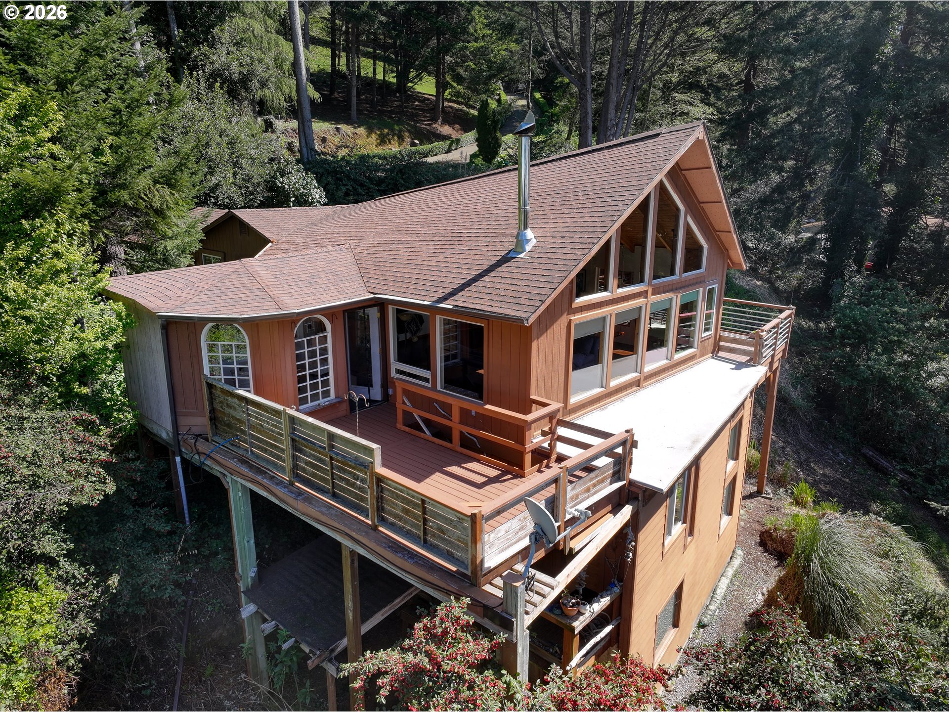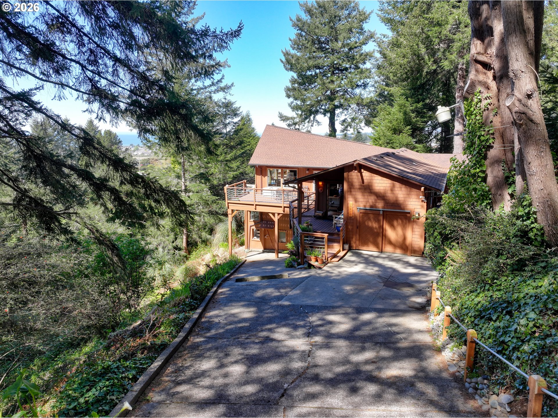 (503) 893-8874Perched on a serene hillside overlooking the Pacific Ocean and Harbor Bench, this enchanting Pacific Northwest retreat offers breathtaking views of the ocean, lush forests, pastures, and picturesque lily farms. Surrounded by nature, this unique and tranquil getaway provides the perfect escape. Designed in the sought-after Lindal Cedar Home style, the home features dramatic wall of windows. Inside, you’ll find distinctive architectural details including cathedral cedar ceilings, charming arched windows, a formal dining room, and a cozy library/den, creating a warm and inviting atmosphere throughout. The thoughtfully designed kitchen boasts stainless steel appliances, quality cabinetry, and ample space for cooking and gathering, while beautiful wood floors flow throughout the home. The finished basement area is a wonderful art studio, she shed, man cave or easily converted to living space. An unfinished basement area provides for a great storage area for yard tools and/or miscellaneous items. Abundant natural light fills every room, seamlessly bringing the outdoors in. Located in the desirable “Banana Belt” climate, the property offers year-round enjoyment of outdoor living, including exceptional opportunities for ocean and river fishing nearby. Whether you’re seeking a full-time residence or a peaceful coastal escape from city life, this one-of-a-kind property delivers unmatched beauty, comfort, and tranquility. Short term rental potential. Recent (March 2026) Home and septic inspections on file. #BrookingsOregon #SouthCoastOregon #ChetcoRiver #RogueRiver #PacificNorthWest #VRBO #AIRBNB
