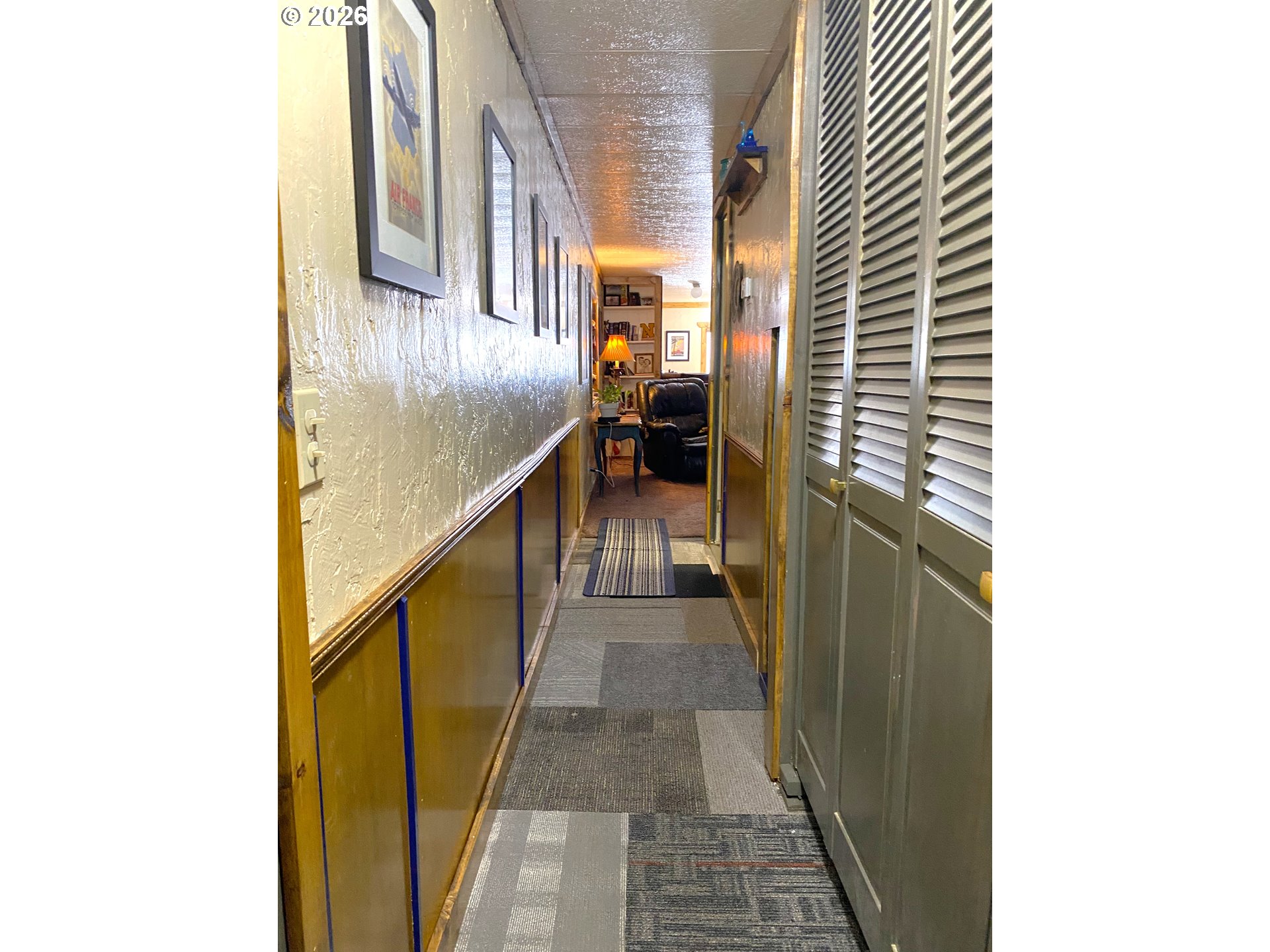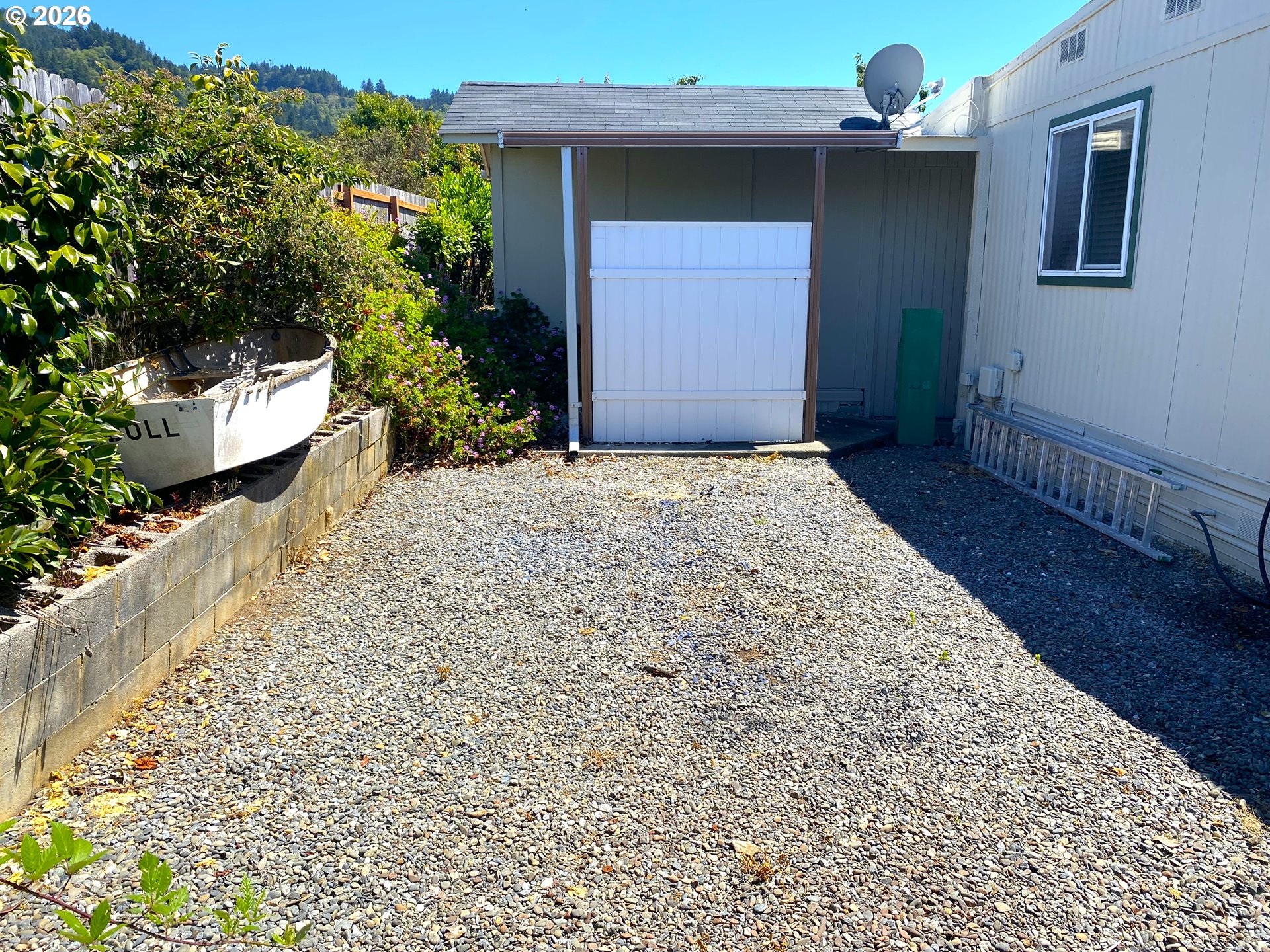 Welcome to this charming and cozy coastal bungalow, 2Bd/1Bth home with extra deep 2-car garage & workshop. Located in the quiet, well-maintained Sunset Strip Mobile Home Park, just one mile from the harbor, local eateries, and fishing docks.Step inside to a warm, cabin-like ambiance highlighted by stained and sealed pine trim, chair rail accents, and custom doorway casings. The kitchen features refrigerator, stove, and dishwasher. Tiled backsplash, and a convenient dining bar. Enjoy meals by the front bay window or take advantage of the built-in office desk—perfect for working from home. Spacious living and easy access to the extra back covered porch area for a private outdoor sitting area, ideal for BBQs, relaxing, or extra storage. The bathroom has been renovated with a new tub/shower, vanity, sink, toilet, and updated flooring. The light-filled primary bedroom is comfortably sized. A built-in laundry area with washer and dryer adds everyday convenience. A standout feature of this property is the extra-deep 17’ x 44’ two-car garage with automatic opener—perfect for parking, hobbies, projects, or abundant storage. Additional utility space includes a 12’ x 8’ tool shop and multiple exterior storage nooks. A security door leads to the enclosed, low-maintenance backyard with fresh gravel. The exterior is equally appealing with a manicured yard, easy-care landscaping, and a wide covered front porch—an ideal spot to enjoy the coastal breeze. Furnishings are negotiable. Don’t miss this opportunity to own a clean, well-cared-for home in a prime coastal location. Space rent is $600/month and includes water and sewer. One-time deposit of $500. Park approval required. Appointment only.