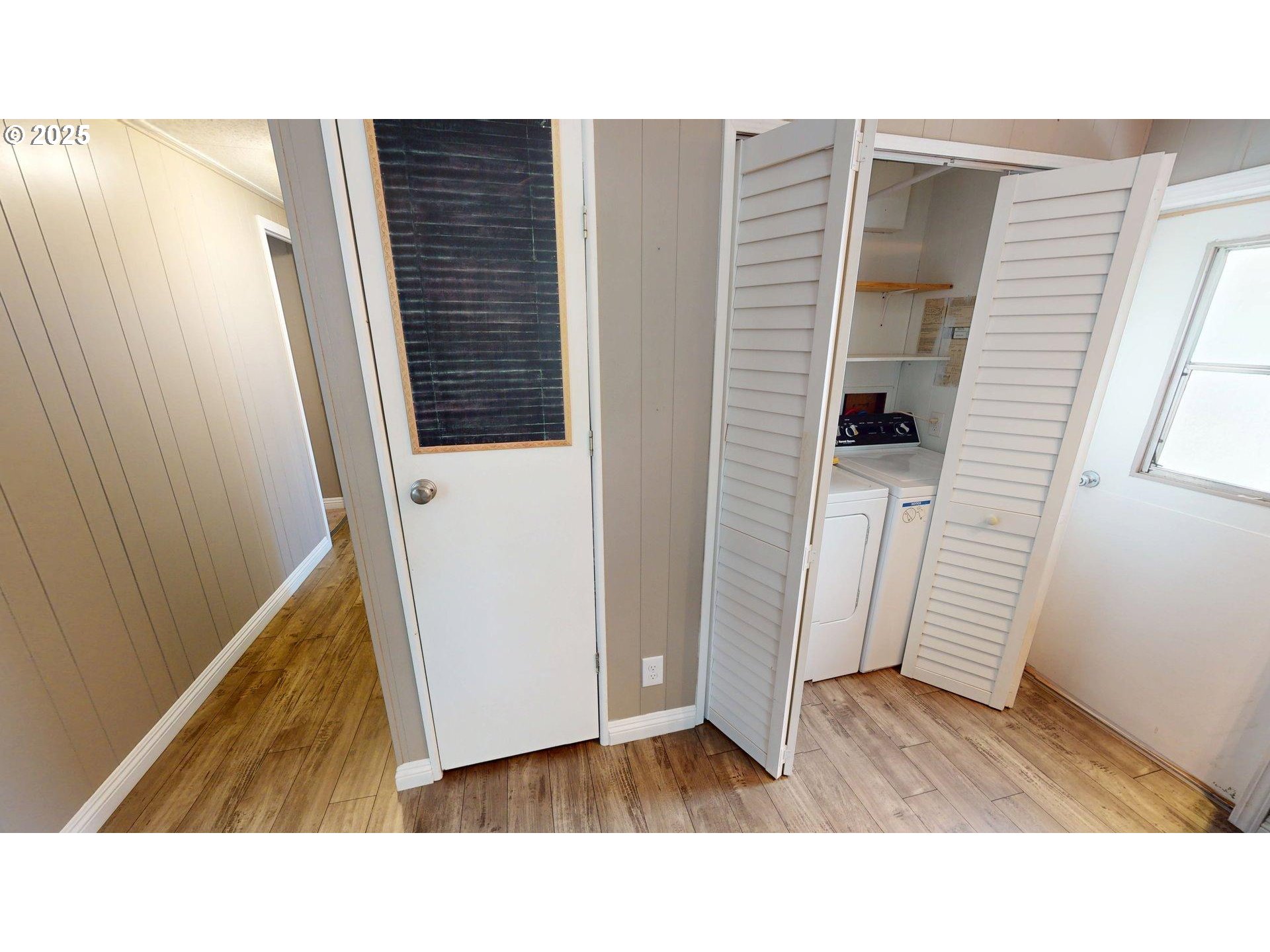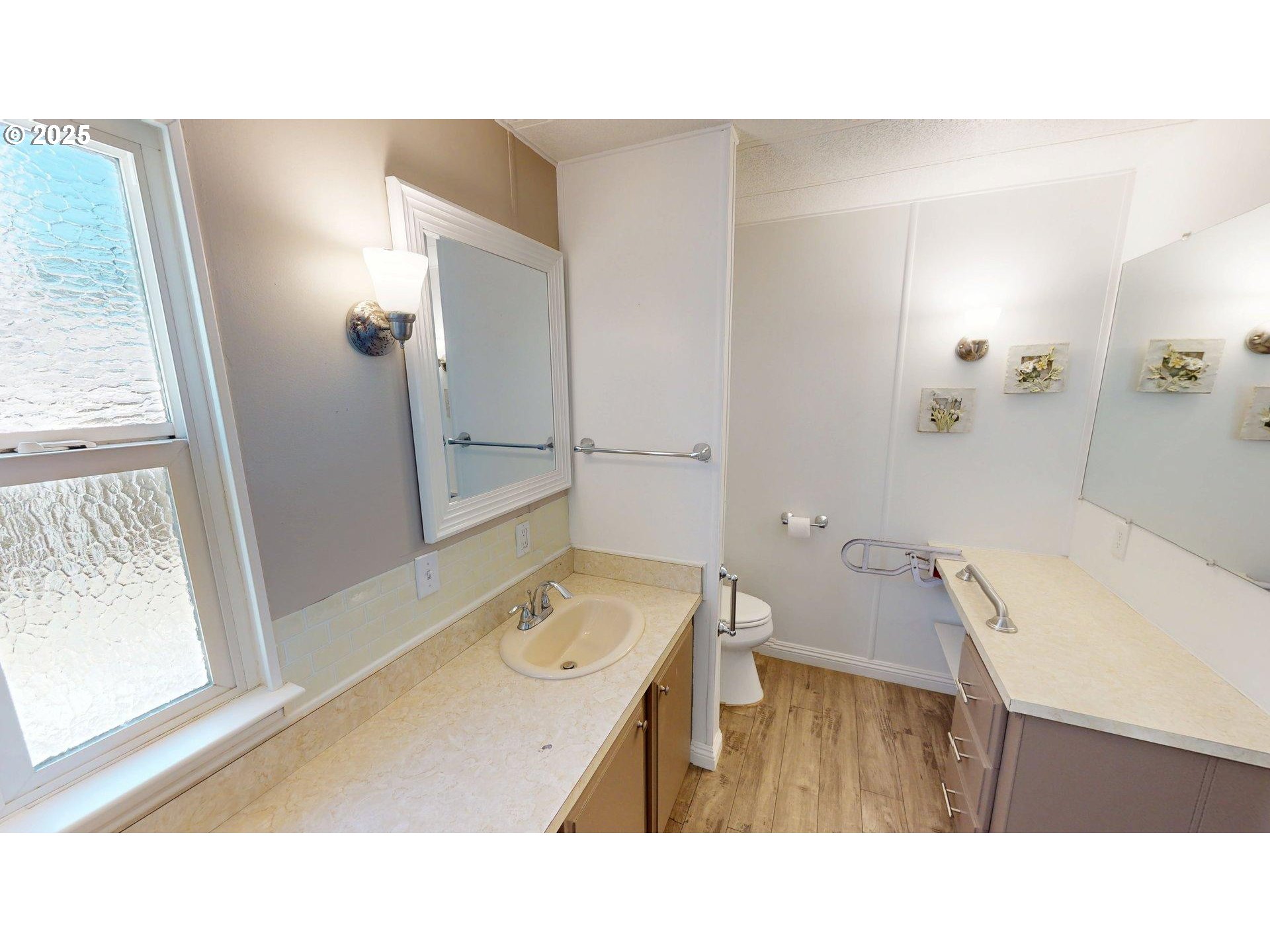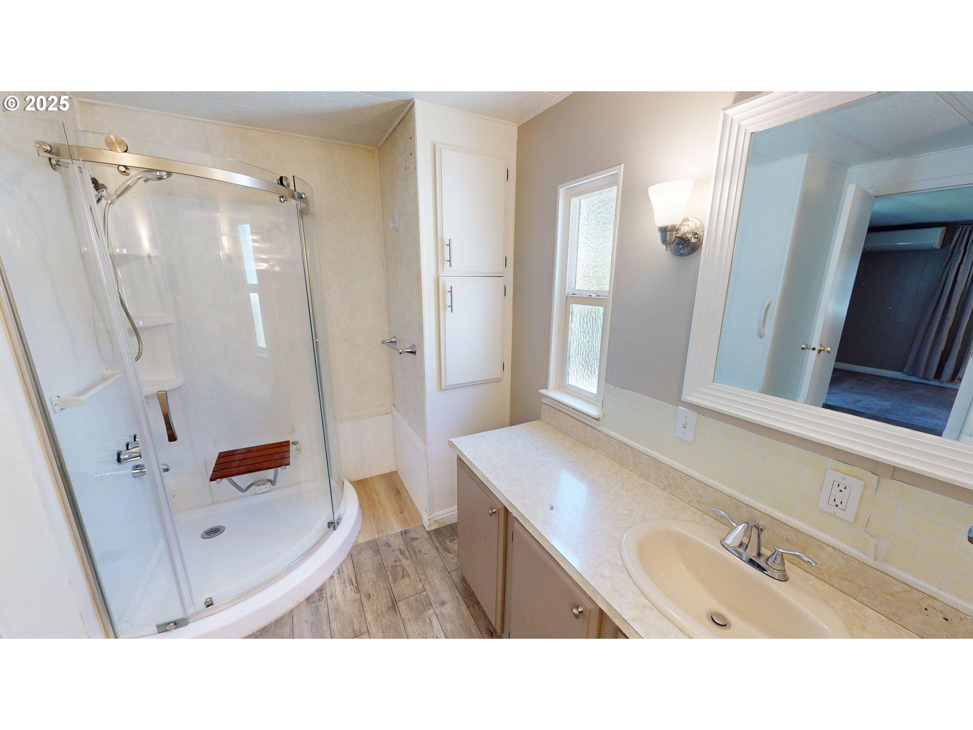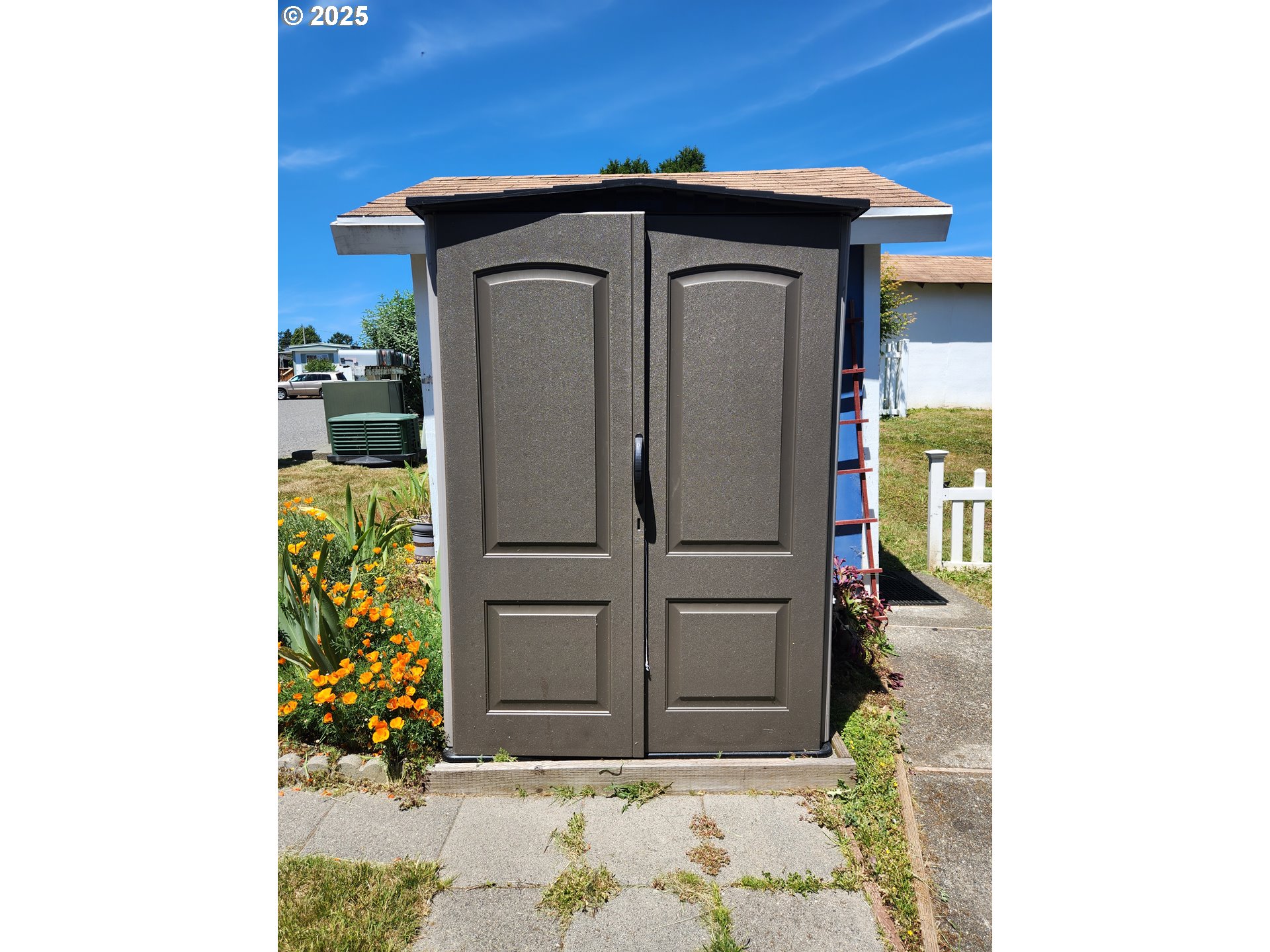 Spacious 2BR/2BA double-wide Home in a Desirable 55+ ParkThis well-maintained home offers a comfortable and accessible layout on a desirable corner space in a beautifully kept 55+ community. Enjoy the convenience of a covered carport with a ramp, making access easy for everyone. The home features dual vinyl windows and laminate flooring throughout the kitchen, living, and dining areas, with cozy carpeting in the bedrooms.Stay comfortable year-round with ductless heat pumps in the main living space and both bedrooms. The kitchen is equipped with a cooktop, built-in oven, dishwasher, and refrigerator. The laundry area includes a washer and dryer for added convenience.The spacious primary suite includes double closets, its own ductless heat pump, and enough room for a large bed. The ensuite bathroom features a step-in shower with a built-in bench and generous storage. The second bedroom also has built-in closet storage and a ductless heat pump. The main bathroom includes a shower/tub combo.Two storage sheds provide additional space for your tools or hobbies. Park rent is $475/month and includes water, sewer, and garbage. This is an ideal home in a peaceful, well-kept community.