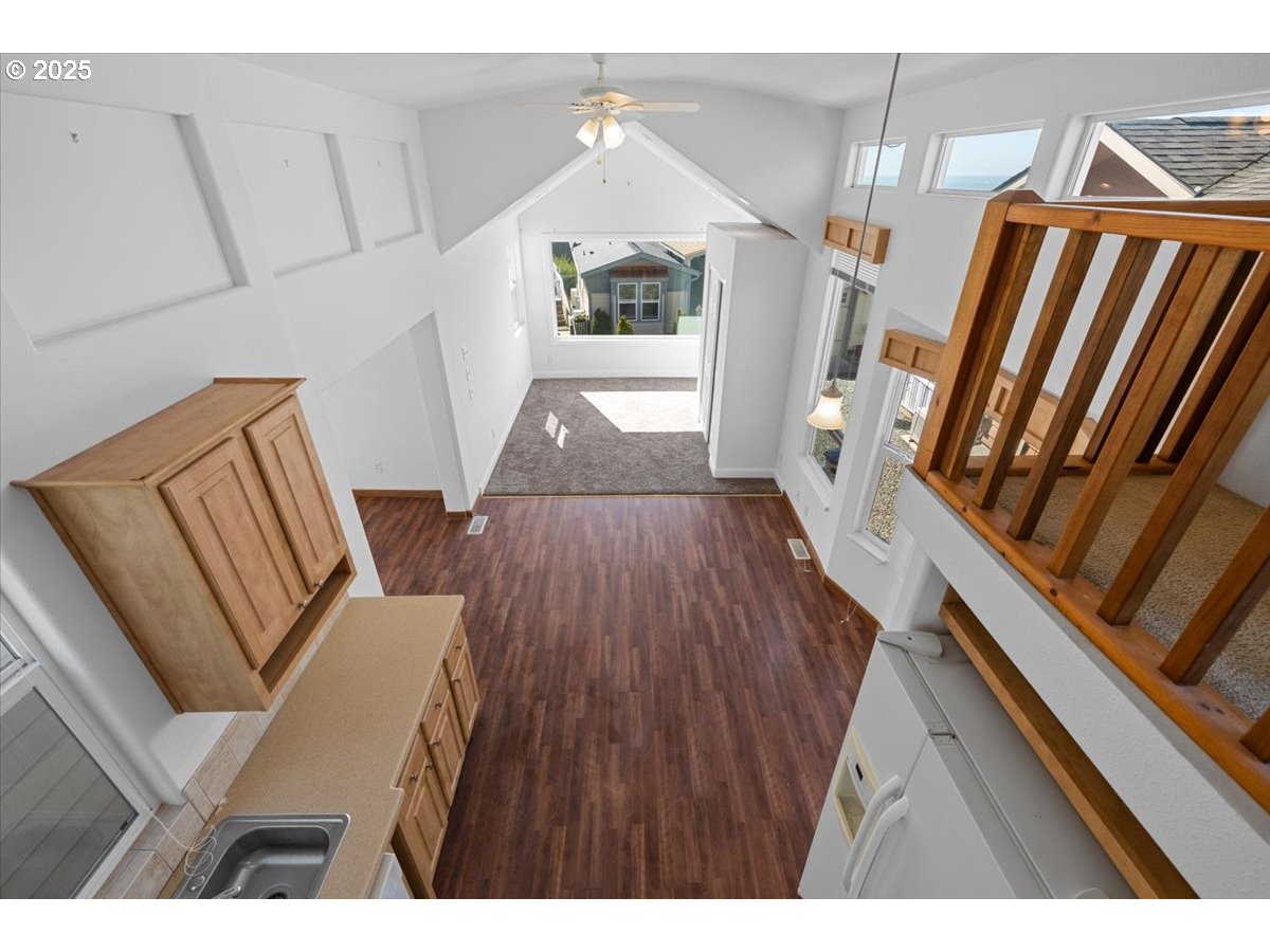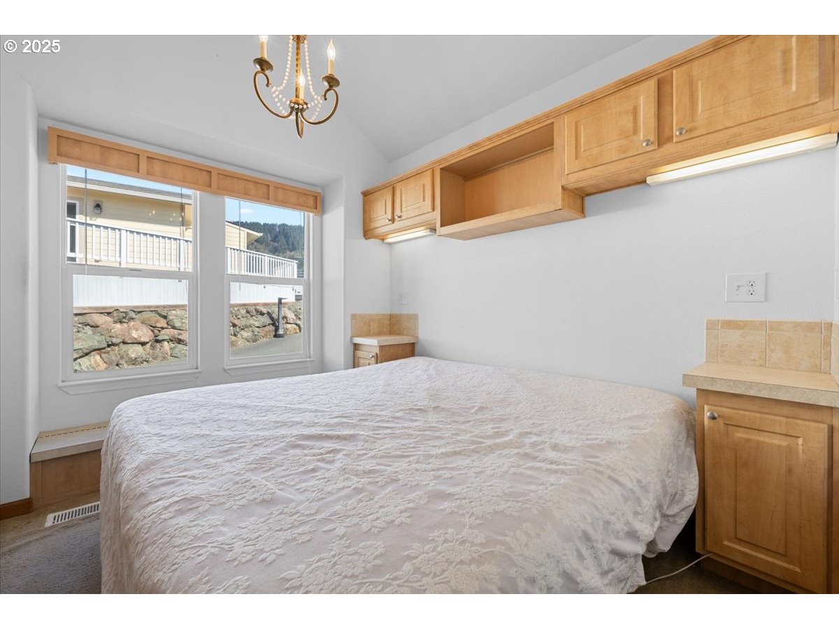 (503) 893-887416252 Tolman Ln #12 is a 789-square-foot manufactured home nestled in a secure gated park perched above Brookings’ coastline. With a brand-new roof, cement siding, fresh exterior paint and double-pane vinyl windows, this home promises years of worry-free living. Vaulted ceilings and large picture windows flood the sunlit living area with natural light and frame sweeping vistas of the Pacific Ocean, the Chetco River estuary and the Port of Brookings. Step out from the family room onto a generous deck to savor morning coffee or evening cocktails as ocean breezes roll in. The open kitchen invites culinary creativity with granite countertops, a gas range, dishwasher, microwave and ample pantry storage. The primary bedroom offers built-in closet organizers for effortless organization, while an upstairs loft provides flexible space for a home office, guest quarters or extra storage. A full bathroom features modern fixtures and easy-care laminate flooring. Residents enjoy the convenience of an attached one-car garage with in-home laundry hookups and a level, no-stairs driveway. The monthly space lease covers water, sewer, trash, road maintenance, common-area upkeep and gated entry. Just minutes from Sporthaven Beach, the Brookings marina, local shops and dining, this turnkey coastal retreat delivers the ultimate Pacific-coast lifestyle.