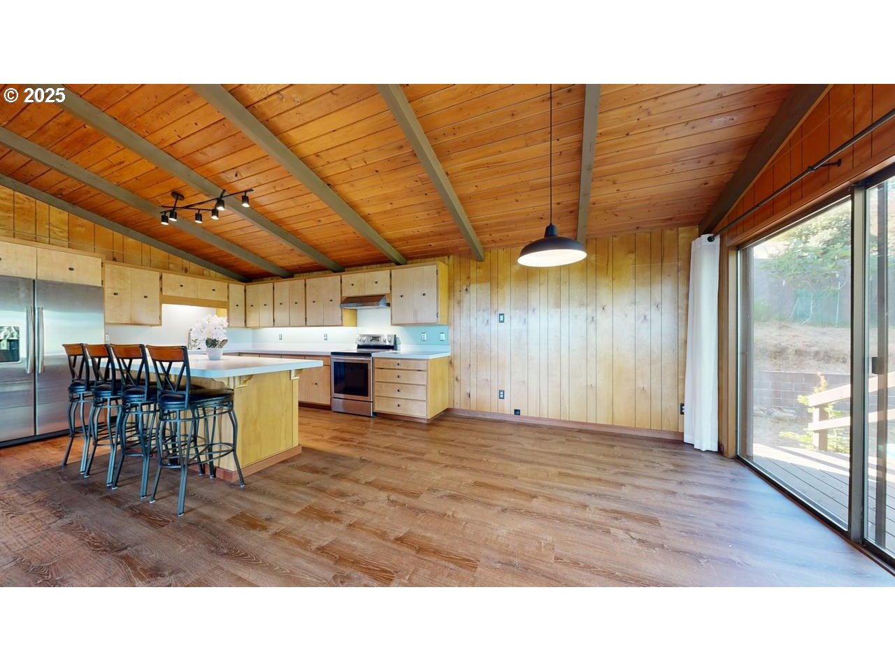 Oceanview Retreat on .73 AcresTucked into a peaceful, park-like setting, this ocean-view cabin-inspired home offers the perfect coastal escape. Surrounded by mature trees and vibrant rhododendrons, you’ll enjoy privacy, tranquility, and sweeping views of the Chetco River, the Port of Brookings, and the Pacific Ocean. This 2-bedroom, 2-bathroom retreat features 1,458 square feet of open-concept living space with luxury vinyl flooring. The great room is warm and inviting, featuring tall vaulted, beamed ceilings, large windows, and a slider that opens to a spacious, wraparound deck. Natural light pours in while framing picture-perfect views in every direction. The kitchen and living areas flow seamlessly, creating a relaxed yet spacious environment ideal for both entertaining and everyday comfort. Both bedrooms offer ocean views, while the primary suite features a private deck for quiet coastal mornings or evenings under the stars. An oversized two-car garage provides plenty of storage, and the property includes space for RV parking. Whether you're looking for a peaceful primary residence or a coastal second home, this one delivers a feeling of retreat and rejuvenation every time you pull into the driveway. Experience the beauty, privacy, and calming presence of this one-of-a-kind property where nature, views, and comfort come together. Your personal paradise awaits. It’s more than a home. It’s a retreat. Come experience what life can feel like when you're surrounded by beauty, calm, and ocean air. Ask to see the Matterport Professional 3D Tour, which covers the inside and outside of this home, and also ask for the floor plan.