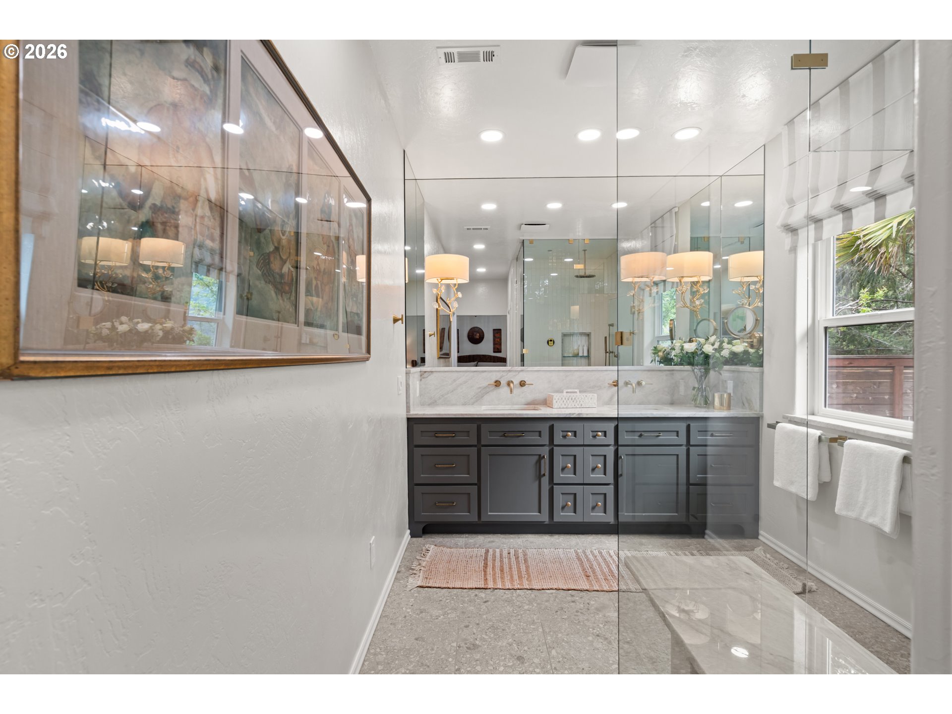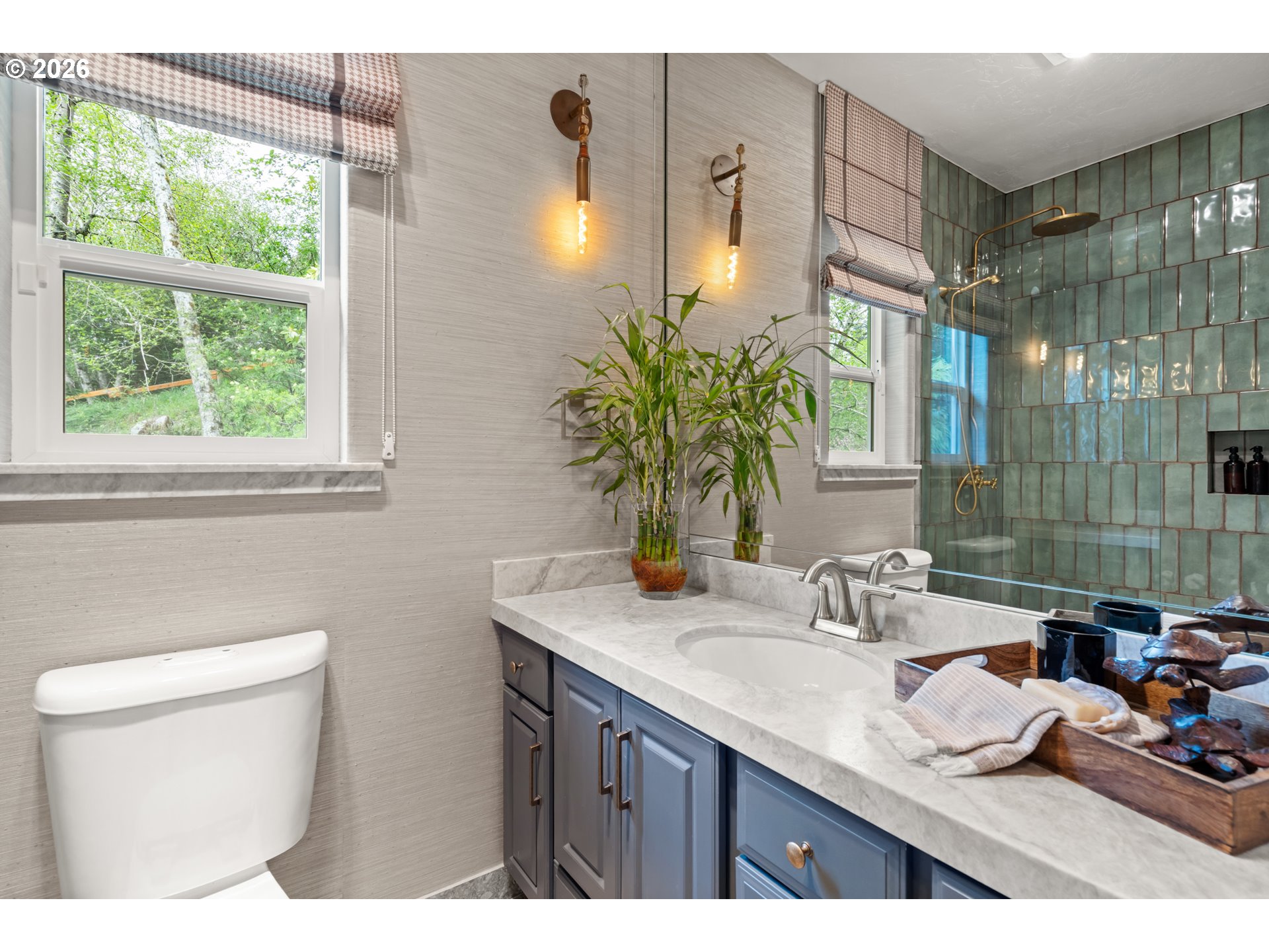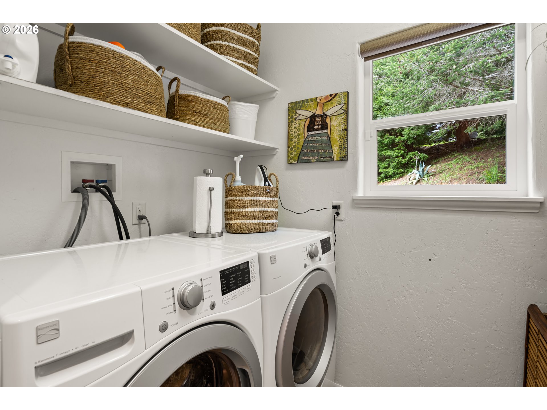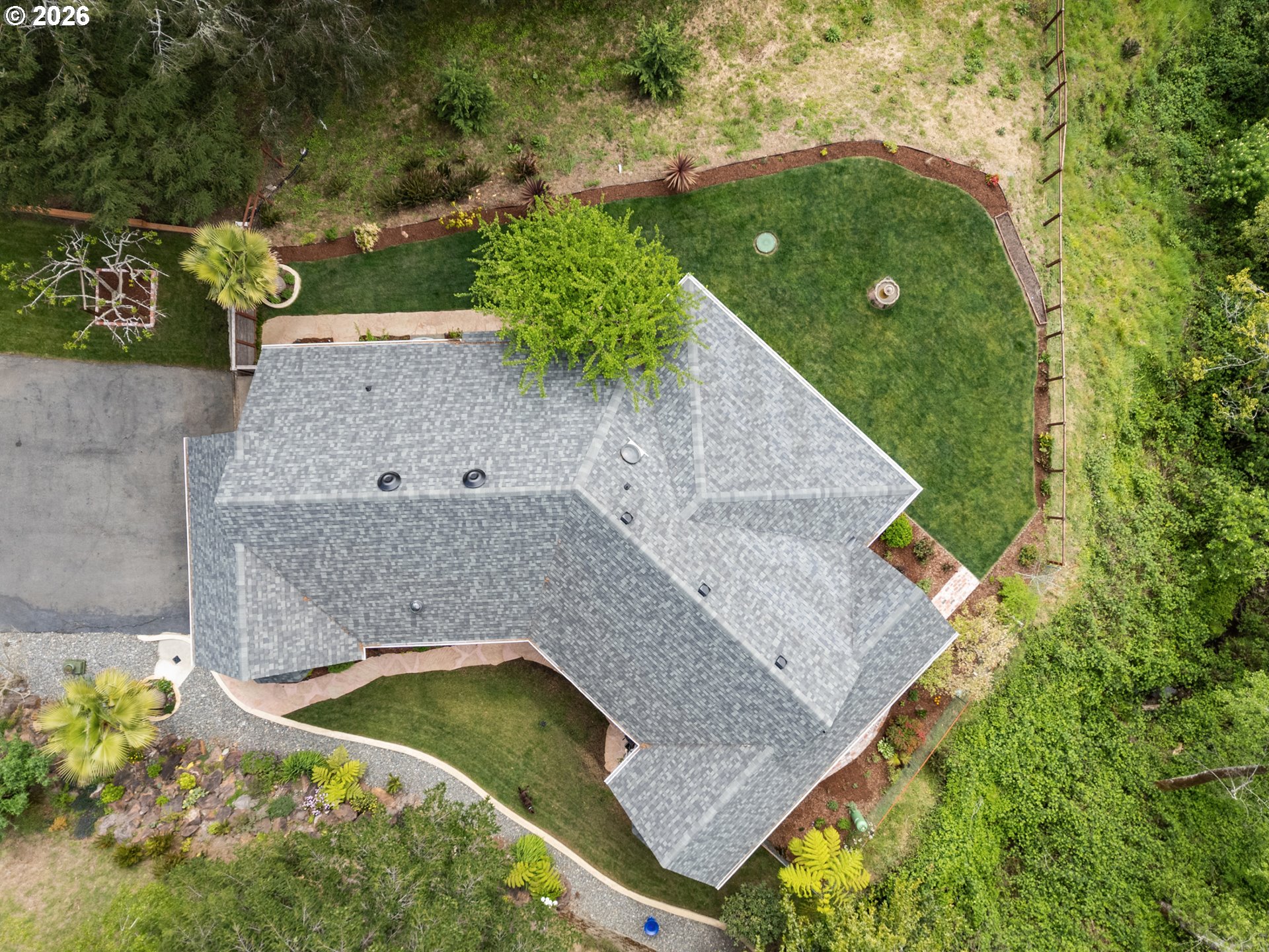 Nestled in one of the area’s most breathtaking settings, just 5 minutes from the city center and 2 minutes to river beaches, this private 1.72-acre retreat offers spectacular mountain, redwood, and valley views. The mostly flat, fully usable land is thoughtfully landscaped with manicured, fenced verdant gardens protected from deer, mature palm trees, travertine flagstone walkways, ambient lighting, and an irrigation system for effortless care. Relax to the soothing sounds of the creek, creating a true sanctuary.The 1,666 sq ft home features 3 bedrooms and 2.5 bathrooms with an open-concept design. A custom-built gourmet kitchen with a large island, Taj Mahal countertops, and stainless steel appliances flows seamlessly into the dining and living areas, centered around a cozy fireplace. Expansive windows fill the home with natural light and frame beautiful garden views.The spacious primary suite offers a spa-inspired bathroom with a custom double vanity surrounded by mirrors with integrated lighting, oversized steam shower with bench, walk-in closet, and private water closet—evoking a luxury resort experience. Guest bedrooms share a beautifully designed shower with handcrafted green tiles, seagrass wallpaper, designer wall sconces, and generous storage.Additional highlights include abundant storage throughout, an oversized 2-car garage, and a climate-controlled attic with potential to be converted into additional living space. A truly one-of-a-kind lifestyle property. For more info, please open the link below.