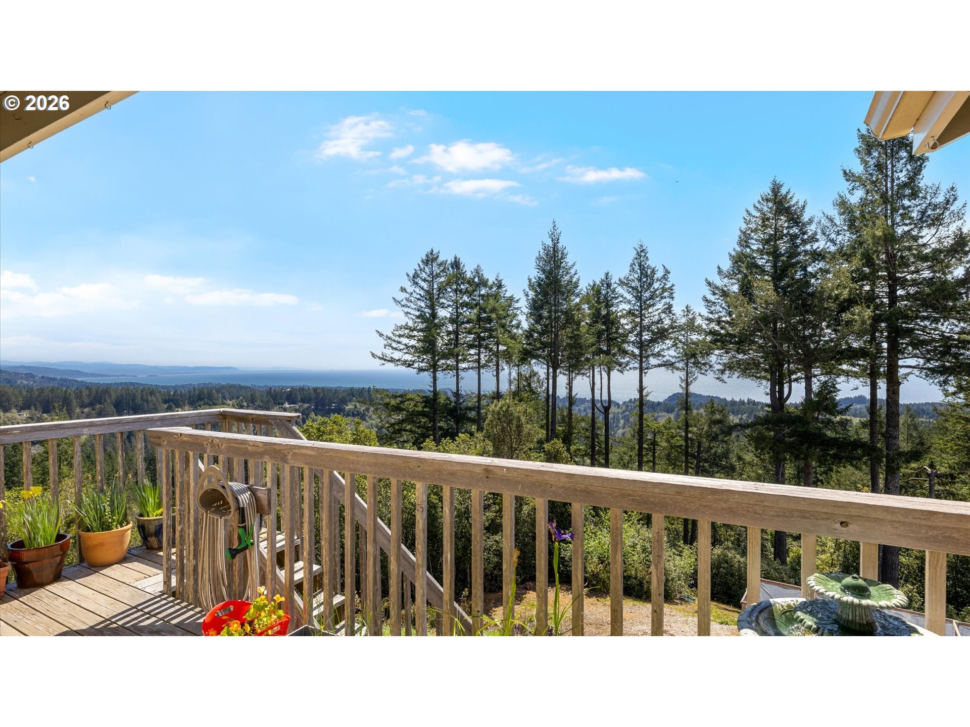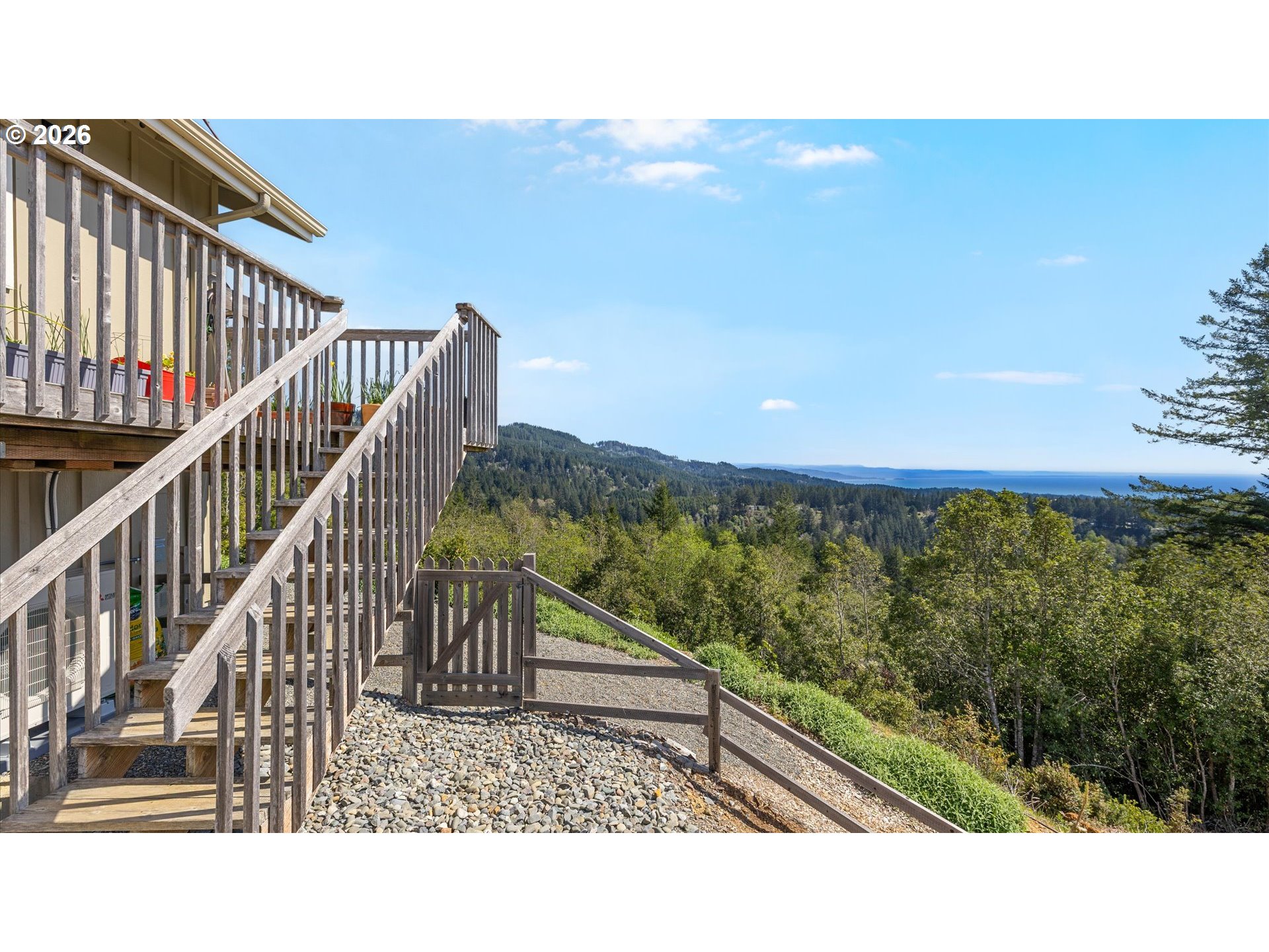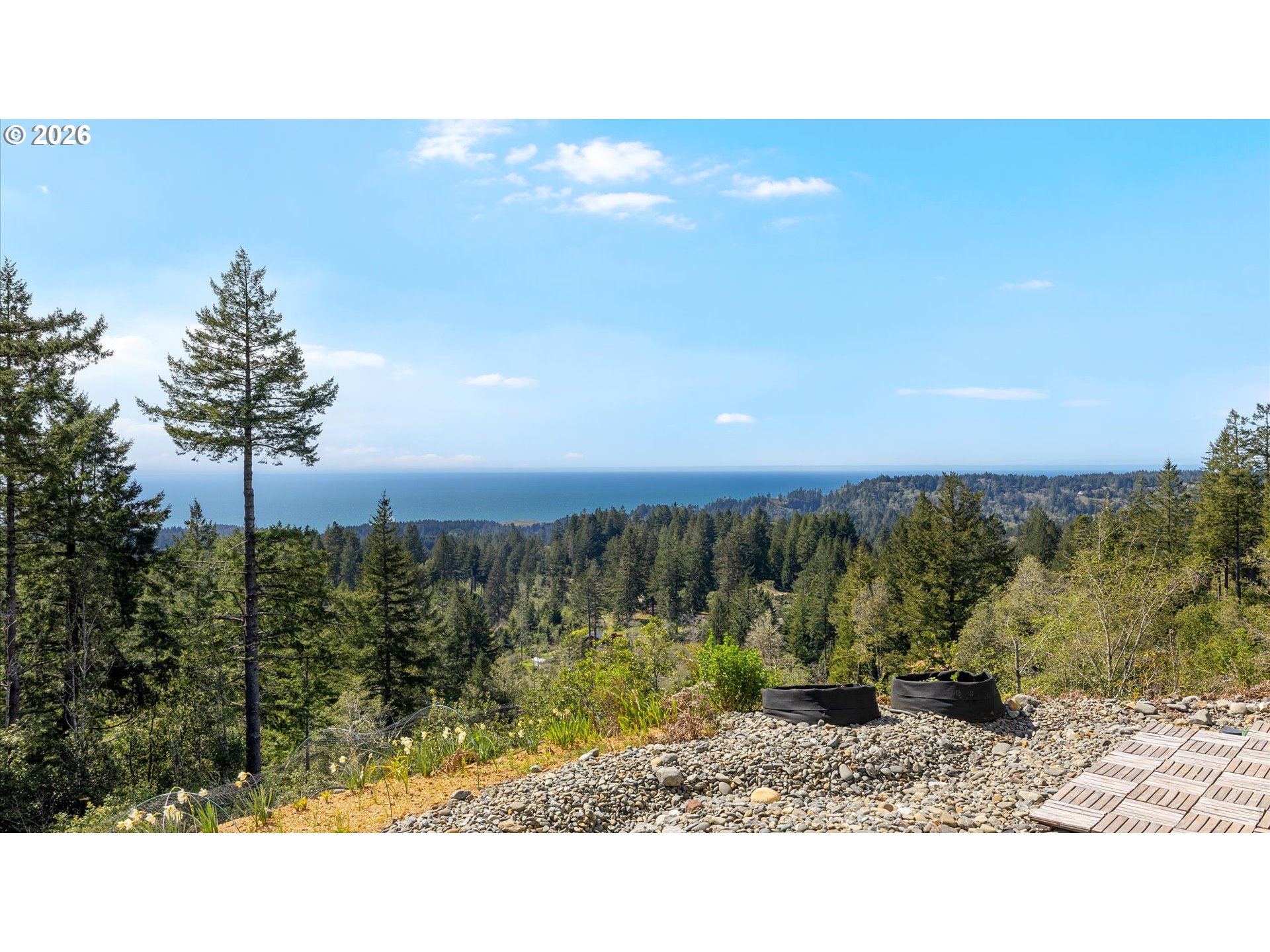 (503) 893-8874Perched upon a knoll to capture spectacular ocean views from nearly every window, this exceptional 2010 Kessler-built home offers privacy, space, and versatility on two tax lots totaling 3.72 acres. A gated entrance welcomes you into a peaceful setting with plenty of elbow room, all while being just minutes from town. The home features 3 bedrooms and 2 bathrooms, thoughtfully designed with comfort and style in mind. The cozy living room with vaulted ceilings and teak hardwood floors, along with the wood-burning stove insert and newer mini-split heating system creates a warm and inviting atmosphere. The spacious kitchen is complete with granite countertops and glass backsplash, ample cabinetry, and all appliances included—perfect for everyday living or entertaining. The primary suite is a true retreat, with 180 degree ocean views, highlighted by coffered ceilings and an en-suite bathroom featuring a double vanity, soaking tub, shower, and walk-in closet. A dedicated laundry area with washer and dryer included adds convenience. A standout feature is the separate downstairs guest quarters studio, offering its own full bathroom, private entrance, and ocean views—ideal for guests, extended living, or rental potential. Additional highlights include a 3-car garage and an extra electrical panel for backup generator power. Storage is abundant with over 700 SF of basement storage space, a 9x27 woodshed, and a 7x7 storage shed. For the gardening enthusiast, you’ll love the 8’x25’ garden area with raised beds, making it perfect for those seeking a more self-sufficient lifestyle. Added bonuses are the drilled well, producing 16 GPM, the AdvanTex septic system, plus the land around the home has been professionally cleared recently for a fire barrier. Enjoy the best of coastal living in a serene country setting, located just 5 miles (9 min) from downtown Brookings and close to the stunning Samuel Boardman Scenic Corridor and some of the most beautiful beaches on the Oregon coast.