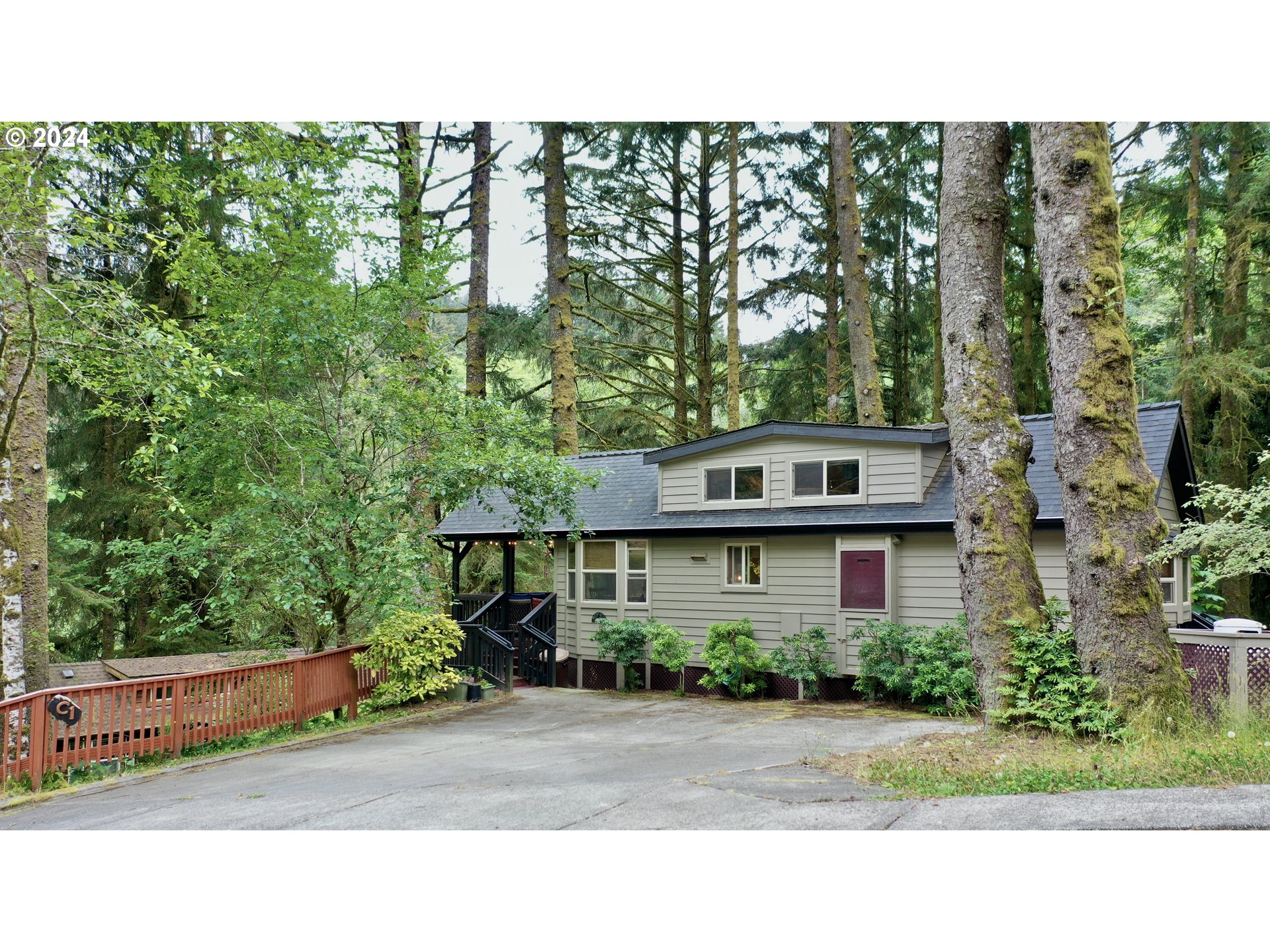 Wooded oasis! With beautiful trees surrounding this cabin, It offers an enchanting environment filled with the sounds of song birds, Waves crashing across the road at Whaleshead Beach, Trees dancing in the wind and sometimes, Nothingness. The large wraparound deck with TREX decking accompanied by Rod Iron railing and TREX handrails makes it easy to relax no matter the season as there is also a covered portion right off of the front sliding glass door which is excellent for outdoor hangouts and grilling, even in the winter! Once you step into this cabin you are immediately welcomed by a generous sized living area that overlooks the lush forest as well as an ample sized kitchen and dining area. The loft offers a great additional space for guests as well as relaxation with its treehouse like setting. The primary bedroom is set up as a suite with a sink that looks straight into the trees rather than a mirror. On top of having storage and a closet, There is also a sliding glass door that leads out to the wraparound deck from this bedroom. Appliances are included and some furnishings, too. Features and upgrades include Leaf gutters & downspouts, New roof, New exterior and interior paint, New front door and slider in the bedroom, On demand hot water as well as a large driveway for parking multiple vehicle. Not to mention it is just across the road from Whaleshead Beach, Close to local hiking trails and Viewpoints. Rivers, Mountains and the Pacific Ocean are all at your fingertips in beautiful Brookings, OR. Land is leased through Whaleshead Beach Resort and Cabins can be in the rental pool if you desire. Come see the beauty in person!
