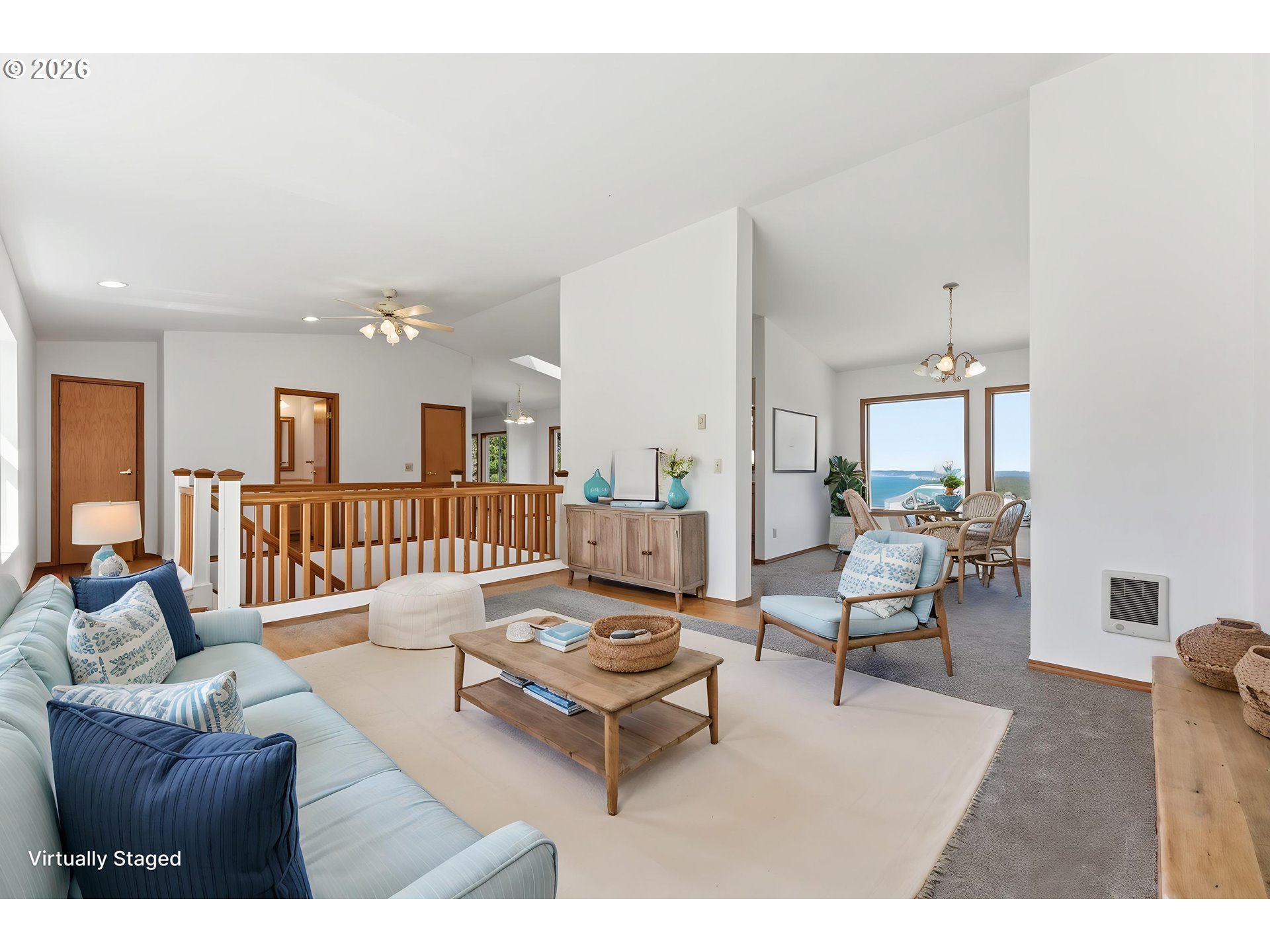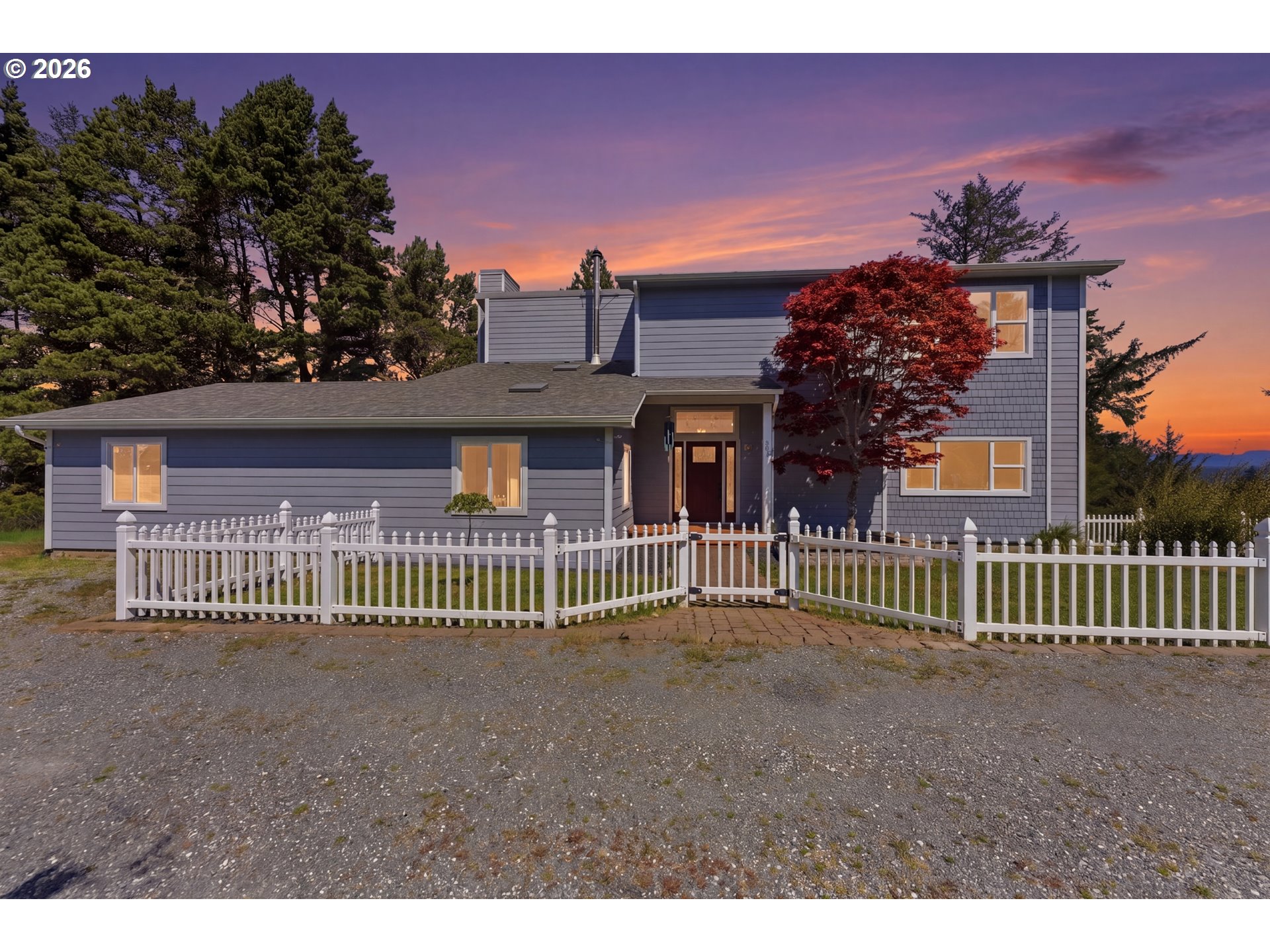 Perched in a Prime Port Orford location, this beautifully maintained 2,600 sq ft home offers sweeping, unobstructed Pacific Ocean and Garrison Lake views that truly set it apart. Built in 1994 and situated on a generous .23 ac lot, this 3 bedroom, 2 1/2 bath residence combines comfort, space and coastal charm. Just one block from the iconic Headlands State Park - home of the Historic Coast Guard Museum - you will enjoy easy access to scenic trails, breathtaking viewpoints and the natural beauty that defines Oregon’s Southern Coast.The Upper Level is designed to capture the views, featuring a formal dining room, inviting sitting area with ocean vistas, a spacious kitchen with pantry and a bright living room anchored by an electric fireplace. Recent updates include fresh paint and new carpet, making the home move-in ready. A deeded view easement helps preserve the stunning outlook for years to come. The property also includes an attached two-car garage and a versatile separate office or guest quarters complete with a cozy wood-burning fireplace - perfect for remote work, hosting visitors or creating a private retreat! Schedule your Showing Today!