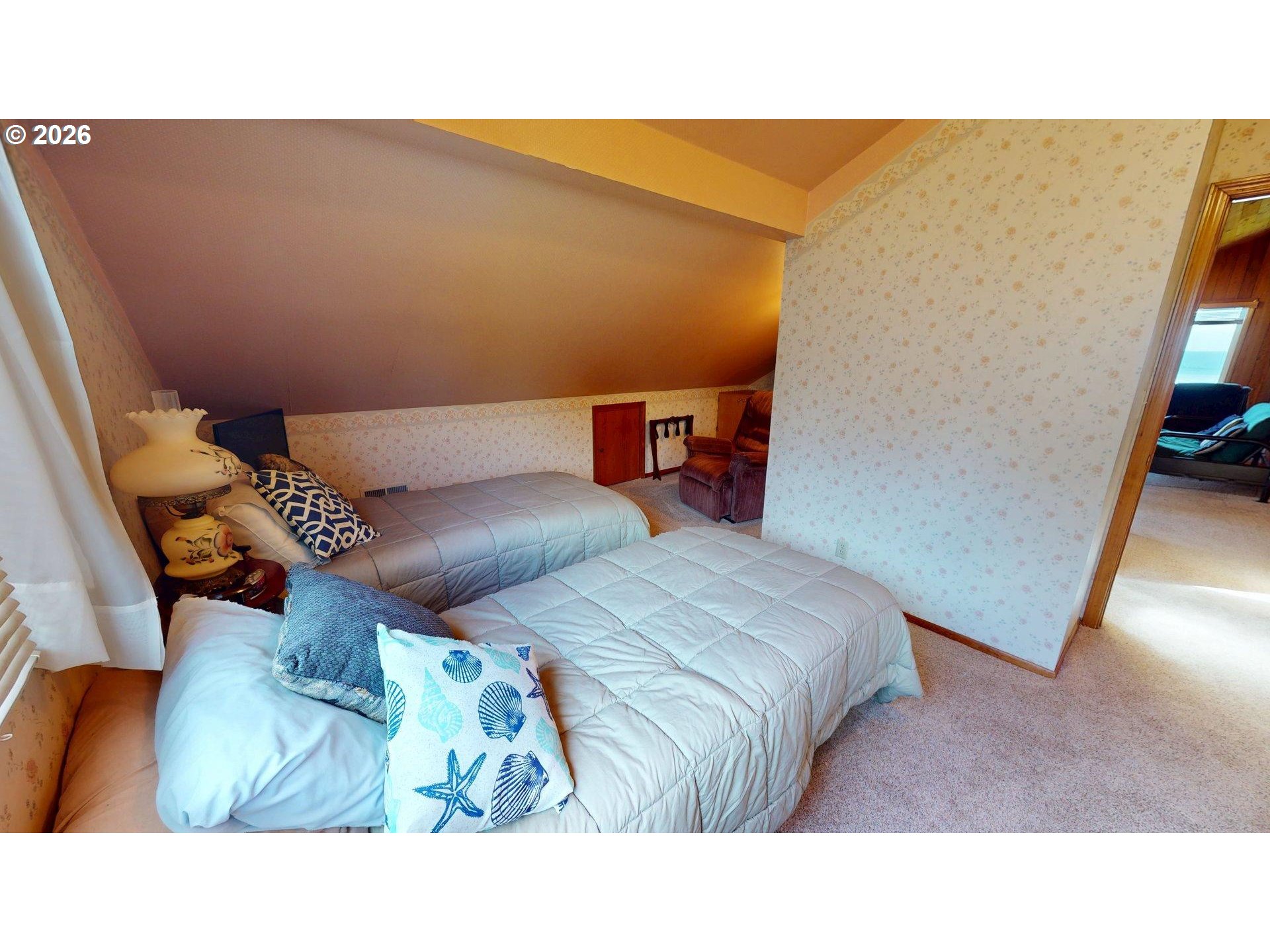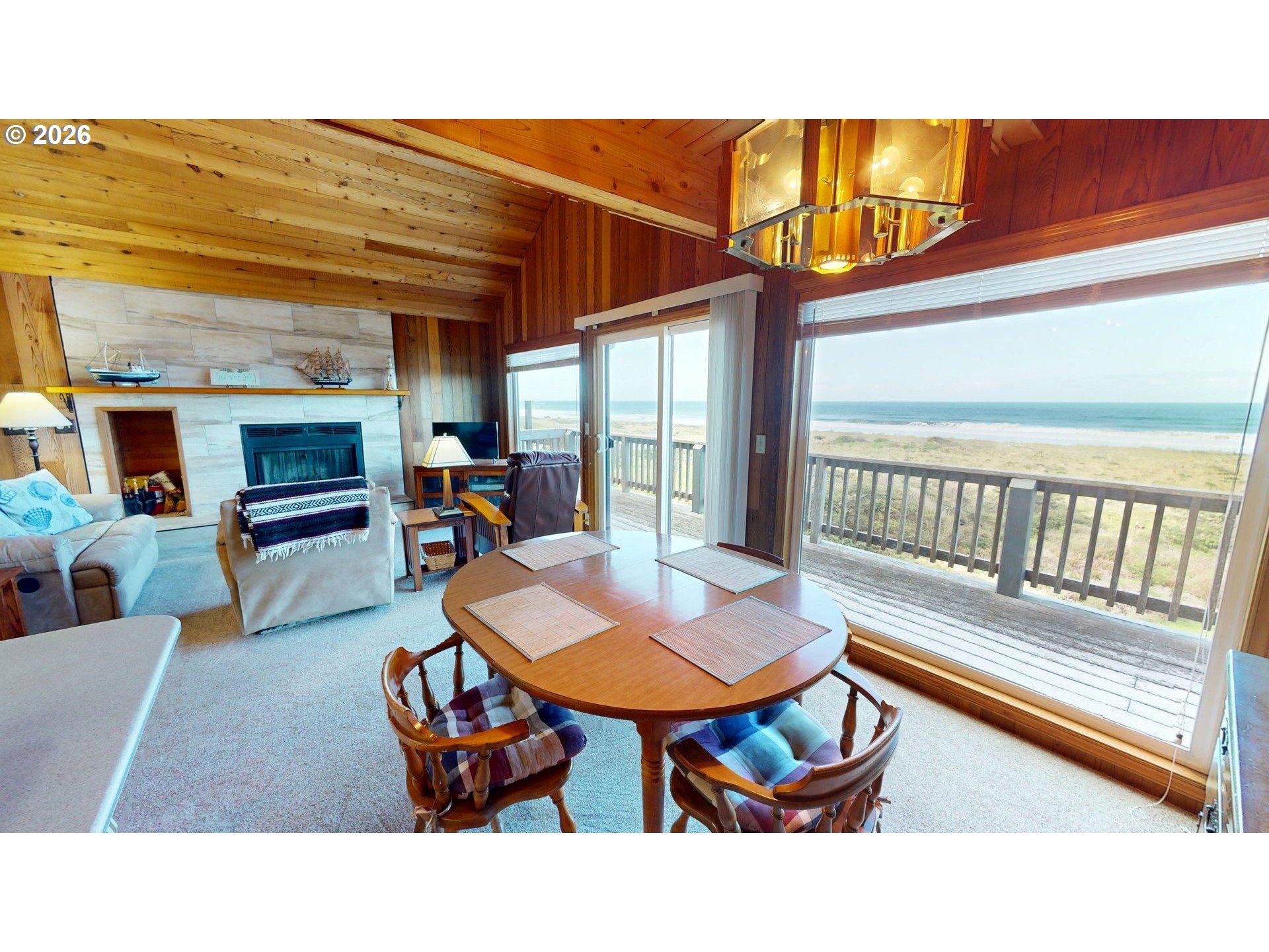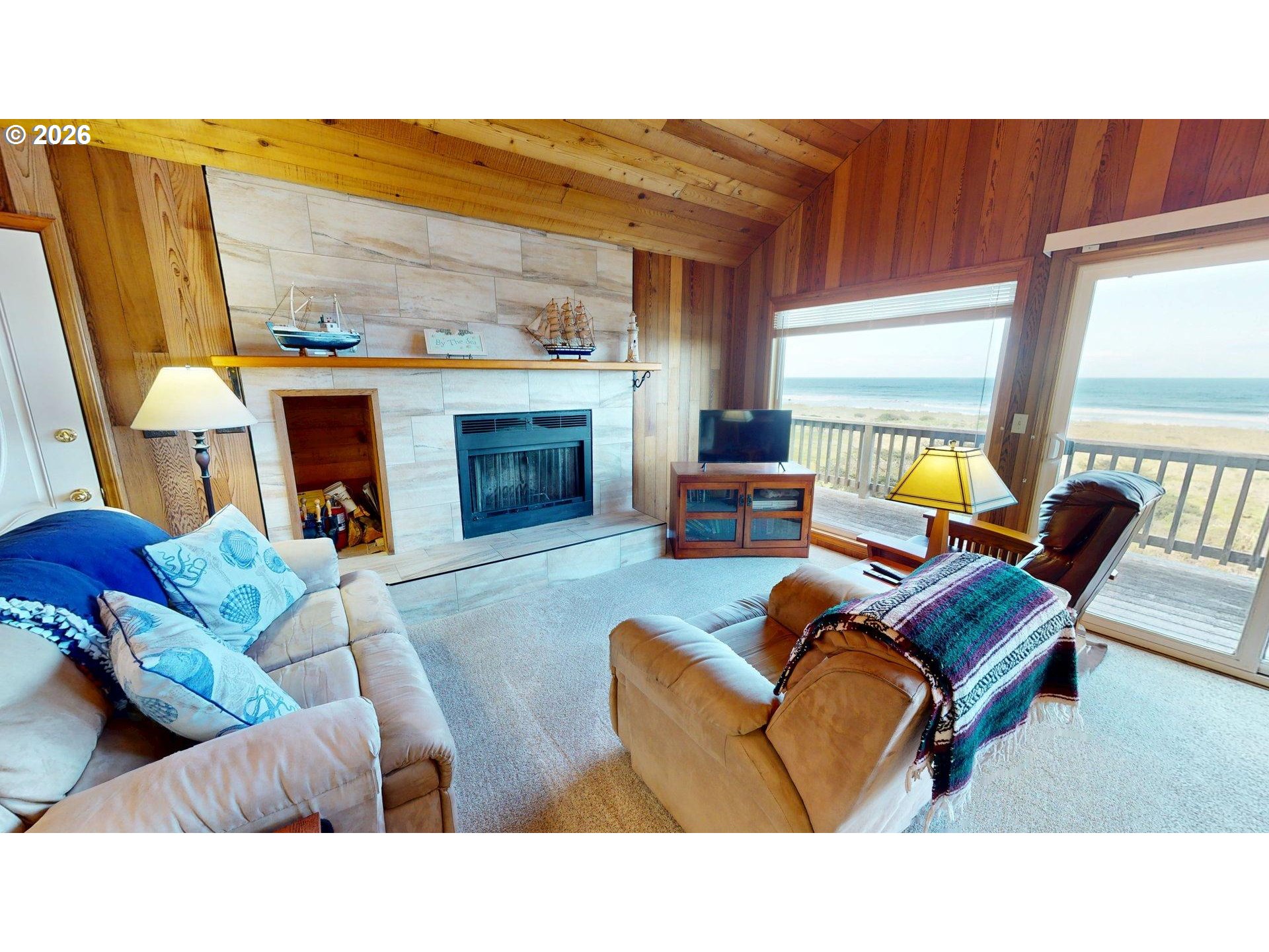 Welcome to your Coastal Paradise! Oceanview Condo with Rogue River Jetty Views – Coastal Living at Its Finest!Welcome to your coastal paradise! This beautifully updated 2BD/2BA upper-level condo offers breathtaking views of the Pacific Ocean and the Rogue River jetty from both the main level and loft—an exceptional vantage point for enjoying the best of the Southern Oregon coast.Step inside through the newer decorative front door and experience a light-filled living space with vaulted ceilings, original wood accents, and a cozy wood-burning fireplace with stunning stone surround. New upgraded Shaw nylon carpeting runs throughout, enhancing comfort and warmth.The kitchen has been refreshed with new ceiling lens panels for added brightness and features a GE range, while additional updates include a Rheem water heater, dual water-conserving toilets, upgraded tile flooring in both bathrooms, and ocean-facing windows with blinds. Durable Hardieboard exterior siding adds long-term peace of mind.The loft provides incredible flexibility and unforgettable views—perfect for relaxing, watching the tides roll in, or spotting whales along the coastline. Guests will appreciate the private upper-level bedroom and bath, along with abundant storage.Step outside to the wraparound deck and take in sweeping ocean, jetty, and wildlife views—deer, sea lions, and whales are frequent visitors. Enjoy spectacular sunsets and the peaceful rhythm of coastal living.Additional features include a detached garage, storage room, and two extra parking spaces for added convenience.Opportunities like this—combining views, updates, and location—are rare. Don’t miss your chance to own a truly special piece of the coast!