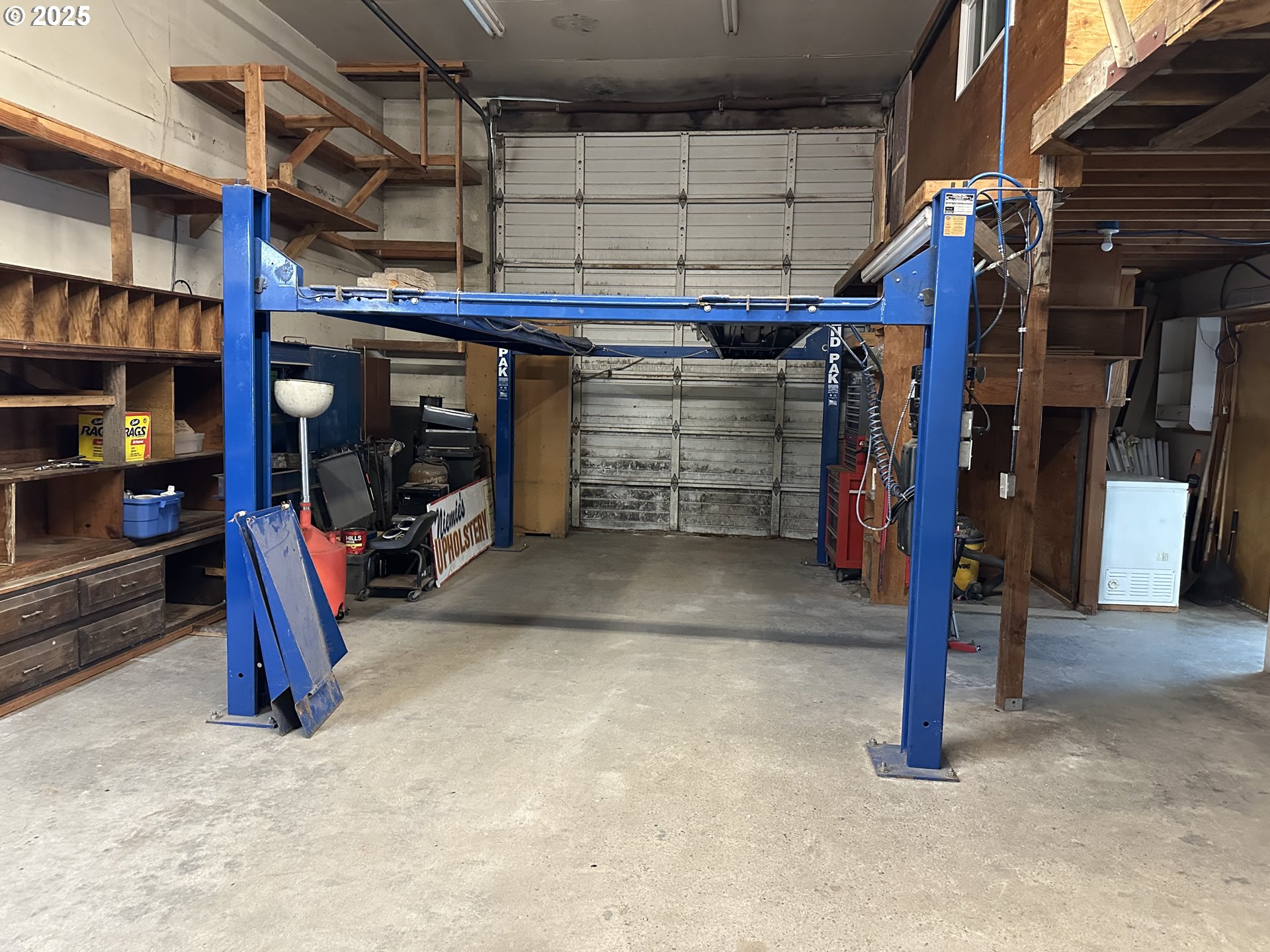 Unique Investment Opportunity – Versatile Industrial Property with multi-functional industrial property with residential and commercial potential. Ground level apartment, with living room, kitchen with appliances, storage, full bathroom, with tub/shower and laundry area. Upstairs features: 2 spacious bedrooms. Open loft area between the bedrooms – perfect for office or additional living space. Commercial/Industrial Space: Large 1225 sq ft area with vehicle lift ideal for automotive work, storage. Two smaller drive-thru units can easily be converted into individual units by adding interior walls for increased rental flexibility. This property includes 5 other storage units. An expansive central space previously used for an upholstery business. Second level above previous upholstery shop features unfinished rooms with built-in shelving – great potential for office or storage expansion. Ample parking space available for tenants, clients, or equipment. This property is perfect for entrepreneurs, investors, or anyone seeking a live/work opportunity with long-term upside. Sellers operated an upholstery and an automotive shop for over 40+ years. Buyers to do their own due diligence.