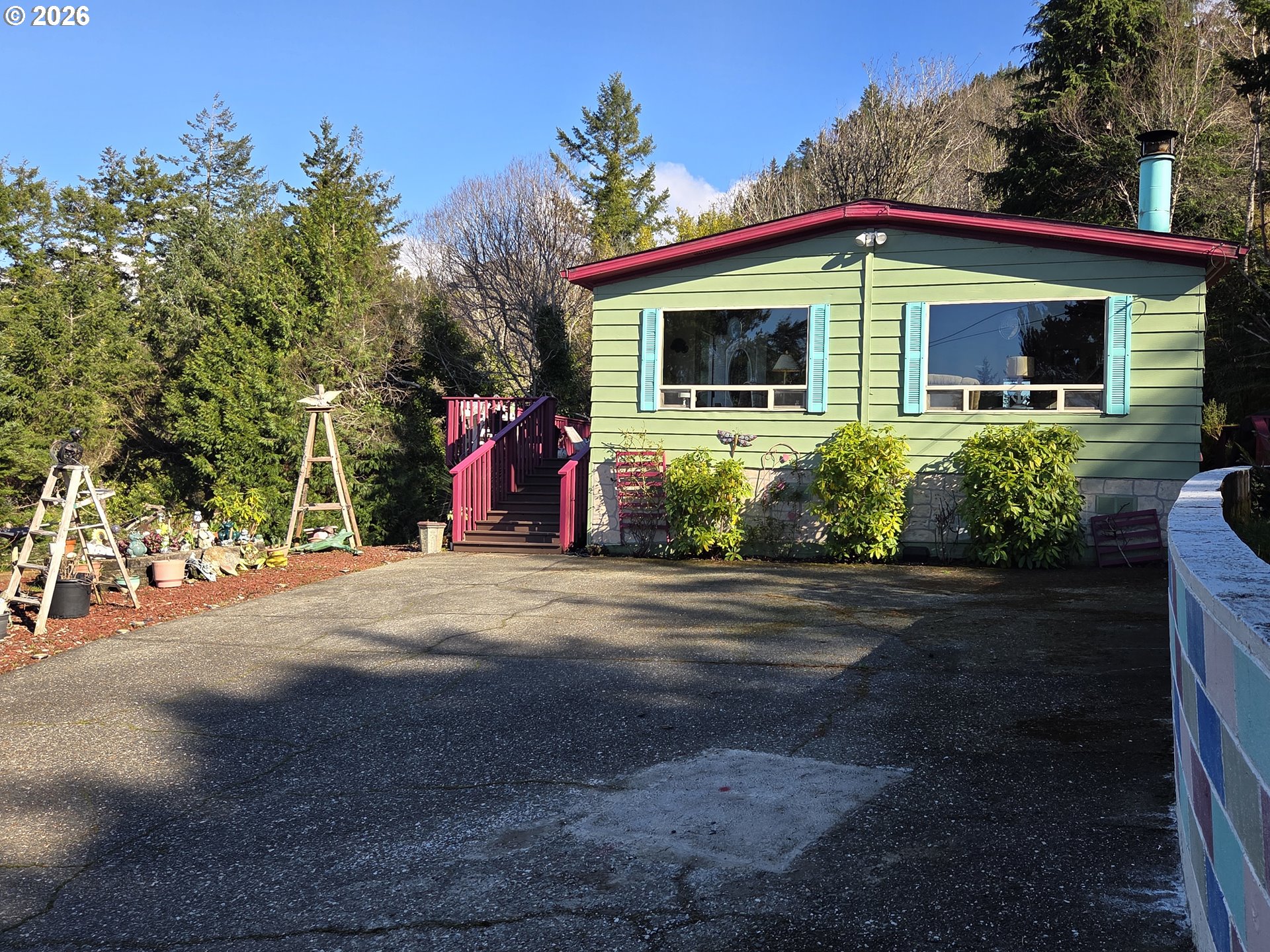 The cutest single level home with a river and mountain view plus some elbow room! This sunny 3BR/2BA home, nestled on over an acre has a spacious deck perfect for taking in the panoramic views of the Rogue River and surrounding mountains. Thoughtfully maintained and updated with waterproof laminate flooring, vaulted ceilings, energy efficient dual vinyl windows, a heat pump and a cozy fireplace. The detached garage is equally well kept. Outside lush flowerbeds, gardens, fruit trees and a grassy lawn create a beautiful space to relax and savor the natural scenery. Home is available mostly furnished. Sold as-is.