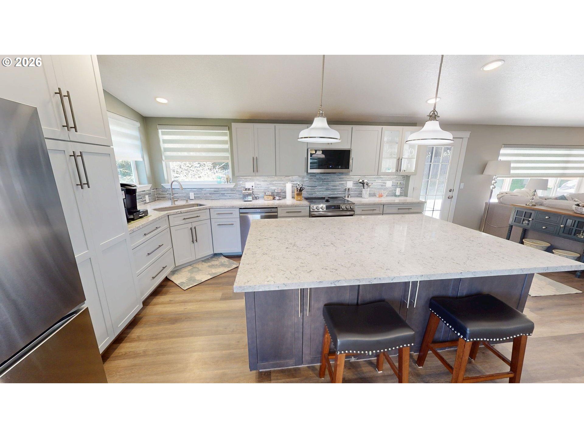(503) 893-8874Tucked into a peaceful setting with serene forested and ocean views, this beautifully upgraded residence offers the perfect balance of refined design, modern comfort, and flexible living.The 3-bedroom, 2-bath main home has been thoughtfully enhanced with an impressive list of upgrades, beginning with the showstopping gourmet kitchen. Anchored by an oversized quartz island designed for gathering and entertaining, the space features all-new stainless-steel appliances, including a sleek induction cooktop stove and a convenient beverage cooler. Vaulted ceilings soar above the main living areas, where luxury vinyl plank flooring and stylish new lighting create a bright, contemporary atmosphere.The private primary suite serves as a tranquil retreat, complete with dual sinks, a deep soaking tub, a spacious step-in shower, and abundant storage. The guest bath has also been beautifully refreshed, featuring a shower/tub combination designed for comfort and convenience.Step outside and discover a backyard built for entertaining. A stunning 16' x 40' deck crafted from Port Orford Cedar stretches across the fully fenced yard, offering ample space for gatherings, outdoor dining, or simply unwinding while enjoying the peaceful forest backdrop.Adding even more versatility, the separate lower-level guest quarters provide an ideal setup for extended family, guests, or potential rental income. This private space includes laminate flooring, a full kitchen, a generous living room, one bedroom, and a full bath, with furnishings negotiable outside of escrow—making it a turnkey opportunity. Completing the property is an oversized two-car garage, along with abundant off-street parking that easily accommodates an RV and multiple vehicles. Thoughtfully updated and designed for both everyday living and memorable gatherings, this property delivers style, space, and exceptional flexibility in a tranquil natural setting.