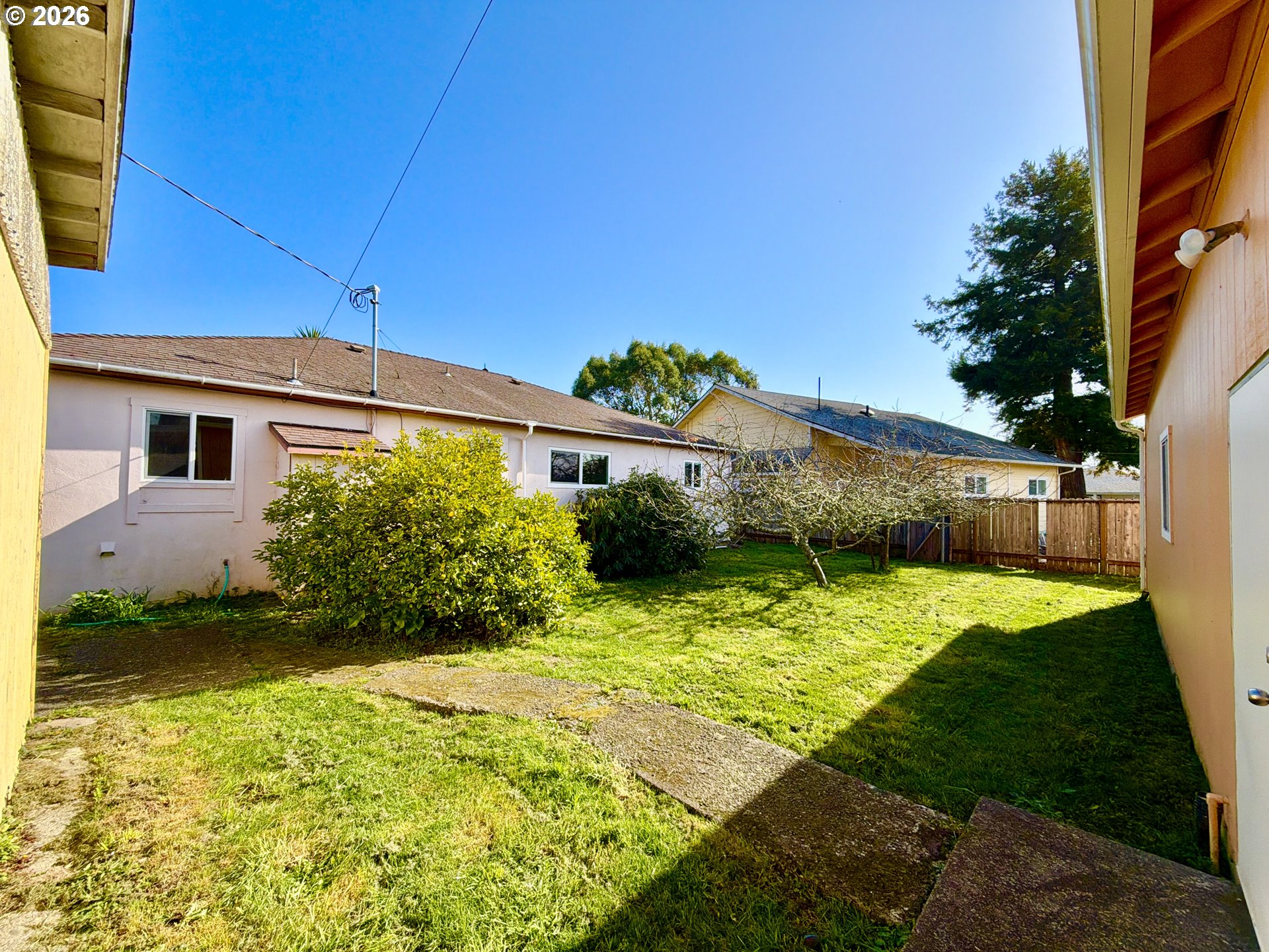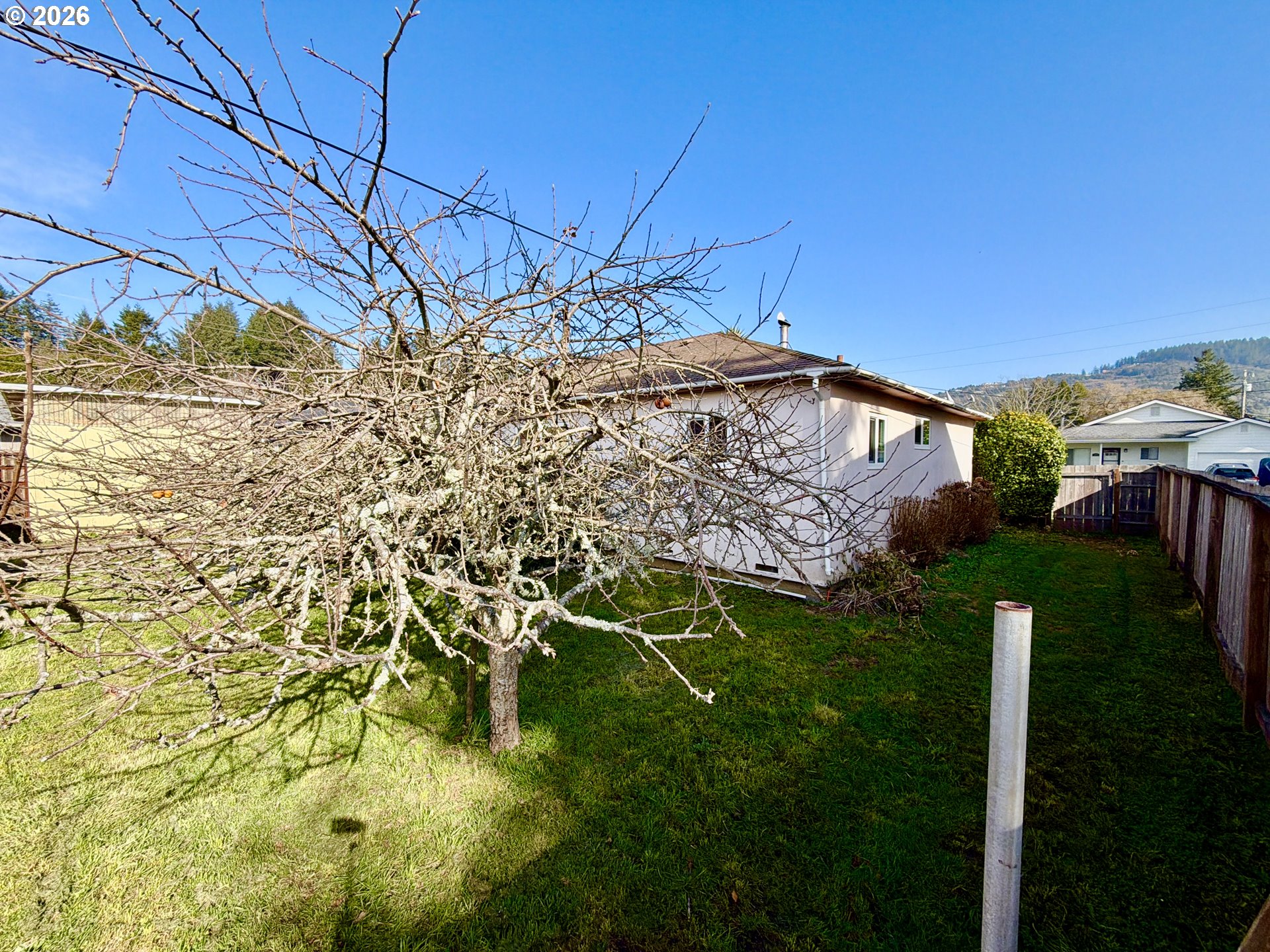 Welcome to this charming 3-bedroom, 1-bath home offering 1,362 square feet of comfortable living space. This property features high-end wood cabinets in the kitchen, 8-foot ceilings, a cozy wood stove, a walk-in shower, a spacious laundry room, and pantry. Dual vinyl windows throughout provide excellent natural light and energy efficiency.Outside, you will find several mature fruit trees, including a lemon tree, and a massive 864-square-foot detached garage that is perfect for a workshop or additional storage.Additionally, the property is zoned for potential vacation rental use, though buyers should perform their own due diligence with the city regarding specific requirements