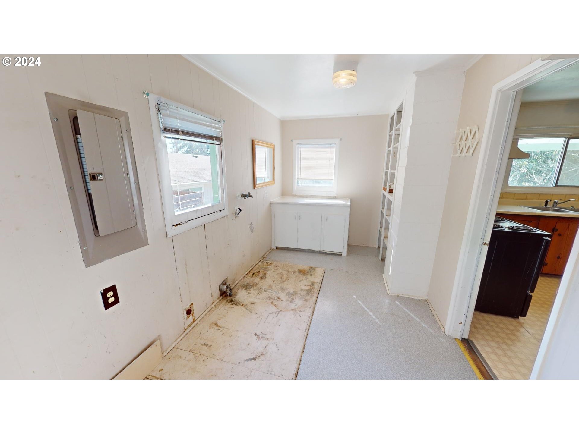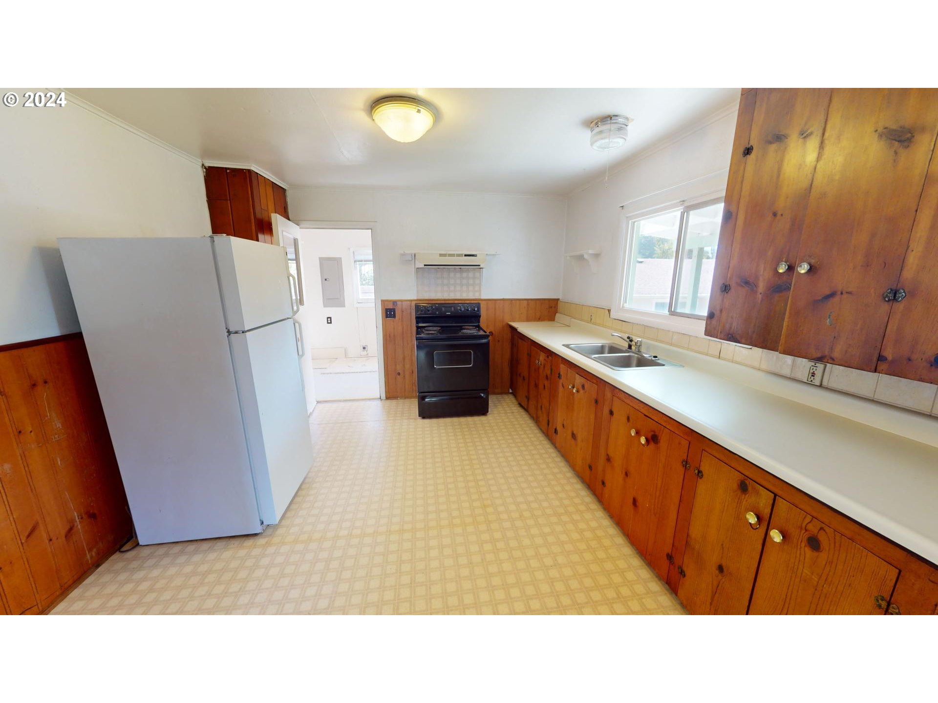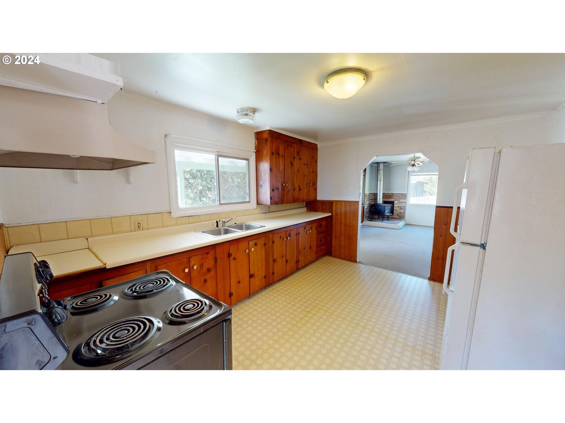 This cozy 2BR/1BA home is brimming with potential! Nestled on a generously sized lot, it offers endless possibilities—update it to your liking or embrace the charming 1947 details. The home features a country pine kitchen complete with appliances, a welcoming living room with a toasty woodstove, and a bathroom with a shower/tub combo. The spacious yard is perfect for gardening or relaxing, and the private backyard provides a peaceful retreat. A convenient carport behind the home keeps you covered from the weather as you go from car to backdoor. The property is being sold as-is and will need some TLC, including deck repairs, some fascia rot, and minor sheetrock touch-ups in the bathroom. Located in a well-maintained neighborhood, there's even potential to replace the existing home with a new build if desired. Come see the possibilities and