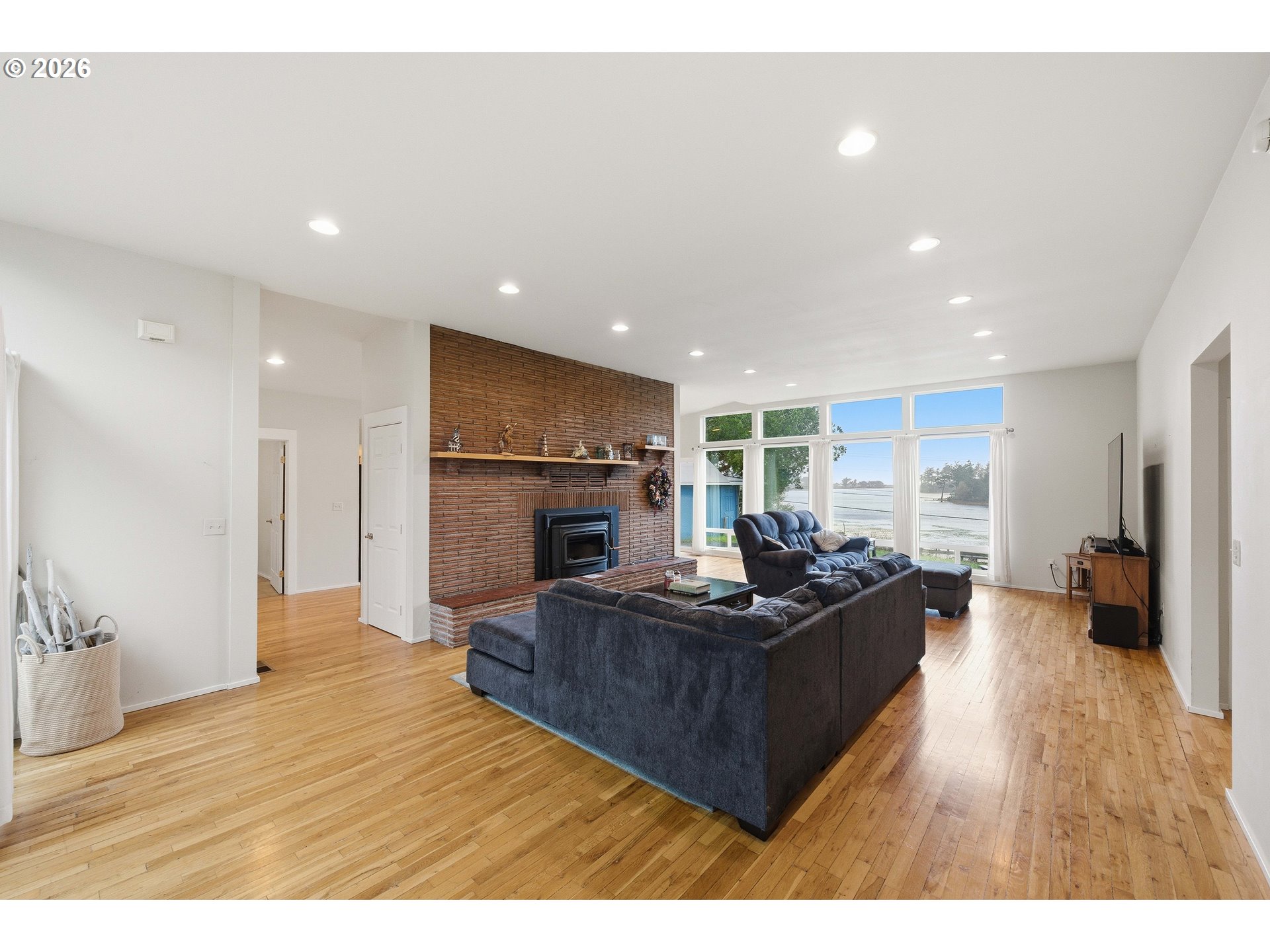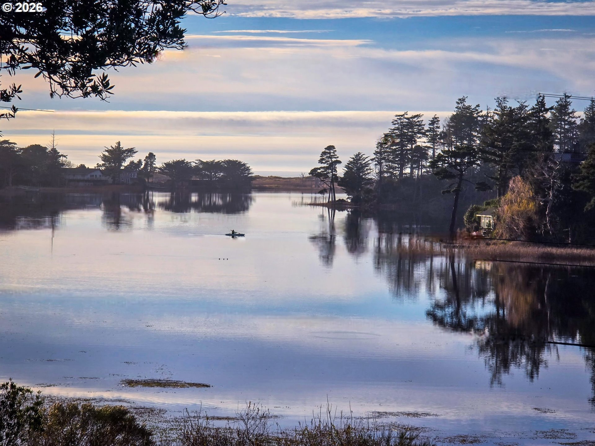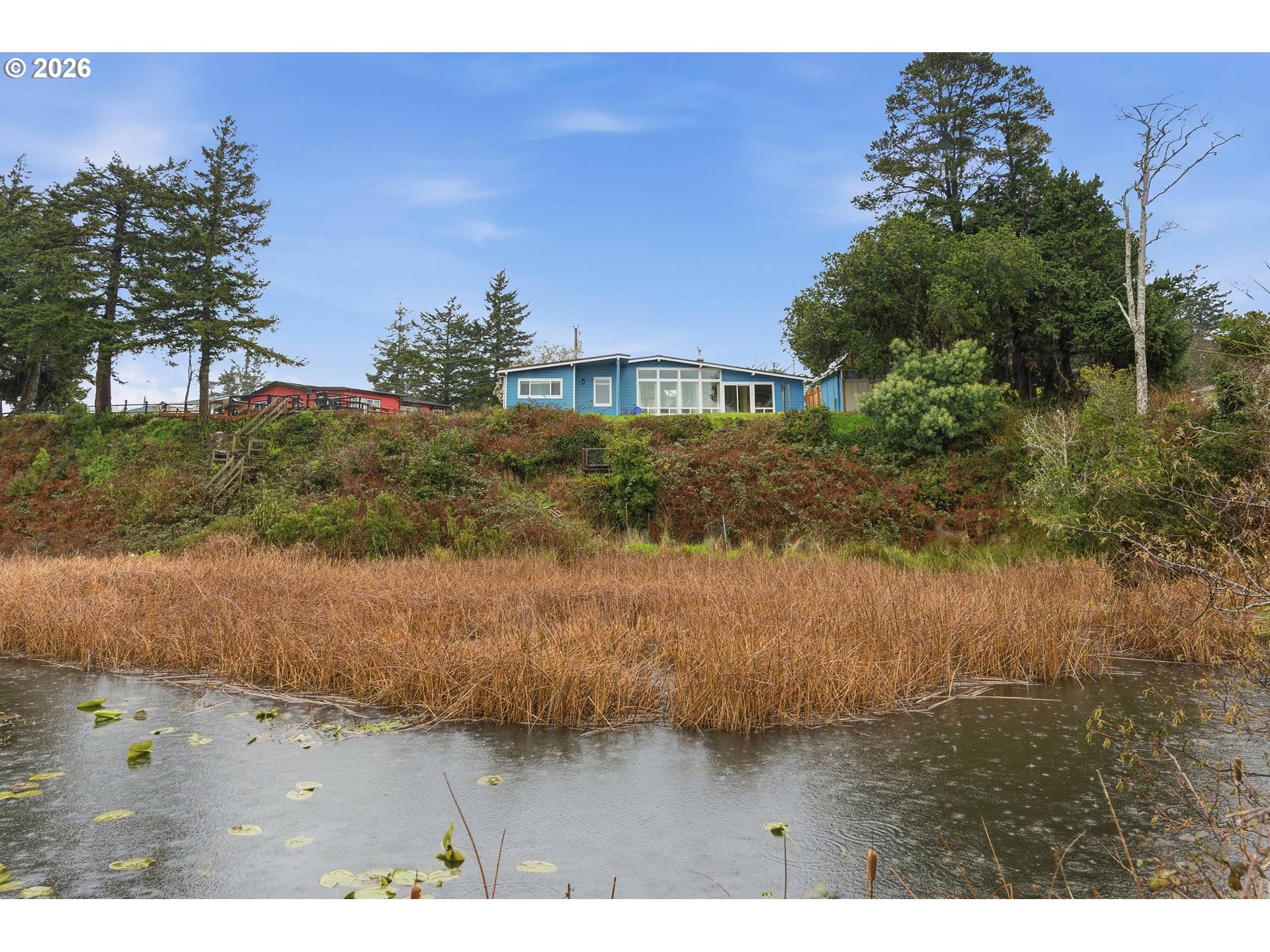 Port Orford, Oregon | Garrison Lake + Pacific Ocean views. Perched on a bluff above Garrison Lake with a deep sightline out toward the Pacific Ocean, this remodeled, single-level home is all about the view—especially at sunset. A wall of west-facing windows frames the water from the main living area, while additional windows on the opposite side keep the home naturally bright throughout the day. The living space features high ceilings, hardwood floors, and a striking masonry fireplace with a new Blaze King wood-stove insert for cozy coastal evenings. The modern kitchen offers updated cabinetry and a functional layout, and the views carry through to the primary bedroom and bath. Outside, enjoy a patio/deck overlooking the lake, plus Port Orford cedar privacy fencing front and back. Recent improvements include exterior paint, updated lighting, a newer Samsung oven, and Samsung washer. Previously operated as a vacation rental (buyer to verify intended use). Minutes to Battle Rock Park, the Port of Port Orford (marina/docks), Port Orford Heads State Park, Cape Blanco State Park & Lighthouse, and Humbug Mountain State Park—plus beaches, trails, dining, and medical clinics nearby.