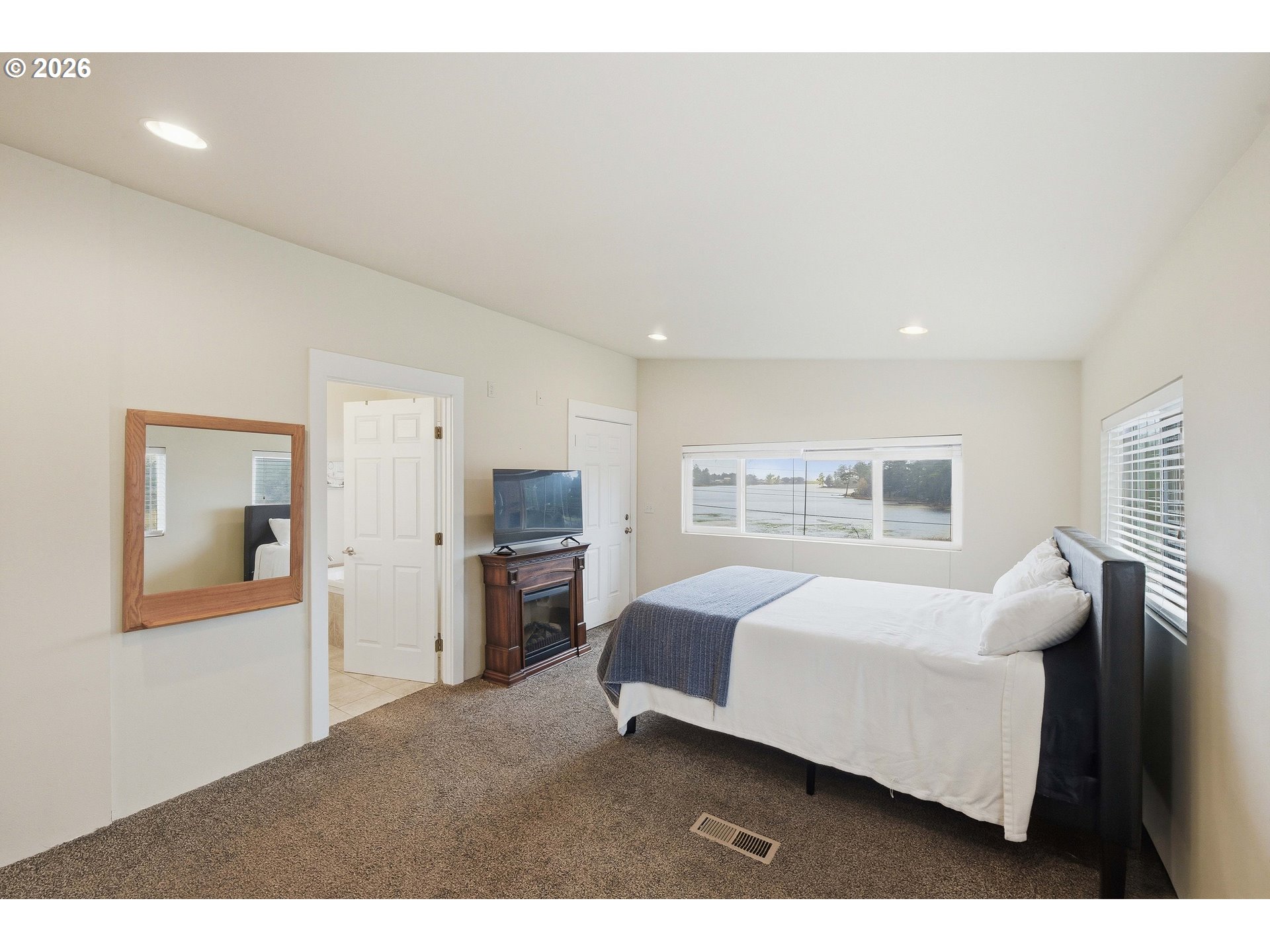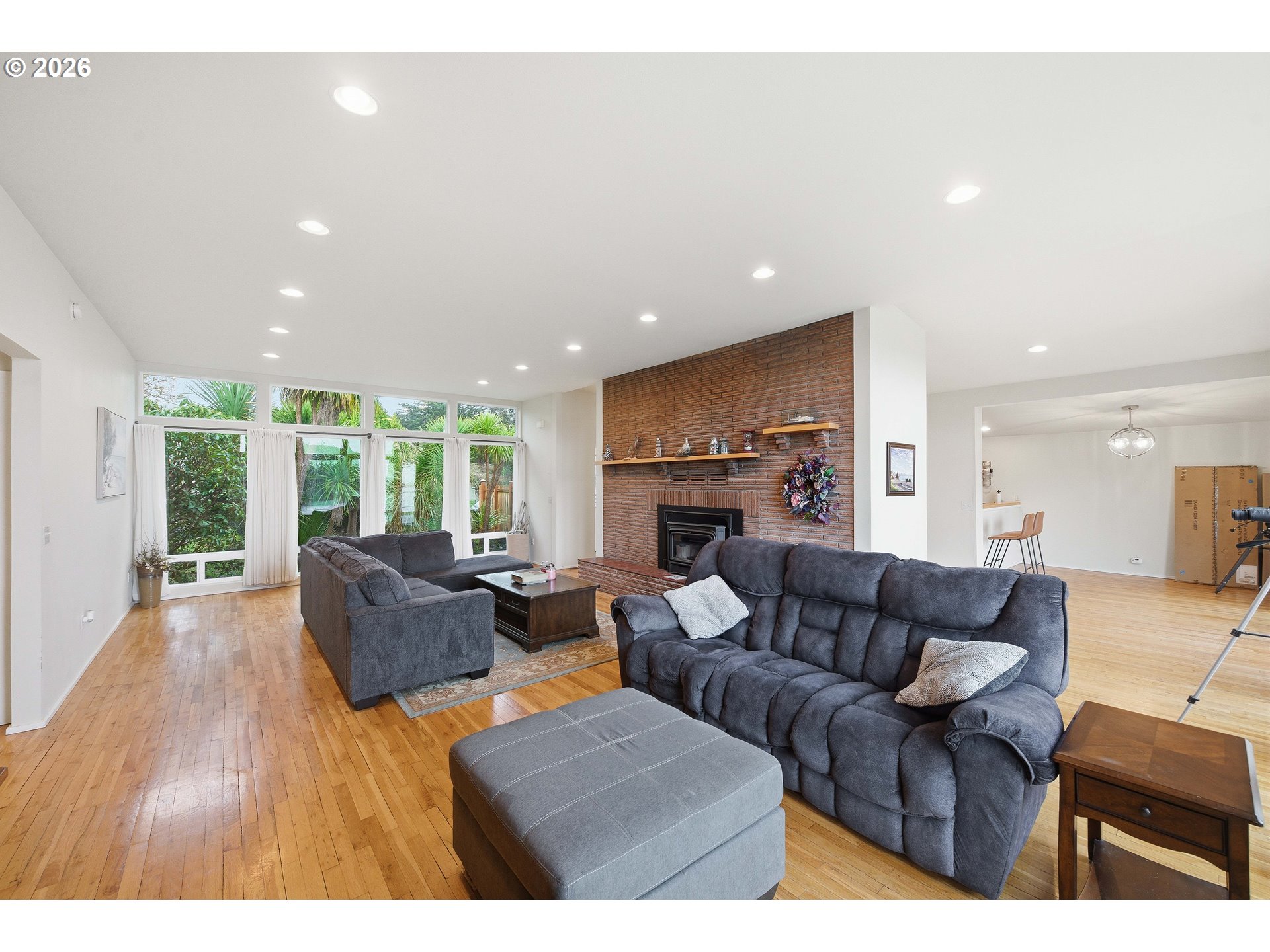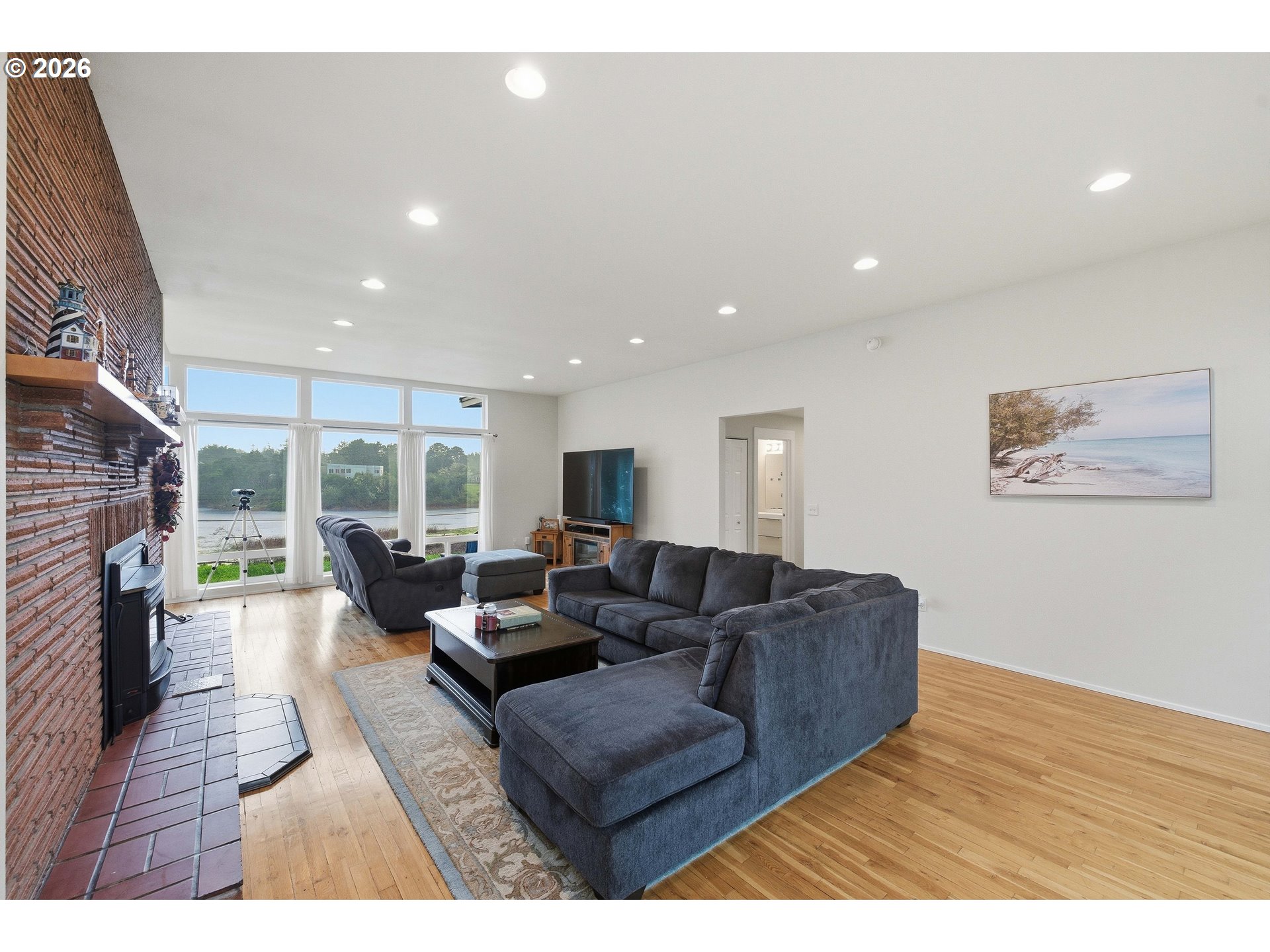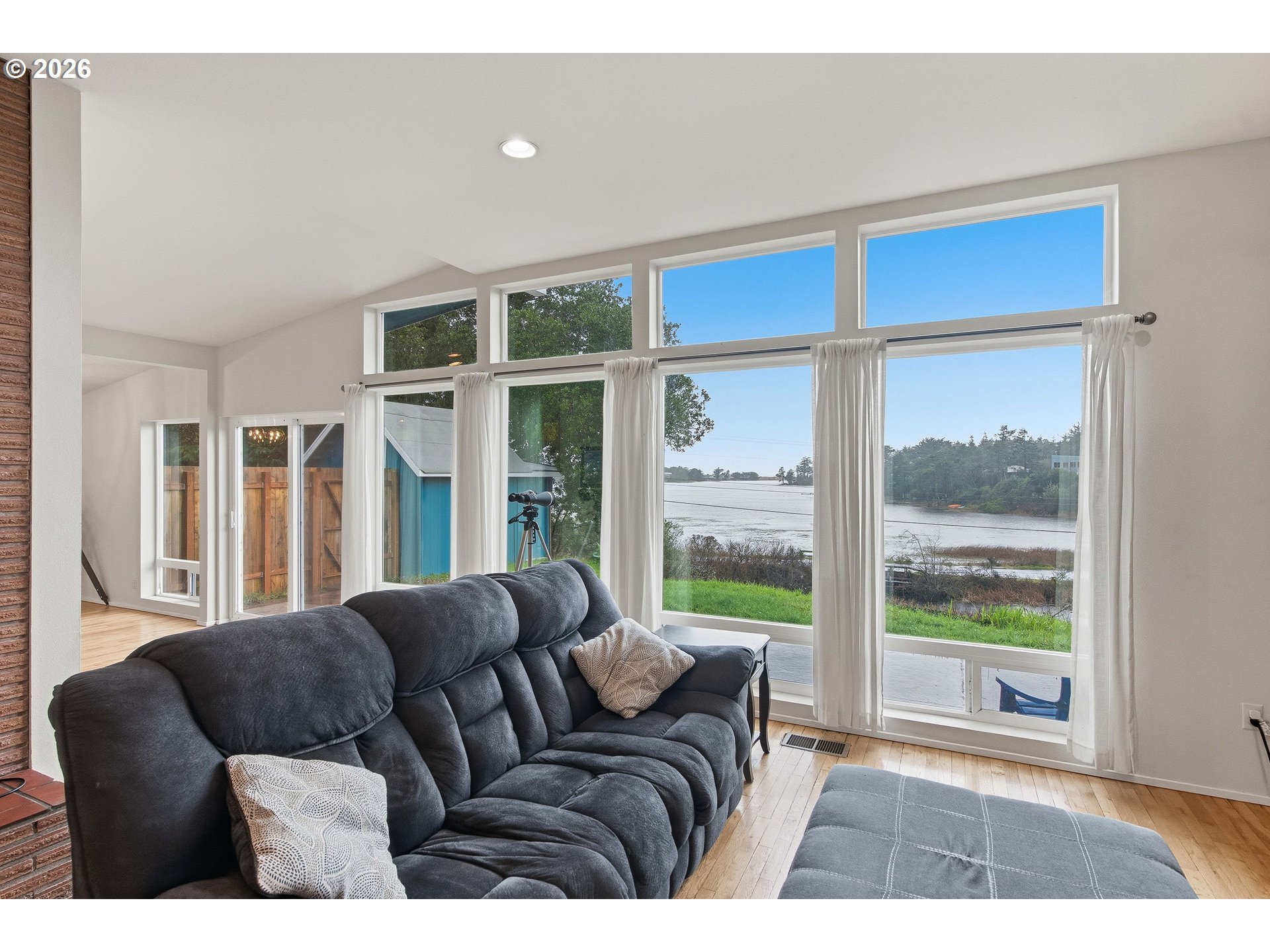 Port Orford, Oregon | Garrison Lake + Pacific Ocean views. Perched on a bluff above Garrison Lake with a deep sightline out toward the Pacific Ocean, this remodeled, single-level home is all about the view—especially at sunset. A wall of west-facing windows frames the water from the main living area, while additional windows on the opposite side keep the home naturally bright throughout the day. The living space features high ceilings, hardwood floors, and a striking masonry fireplace with a new Blaze King wood-stove insert for cozy coastal evenings. The modern kitchen offers updated cabinetry and a functional layout, and the views carry through to the primary bedroom and bath. Outside, enjoy a patio/deck overlooking the lake, plus Port Orford cedar privacy fencing front and back. Recent improvements include exterior paint, updated lighting, a newer Samsung oven, and Samsung washer. Previously operated as a vacation rental (buyer to verify intended use). Minutes to Battle Rock Park, the Port of Port Orford (marina/docks), Port Orford Heads State Park, Cape Blanco State Park & Lighthouse, and Humbug Mountain State Park—plus beaches, trails, dining, and medical clinics nearby.