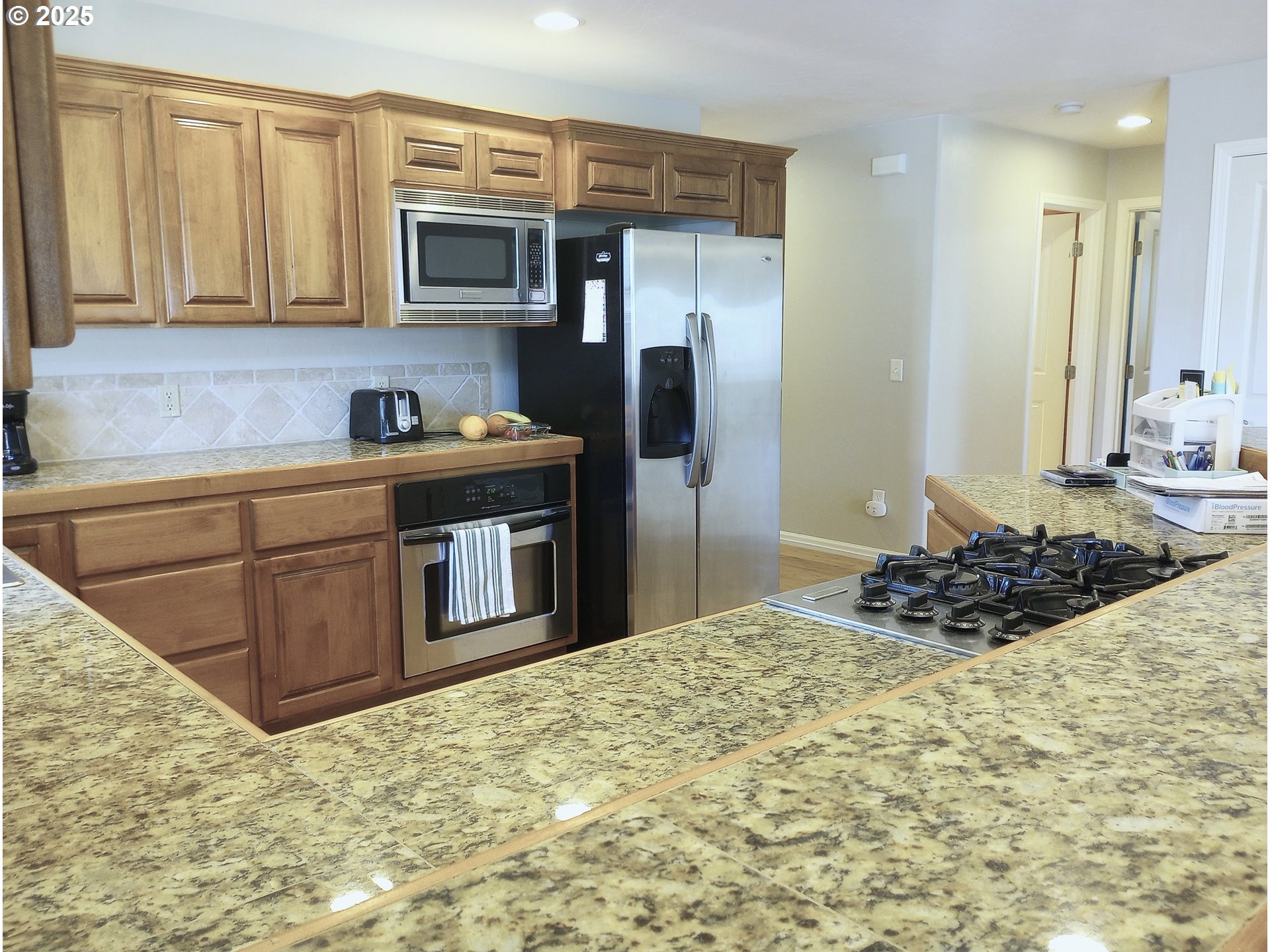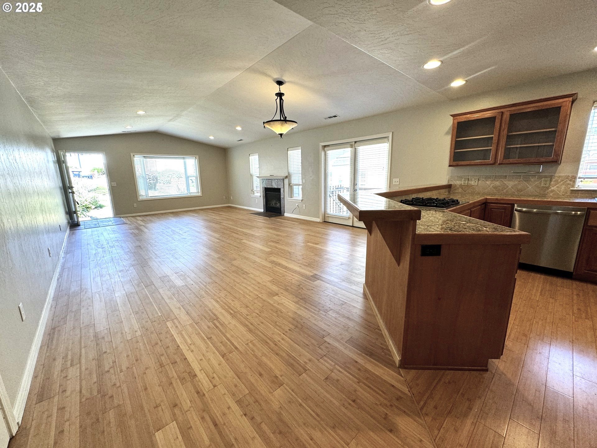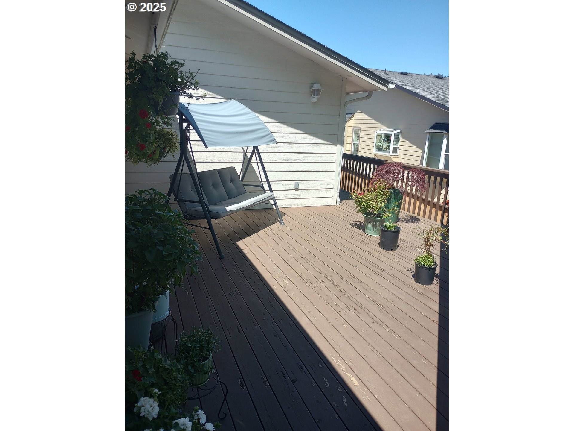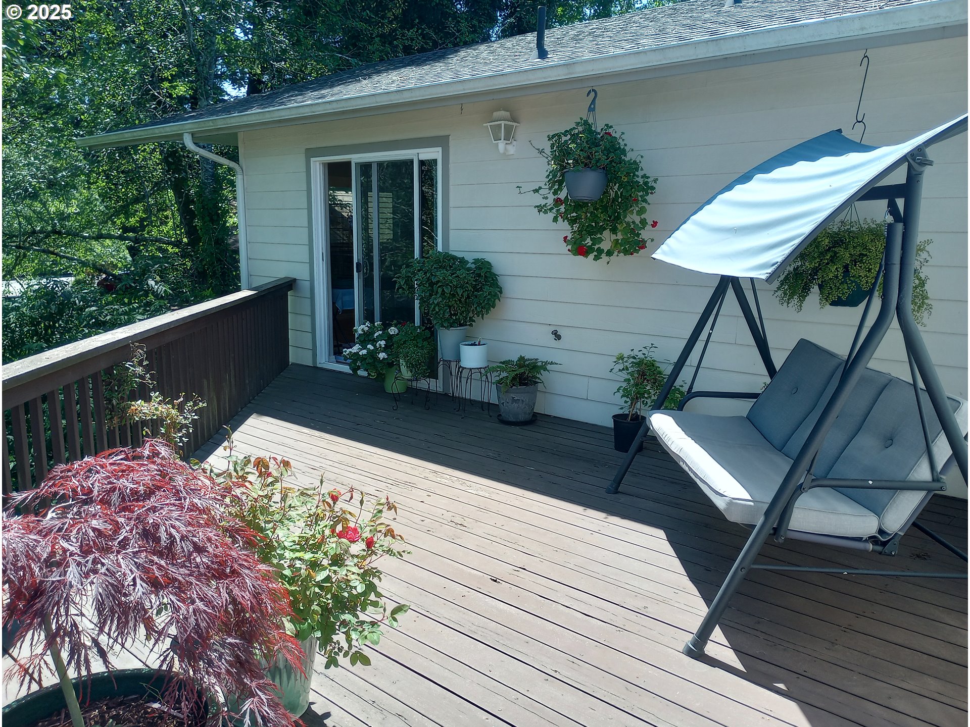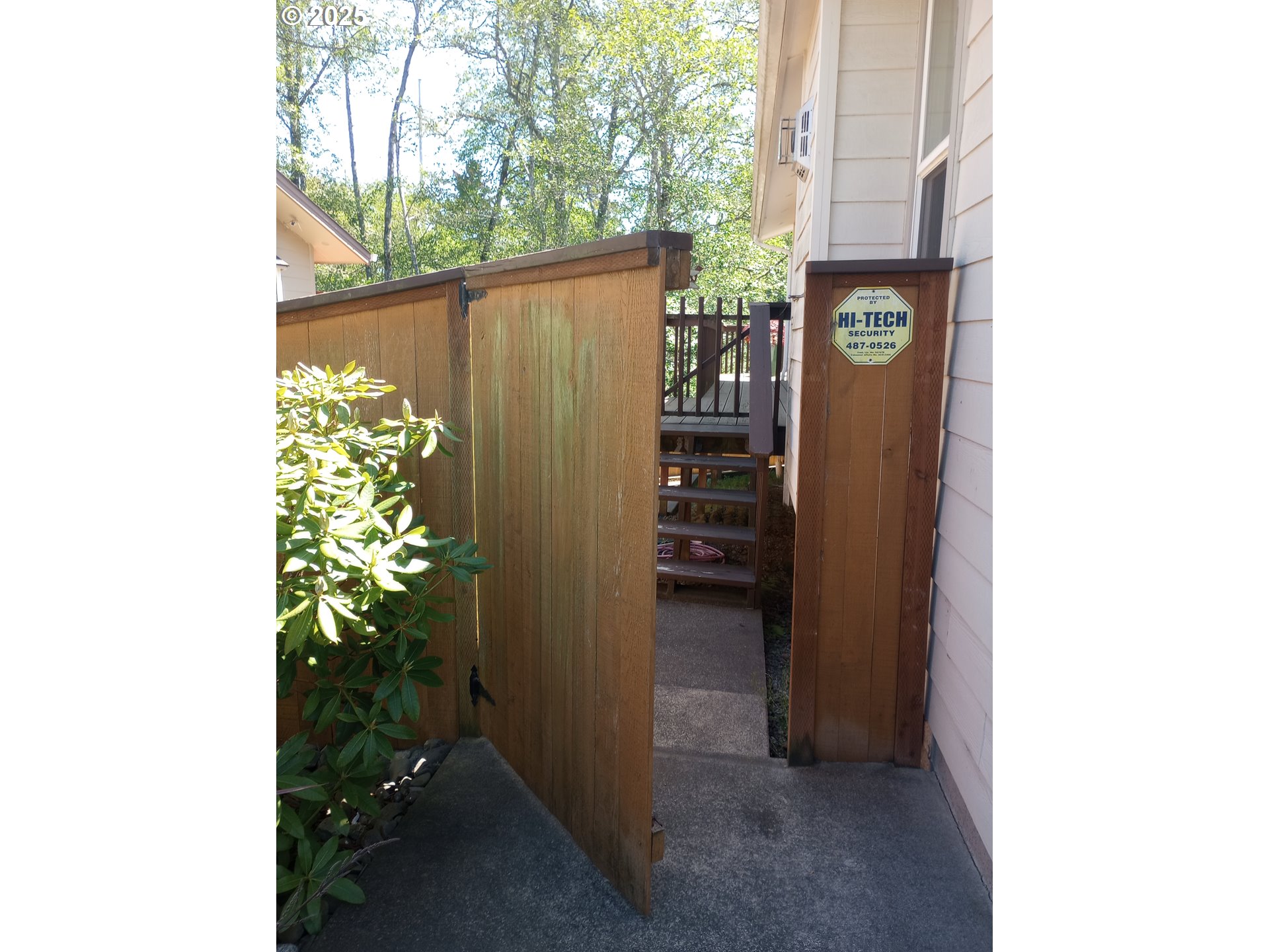 Charming 3-Bed, 2-Bath Modern Home on Quiet Cul-de-Sac backing Mill Creek. Welcome to this beautiful 3-bedroom, 2-bath home that blends modern design with comfort and charm. Nestled on a quiet cul-de-sac, this property offers a peaceful setting with minimal traffic. Featuring a new roof (installed July 2024) with premium Malarkey shingles and a 40-year warranty, this home is built for long-term peace of mind. Step inside to an inviting open-concept living space with vaulted ceilings, abundant natural light, and a warm propane fireplace. Stunning blonde bamboo flooring flows throughout, creating a cohesive and stylish feel. The modern kitchen boasts floor-to-ceiling cabinetry, granite countertops, stainless steel appliances, and a propane cooktop—ideal for the home chef. The guest bathroom includes a double vanity and shower, while the laundry room features a newer washer and dryer. Bedrooms 1 and 2 are light-filled, with double-paned vinyl windows and custom shutters/blinds. The spacious primary suite offers natural lighting with two large sliding glass doors that open onto a private wraparound deck, extending to the living room for seamless indoor-outdoor living. The primary bathroom includes a soaking tub, separate shower, private toilet room, and double vanity, all leading into a generous walk-in closet. A 2-car garage provides ample storage and convenience, while the fully gated deck steps down to a fenced backyard that backs up to Mill Creek, offering privacy and private barrier with neighbors. This home is the perfect blend of tranquil surroundings.