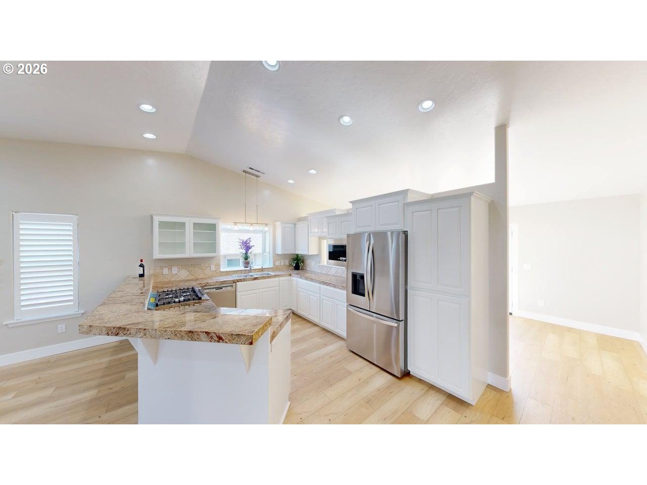 This is the kind of home buyers hope for and rarely find. Single level, three bedrooms, two baths, and thoughtfully refreshed. Fresh paint inside and out gives the home a clean, modern feel from the curb to the interior. A brand-new 30-year roof installed in January 2026 is a major upgrade before you even move in.Inside, vaulted ceilings keep the space open and bright. New luxury vinyl flooring runs throughout, practical, durable, and good-looking. The kitchen delivers real appeal with tiled granite countertops, stainless steel appliances, a brand new refrigerator and cooktop, and a charming pass-through window into the formal dining room that adds personality and flow. A sliding door opens directly to the back deck, making everyday living easy. Plantation blinds finish the space with a polished touch.Both the front and back decks extend the living area, perfect for morning coffee or evening downtime. The landscaping is established and beautifully maintained, and the home sits quietly in a cul-de-sac where traffic stays low. The garage features a fresh epoxy floor finish because the details count.Close to schools, near downtown, and just minutes from local beaches, this location checks the boxes. Move-in ready, well cared for, and priced to sell.Ask to see the 3D tour.
