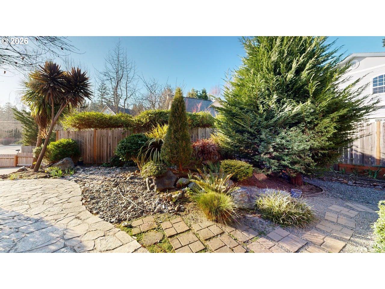 Beautifully designed and immaculately maintained spacious 3287 sq ft custom home in an exceptional neighborhood, approximately five minutes from Harris Beach. Soaring ceilings and true craftsman quality set the tone from the moment you walk in. Acacia hardwood floors, Red Oak hardwood floors, Brazilian slate floors in the living room, and rich mahogany exterior doors, beautiful etched glass front door features a lighthouse, the design ads a coastal touch. The spacious kitchen features custom hickory cabinetry, stainless steel appliances, Corian Countertops, a pantry and room to gather with ease. The main level offers a generous private primary suite with en suite bath with a huge walk in closet. Upstairs you will find two additional bedrooms, two spacious loft areas, and a full bath, offering flexibility for guests or hobbies. Step outside to a private, tranquil yard with professional landscaping, a peaceful water feature, and a Trex deck designed for effortless outdoor living. 50 year roof. The laundry room features custom cabinetry, a sink, built ins and a washer and dryer. This is the kind of home and location that rarely come available. Beautiful home. Beautiful area. There is also a beautiful family room/office/den combo. Ask to see the 3D tour!