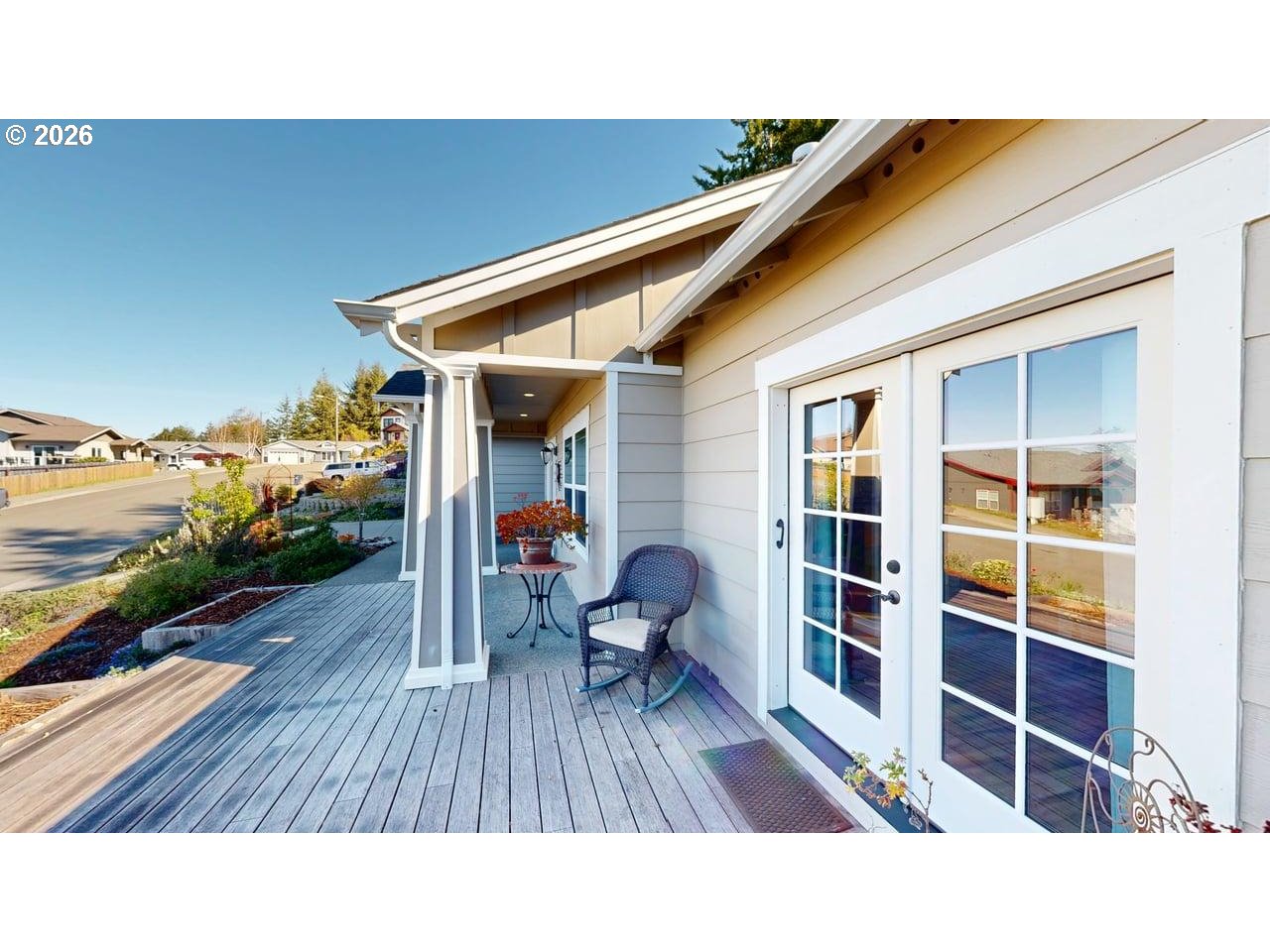 Built in 2015 with custom craftsmanship, this home offers 1,906 square feet of well-designed single-level living. On a spacious .23 acre lot. With a low-maintenance yard and an unbeatable location, this property delivers both comfort and convenience.Step inside to an open-concept layout featuring vaulted ceilings, a cozy fireplace, and quality flooring that flows seamlessly throughout the main living space. The kitchen is dialed in with granite countertops, stainless steel appliances, and rich custom wood cabinetry that gives it that elevated, timeless feel. Just off the dining area, you’ll find a covered patio, creating an easy indoor-outdoor flow for everyday living and entertaining.The split floor plan offers privacy where it matters. The primary suite is spacious and well-appointed, featuring two generous walk-in closets and a spa-style bathroom complete with a soaking tub, walk-in shower, a vanity, and dual sinks. On the opposite side of the home, the guest bedrooms offer flexibility and comfort. One room is currently used as a family room, featuring French doors and upgraded with cabinetry and a sink in place of the closet. This space can easily be converted back to a traditional bedroom if preferred. Another bedroom features sliding doors that open to a private deck surrounded by beautiful landscaping, creating a peaceful outdoor retreat.Out back, you’ll find a private setting with easy-care landscaping and a covered patio, perfect for relaxing or entertaining year-round. There is also a versatile shed that the seller has previously used as an additional bedroom, ideal for hobbies, a studio, or extra storage.Located just minutes from Harris Beach State Park, downtown Brookings, shopping, and local dining, this home puts you right where you want to be. NO HOA!Ask to see the 3D tour and experience the layout for yourself.
