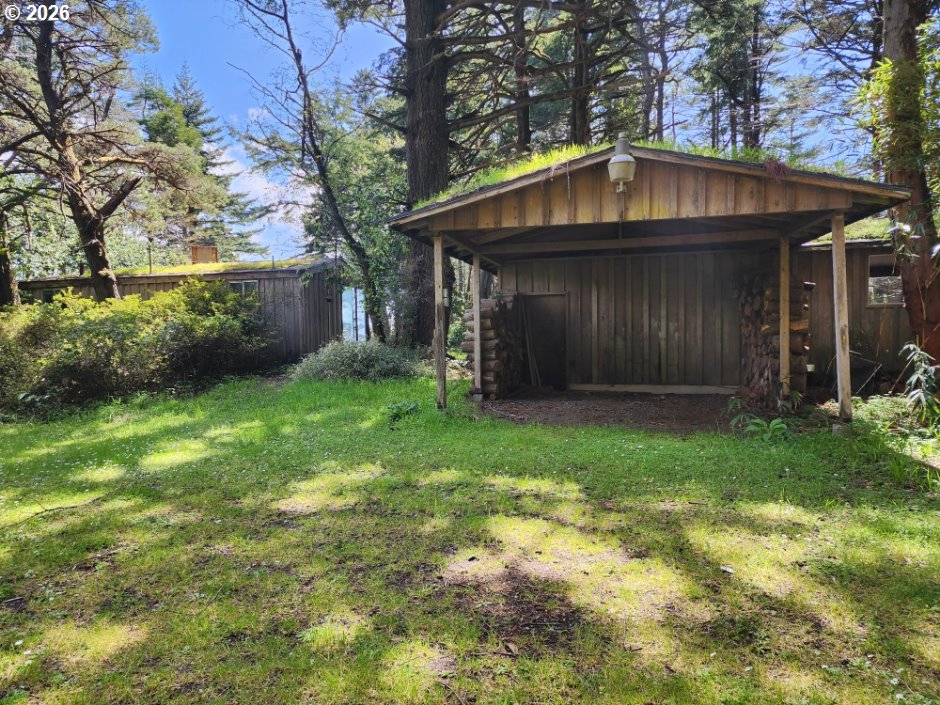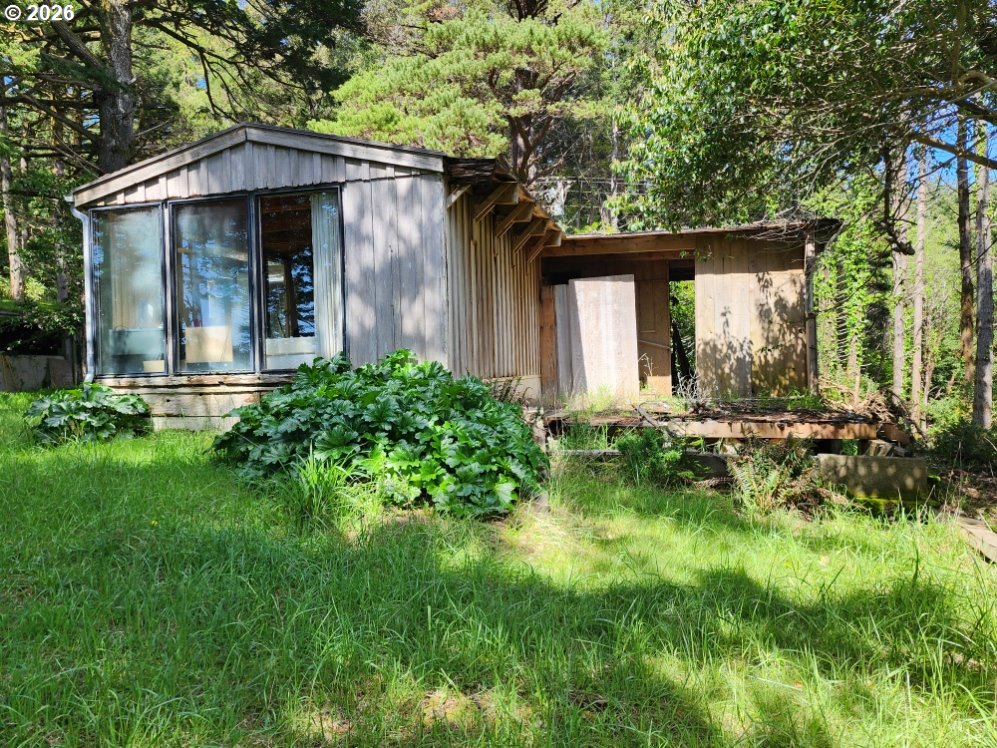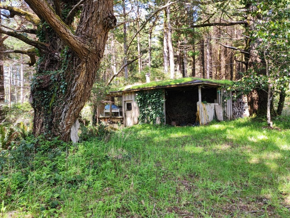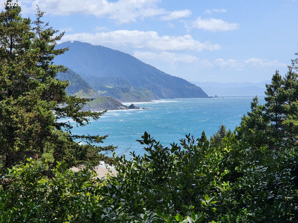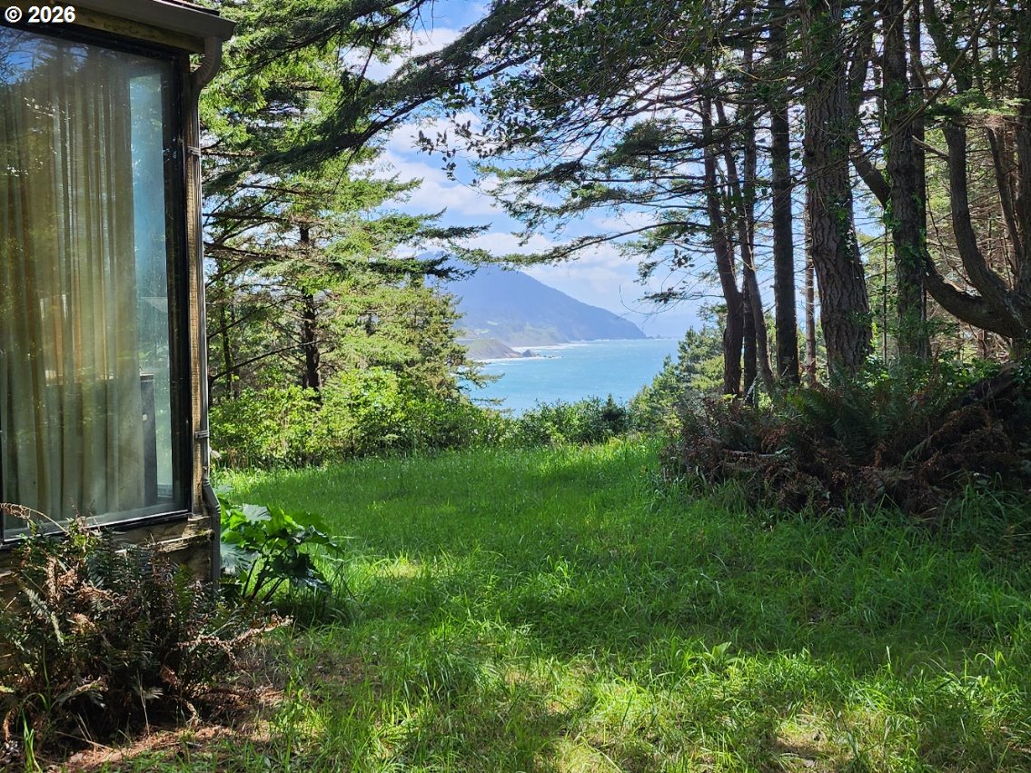 Nestled on 3.12 private acres, this unique Coastal property offers stunning Ocean and Beach views along with a picturesque backdrop of Humbug Mountain. The land is a beautiful mix of level and gently sloped terrain, dotted with mature trees that provide exceptional privacy and a peaceful, secluded setting. The property features a Cabin, detached garage and workshop which all require improvements, a great renovation project! A large grassy front yard opens toward the views, creating the perfect space for relaxing or entertaining. Explore your own network of trails winding through the trees—ideal for hiking, ATV riding, or simply enjoying the natural surroundings. Whether you're looking for a quiet retreat, an investment opportunity, or a place to build your dream Coastal getaway, this property offers incredible potential in a truly scenic location.