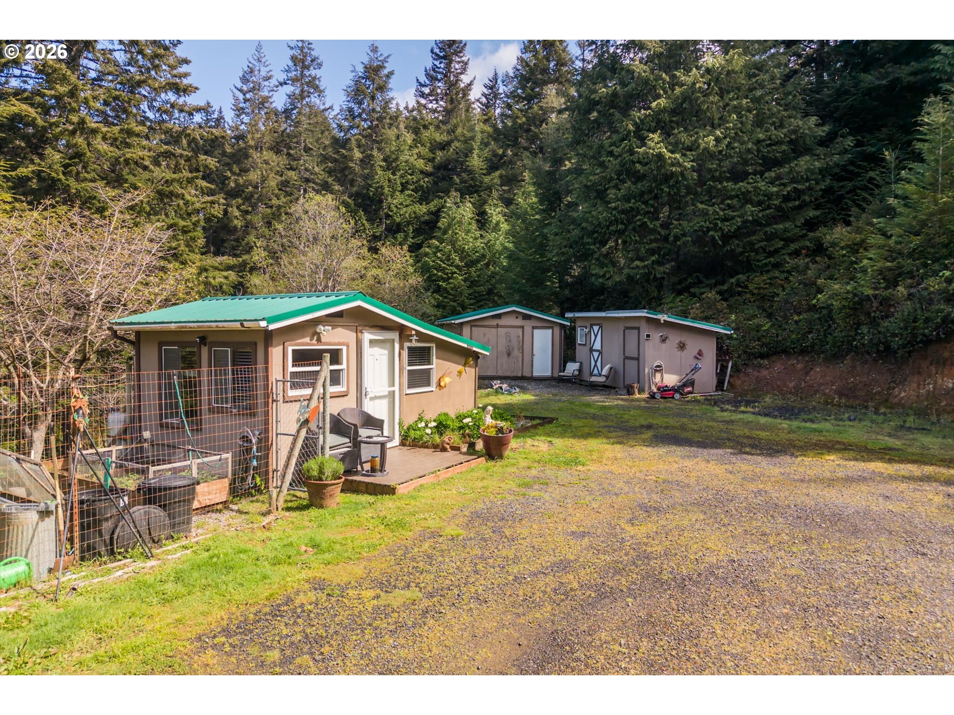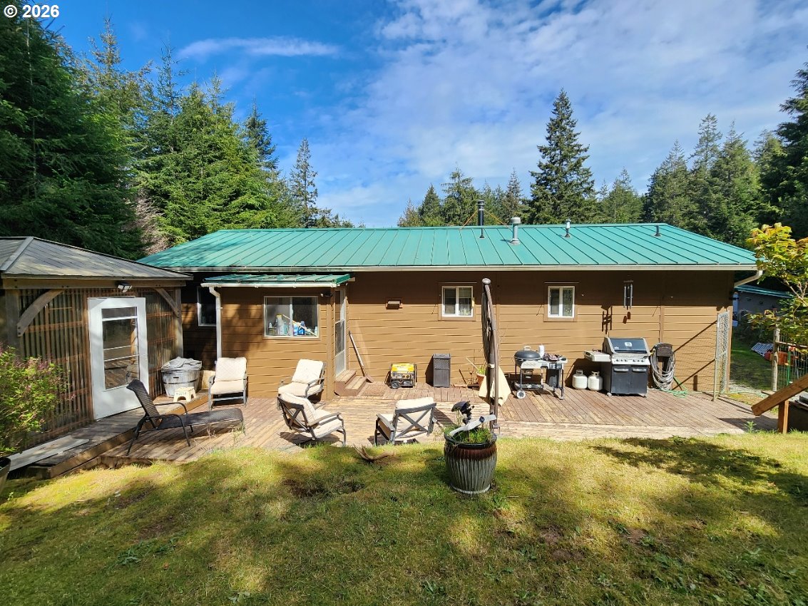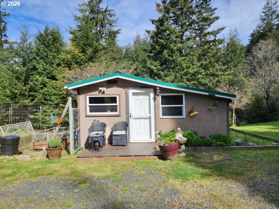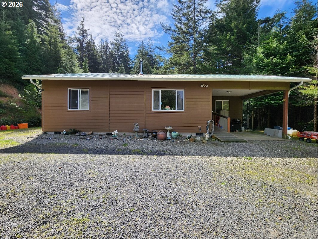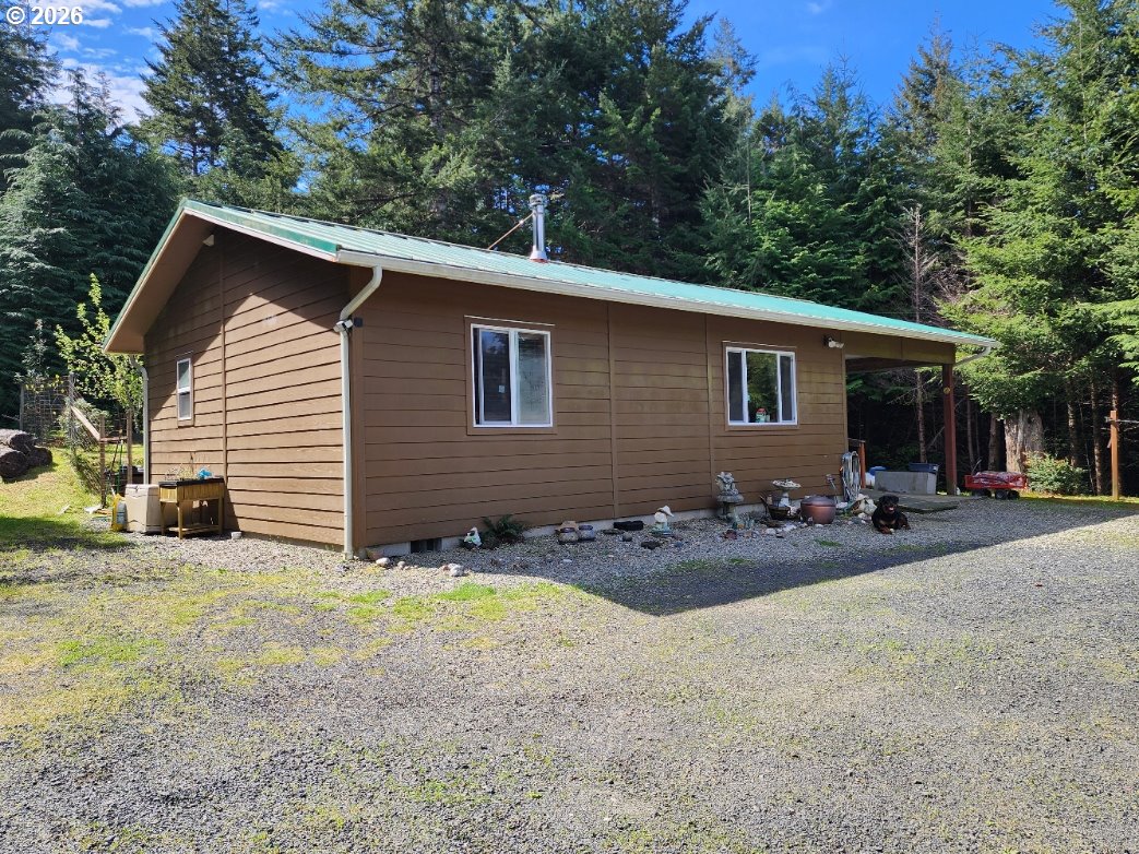 (503) 893-8874Perched at the top of a Scenic hill and surrounded by Serene forest with prime timber, this custom-built Coastal retreat offers unmatched privacy and tranquility on over 11 acres. Two tax lots with ability to build additional home. A gated driveway leads you to this peaceful sanctuary, where nature and comfort blend seamlessly. The home features granite countertops, a gas range, and a certified wood stove, creating a warm and inviting living space with ample closet storage throughout. Step outside to enjoy the expansive back patio—perfect for relaxing or entertaining in a quiet, natural setting. The property is thoughtfully equipped with a variety of functional and lifestyle amenities, including a private Studio, Workshop, Storage shed, and Wood shed. A charming enclosed Gazebo with a Hot Tub offers a perfect place to unwind, while the fenced garden with raised beds is ideal for those who enjoy growing their own food. Located just a short distance from Hubbards Creek, you’ll have easy access to surfing and beach adventures, making this an ideal Coastal getaway or full-time residence for those seeking privacy, space, and connection to the outdoors.