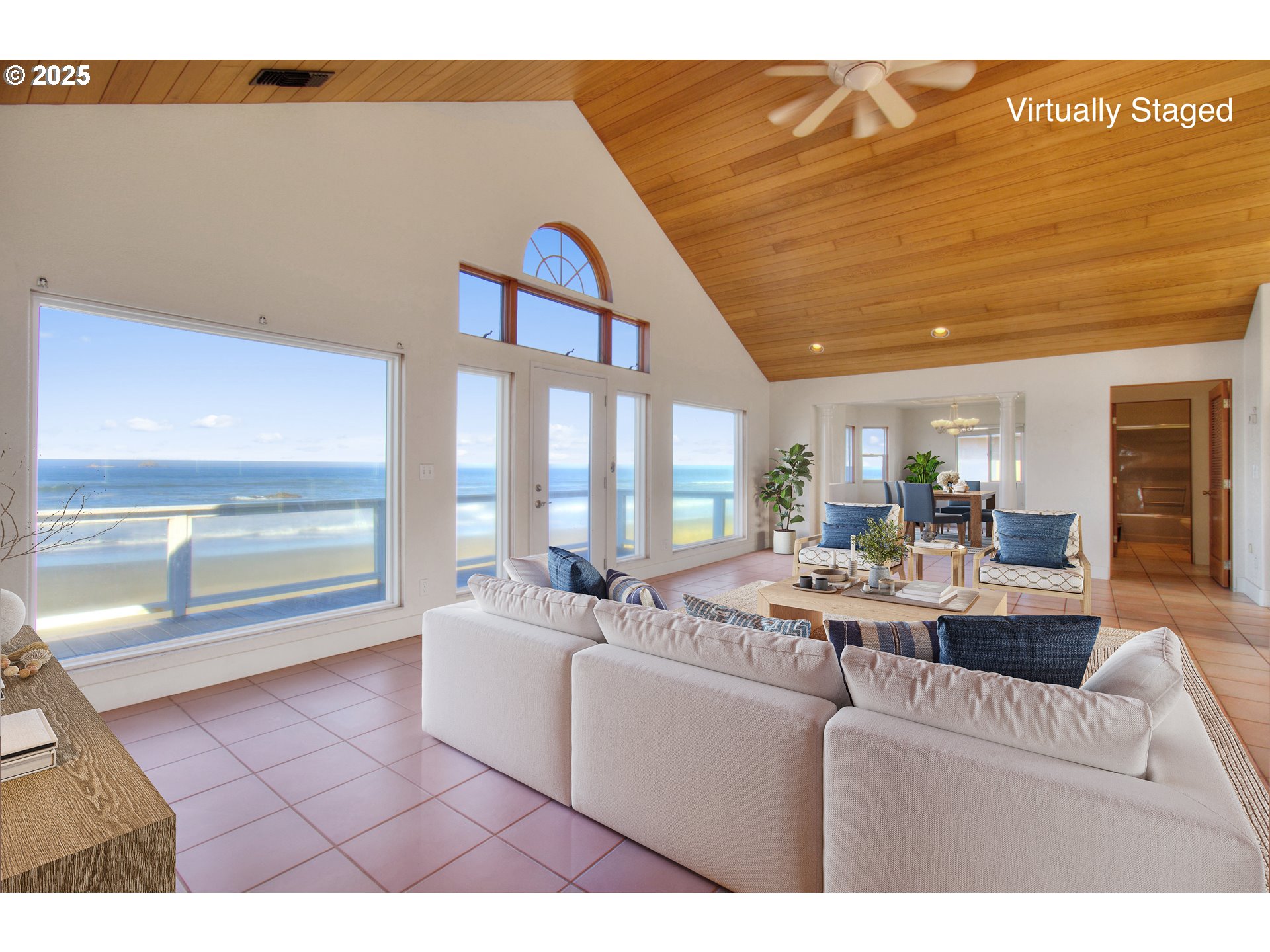 Price Reduced! About as close to the ocean as you can get! This stunning oceanfront home offers panoramic, unobstructed views and miles of pristine walking beach right outside your door. From the living room, it feels as though you’re floating on the water, with endless views in every direction. Enjoy the easiest beach access imaginable, perfect for morning strolls or sunset whale watching.Featuring many recent upgrades including mostly new windows and a newer roof, this home is designed for effortless coastal living. The upper level offers a primary suite, great room with vaulted ceilings, large kitchen with an island, and a dining room, all with fantastic ocean views. The lower level offers two comfortable bedrooms, a full bath, and a cozy family room — ideal for guests or relaxing evenings and a tuck under garage for storage. Entertain on the expansive oceanfront deck while taking in the salt air and sweeping vistas. With room for parking and a layout made for laid-back living, this is your chance to own a front-row seat to the Pacific.