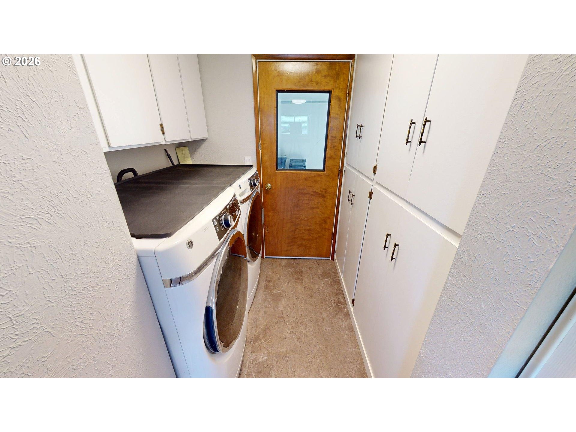 This thoughtfully updated home offers a truly move-in-ready experience in a desirable neighborhood, with nothing left to do but settle in. Dual vinyl windows and a recently serviced heat pump provide comfort and efficiency year-round. Cozy wall-to-wall carpeting adds warmth to the living spaces, with durable vinyl flooring in the kitchen, bathroom, and laundry room.The kitchen is both stylish and functional, featuring granite countertops, a center island, crisp white cabinetry, and a full appliance package—including dishwasher, stove, and refrigerator—already in place. Two well-placed bedrooms offer easy access to outdoor spaces, with one opening to a private deck and the other to the backyard. Bathroom has a walk-in shower for convenience.A dedicated laundry room includes excellent storage, and the washer and dryer are included for added convenience. Blinds are installed throughout the home, and the fenced yard is easy to manage. The deep garage offers plenty of room for parking and storage, includes an automatic opener, and provides direct access to the backyard.A well-cared-for home designed for simple, comfortable living—ideal for those seeking a low-maintenance property that’s ready from day one. Peek ocean views from the kitchen and living room.