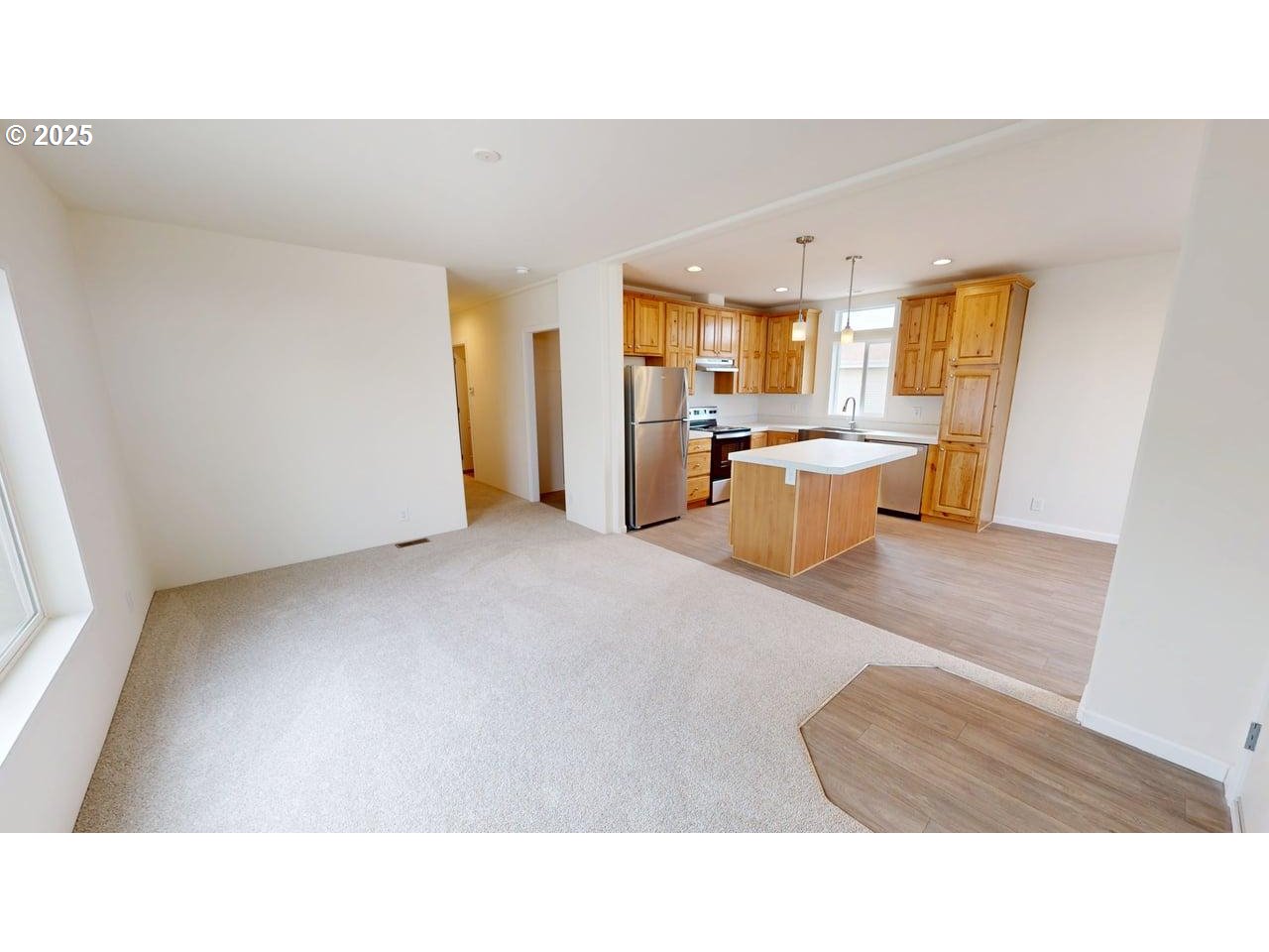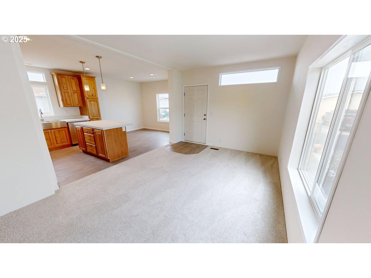 Welcome to your brand new home in a welcoming all-ages community! This beautifully crafted Fleetwood by Palm Harbor Villages manufactured home offers stylish, low-maintenance coastal living with thoughtful design and modern amenities throughout. Step inside to high ceilings and an open-concept layout that creates an inviting sense of space. The heart of the home features a well-appointed kitchen with stainless steel appliances, pantry, a large island with an eat bar and a farmhouse sink perfect for everyday living or entertaining guests. Just off the kitchen, the dining area offers a peek of the ocean to enjoy with your morning coffee or evening meals. The owner’s suite is generously sized and includes a private bath with a walk-in shower. A good-sized laundry room adds convenience, with direct access to the exterior parking area—ready for a future carport or potential single-car garage. With a monthly space rent of only $490 (including water, sewer, and trash), this home offers exceptional value in a modern, move-in-ready package.