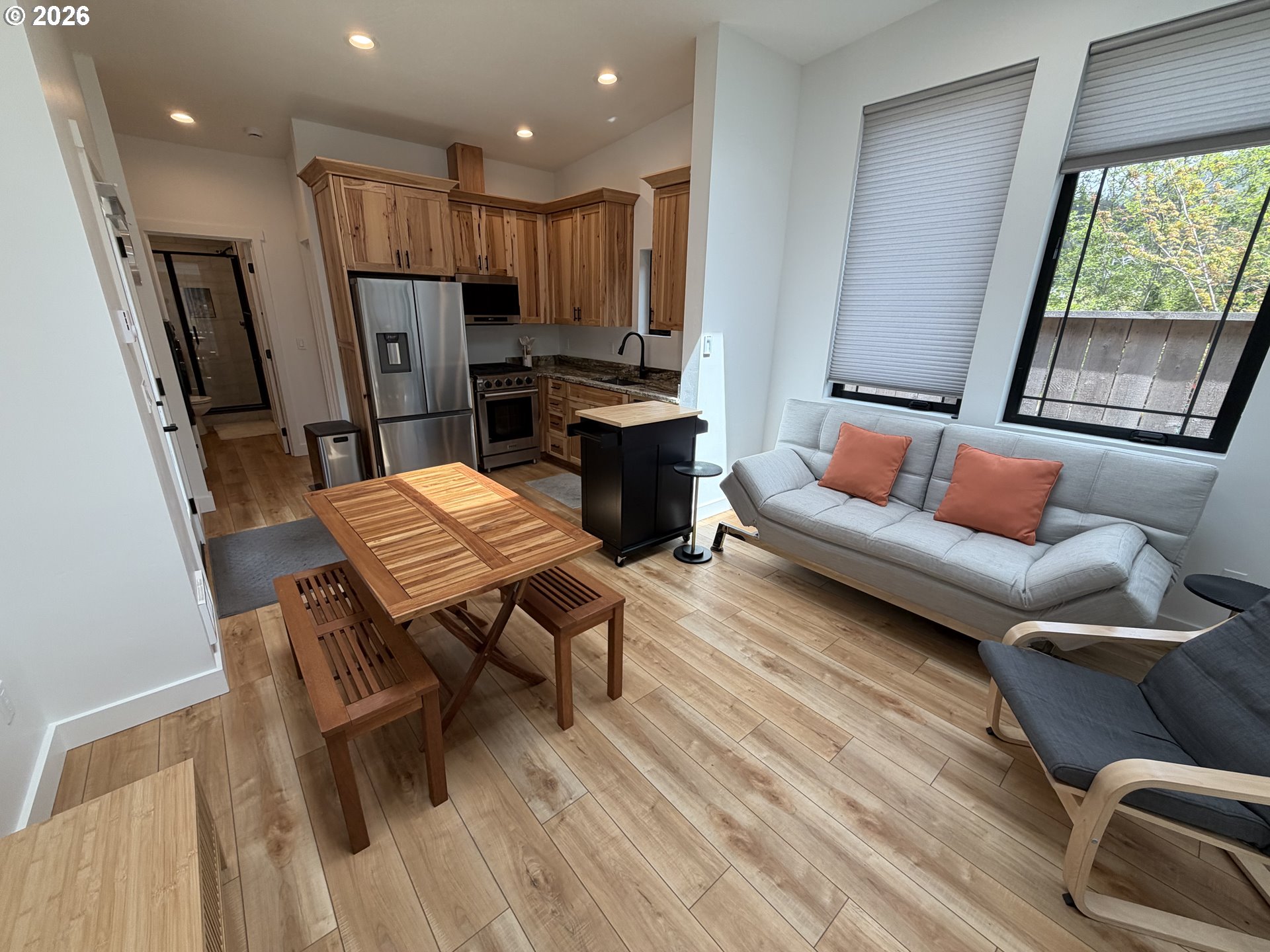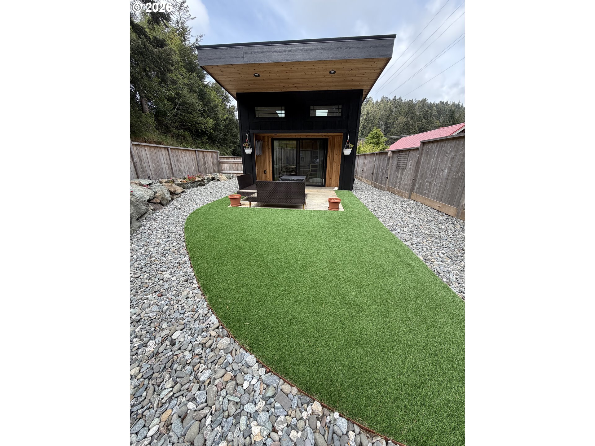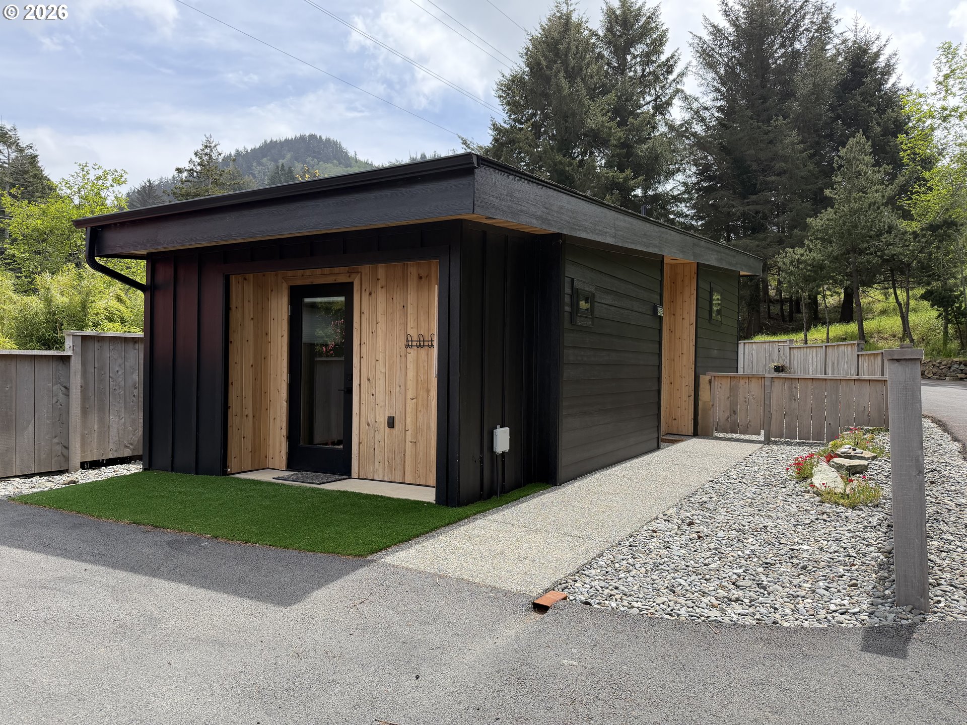 Experience elevated coastal living in this newly constructed custom residence in the heart of Gold Beach. Built in 2024, this impeccably designed 1 bedroom/1bath home offers 455 square feet of sophisticated style, where every detail has been thoughtfully curated for comfort and quality. From the moment you enter, you’re welcomed by soaring ceilings and a light-filled interior that enhances the home’s open, airy ambiance. The kitchen showcases premium finishes, including sleek granite countertops, high-end appliances, and beautifully crafted custom cabinetry that blends elegance with everyday functionality. Designed for effortless living, this single-level home is located within an exclusive gated community, offering both privacy and peace of mind. Step outside to your own private retreat with a fully enclosed yard featuring locally milled Port Orford cedar fencing, creating a warm and inviting outdoor space. Ideally situated just minutes from the beach, this residence offers a rare combination of modern craftsmanship and coastal charm in one of Gold Beach’s most desirable settings.