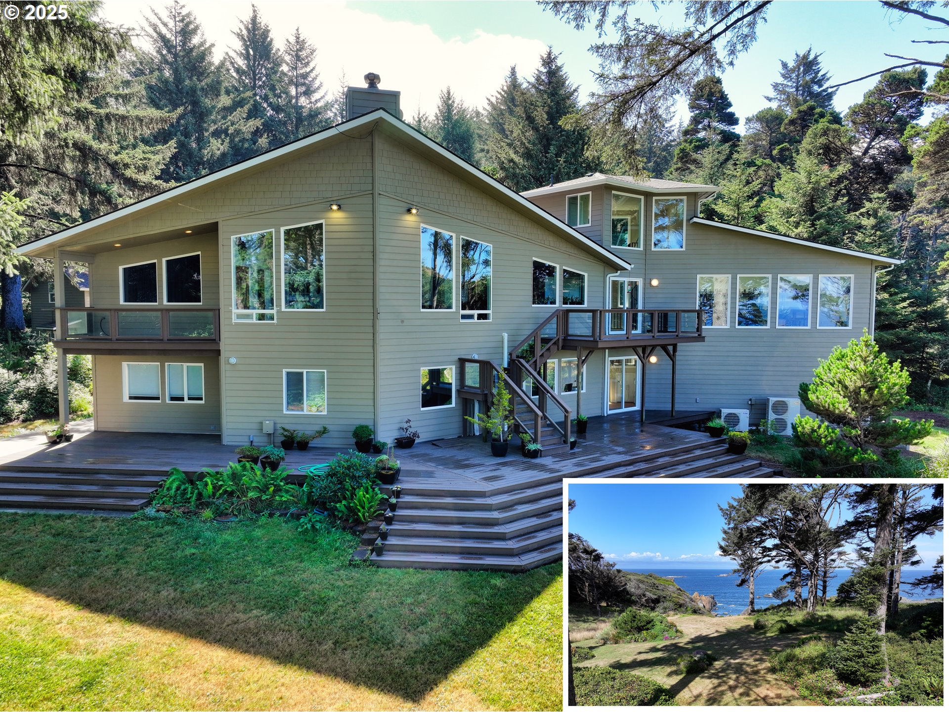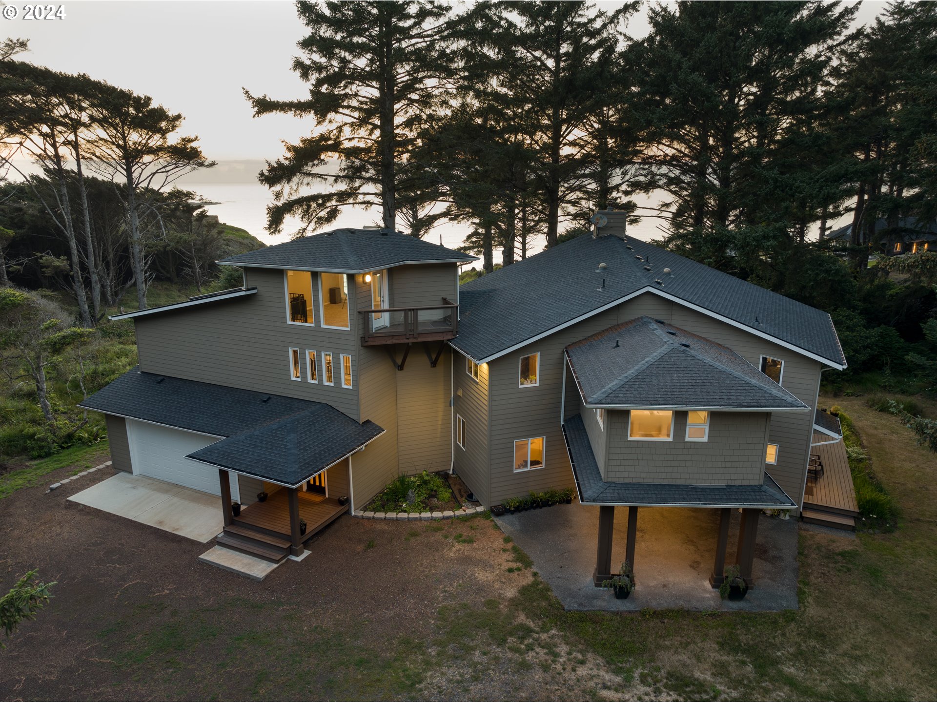 (503) 893-8874Your Dream Oceanfront Home Awaits!Discover the pinnacle of coastal luxury with this breathtaking, modern oceanfront home! Located on a stunning 7.64-acre property, this one-of-a-kind residence offers unparalleled views, privacy, and convenience, creating the perfect sanctuary for oceanfront living.Key Features You’ll Love: Spacious & Modern Design: The home combined with guest quarters spans an impressive 4,651 sq. ft. totaling 5 bedrooms, 3 1/2 baths, vaulted ceilings, skylights, and expansive windows that fill the home with natural light and showcase the panoramic ocean views.Remodeled Kitchen: A chef’s dream! Enjoy granite countertops, stainless steel appliances, and custom cabinetry, fully remodeled in 2019.State-of-the-Art Upgrades: Stay comfortable year-round with a 2023 heat pump system, supplemental baseboard heating, and a new roof installed in 2024. Milgard Tuscany double-pane windows and a mix of hardwood, tile, and carpet flooring add style and energy efficiency.Unmatched Views: Soak in sweeping ocean views from expansive decks on every level and enjoy the 266 sq. ft. 3rd-floor viewing room, perfect for whale watching, sunsets, or stargazing.Convenience & Connectivity: Work from home seamlessly with high-speed 2-gigabit fiber optic internet. Plus, a state-of-the-art elevator makes every level accessible.Detached Guest House: An additional 935 sq. ft. guest home offers 1 bedroom, 1 bath, a remodeled kitchen (2018), and dining space, making it ideal for guests or extended family.Ample Parking & Storage: A lower-level garage accommodates two cars, with an extra bay for a tractor or riding mower.Prime Location:This property offers the perfect balance of seclusion and accessibility—nestled in tranquil surroundings yet just a short drive to in-town amenities and a major hospital.Too many incredible features to list—this is truly a must-see property for those dreaming of a luxurious oceanfront lifestyle.