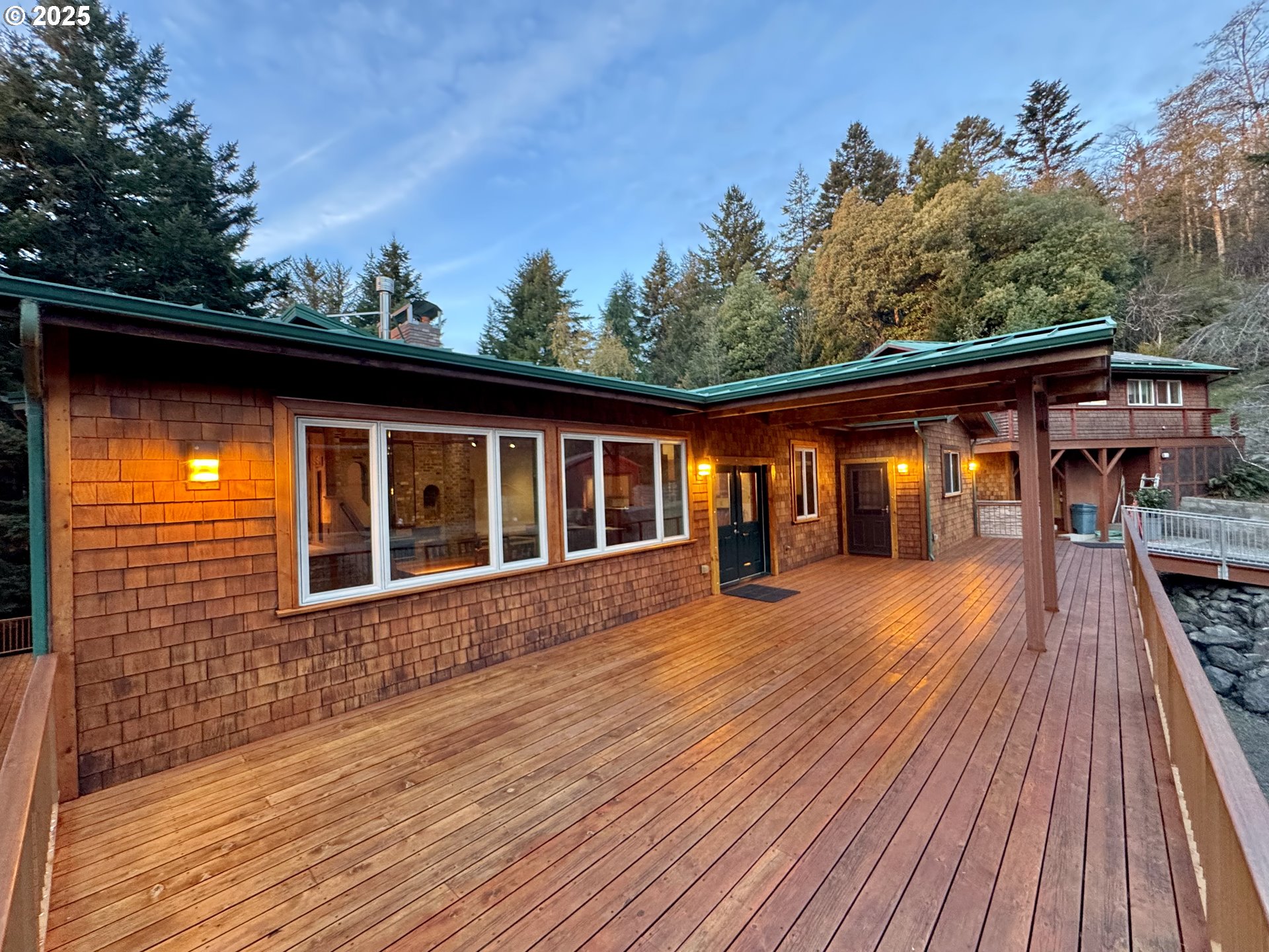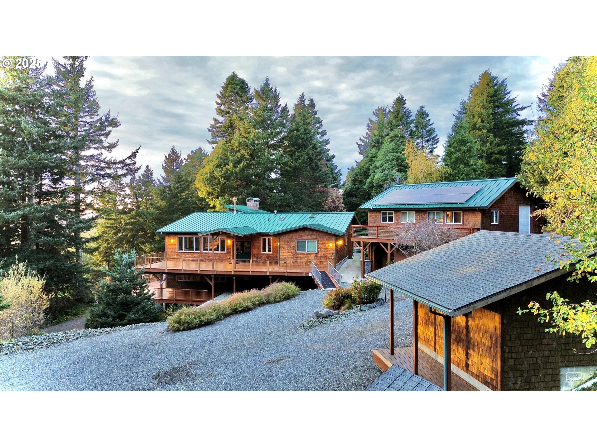 (503) 893-8874Exceptional Custom Home on the coast with stunning Ocean and Hunter’s Island views. Designed for sustainable living, this property supports both on-grid power and a full off-grid alternative energy system. The home includes two independent power circuits, traditional electric, and a solar/battery/diesel generator system, plus cable internet, modem, and satellite capabilities.Enjoy ocean views and sunsets from quality bi-level decks, with the lower level covered for year-round use. This nearly 4,000 sq. ft. home offers 4 bedrooms, 4 baths, skyline ceilings, heated floors, granite countertops, a detached guest house with a full kitchen plus its own 1-car garage, and an extra-large shop with indoor parking for up to 5 vehicles. A 10x12 door leads into an extreme heavy-duty steel-girder shop, plus a fully functioning greenhouse. The property spans 8.3 acres on two tax lots; the second lot has potential for development, subject to buyer due diligence and county approval. The gated entrance ensures privacy.The main home was almost entirely rebuilt between 2006–2013, with approx. 85% of the original structure was removed. It has never been lived in since completion and has been kept heated and meticulously maintained. Features include new appliances, reinforced foundation, new drain field, two-part concrete septic, heavy-gauge rolled-on-site standing seam metal roof, Diamond-Finish Red Oak floors, extensive concrete work, and skilled craftsmanship throughout.Self-sustainable elements include a sweet-water well plus a second irrigation well, four holding tanks, propane heat, fireplaces, wood stove, diesel generator with exhaust piping, solar power, fireproof rooms, and an indoor fire protection sprinkler system. Mature fruit trees include Meyer lemon, plums, apples, and a producing Bosc pear tree. Located at the end of a quiet road amid old-growth Douglas firs, this retreat is peaceful yet close to Gold Beach and 22 miles from Brookings.View by appointment only.